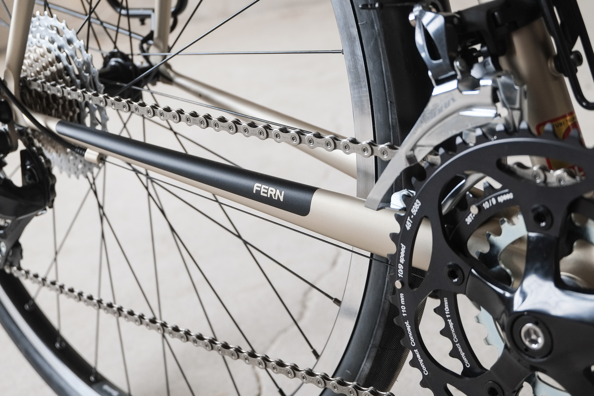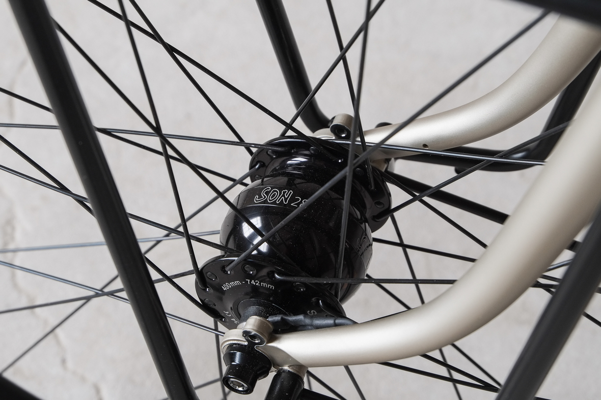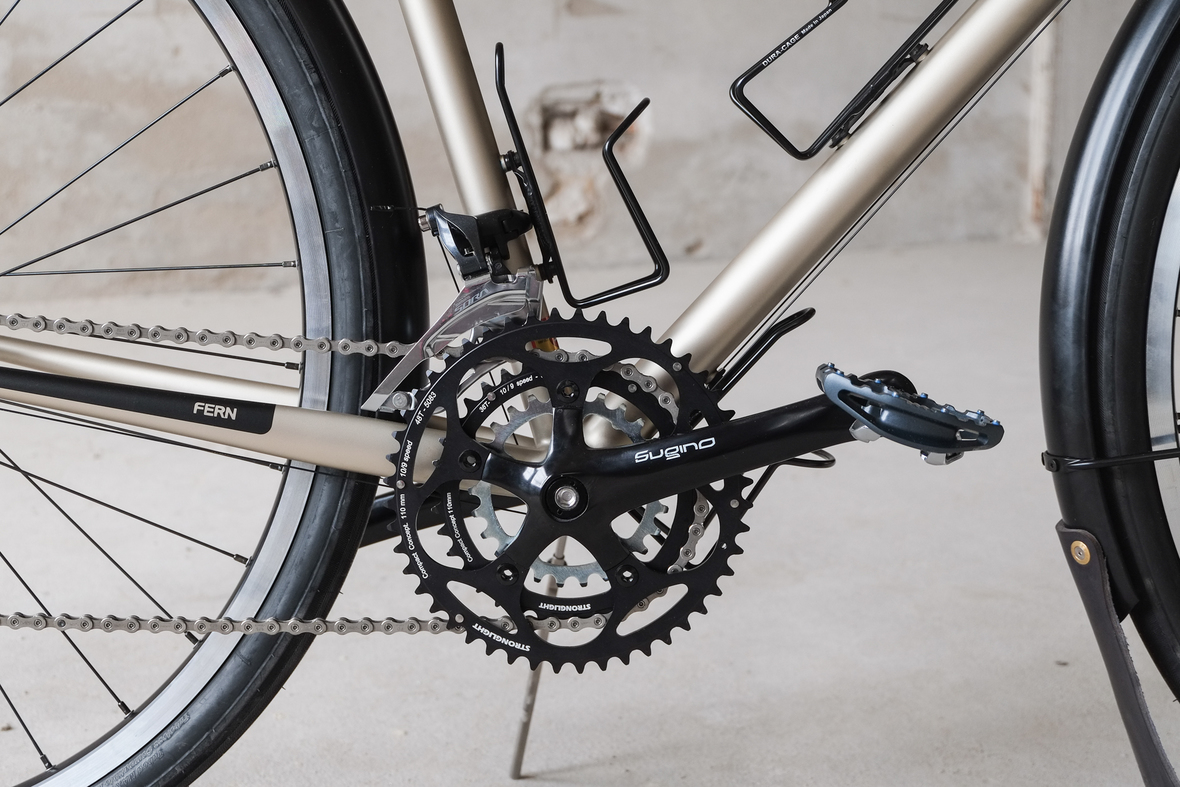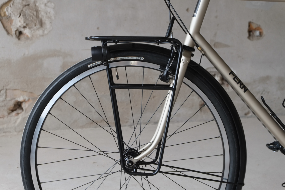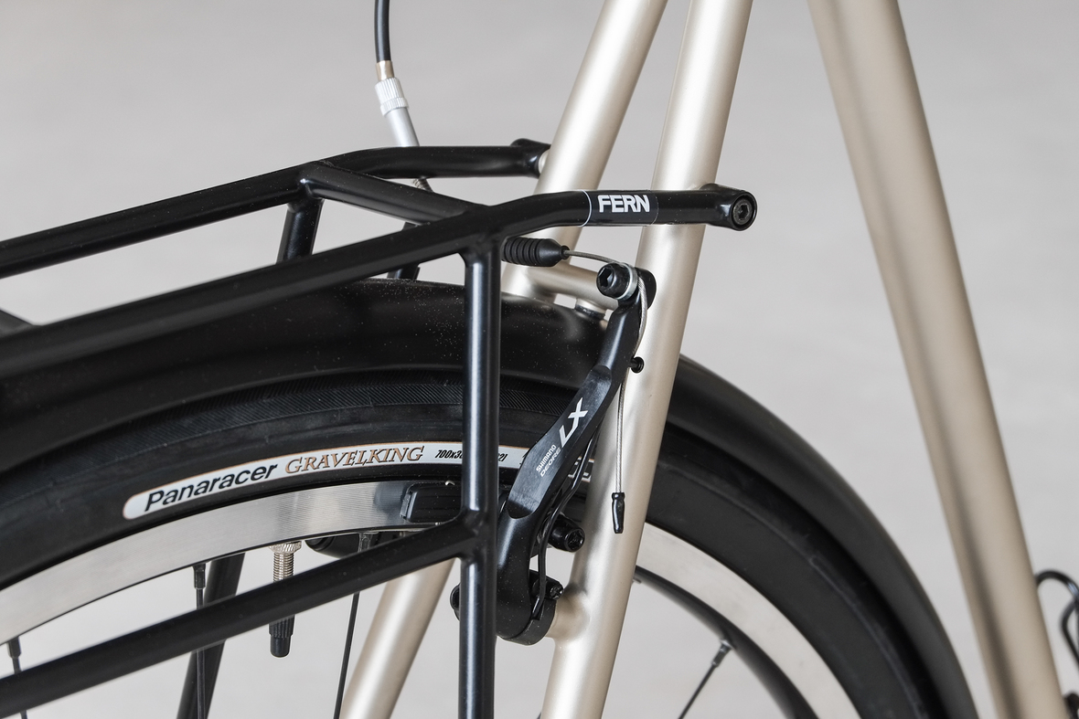 For my man Romain we did this two wheeled champagne coloured dream, a classic Chacha in 28 / 700c wheels size. Featering everything you need for some serious travelling on a bike, like our signature Chacha front- and rear racks. Carefree and simple parts and components which will be fail free and even if they eventually do, will be easy to repair or replace even in the wildest and most lonesome parts of the world.