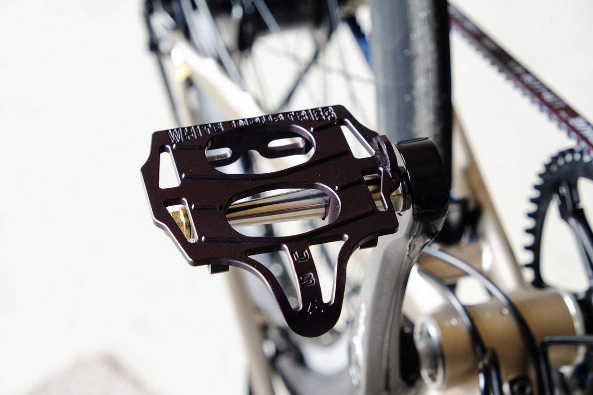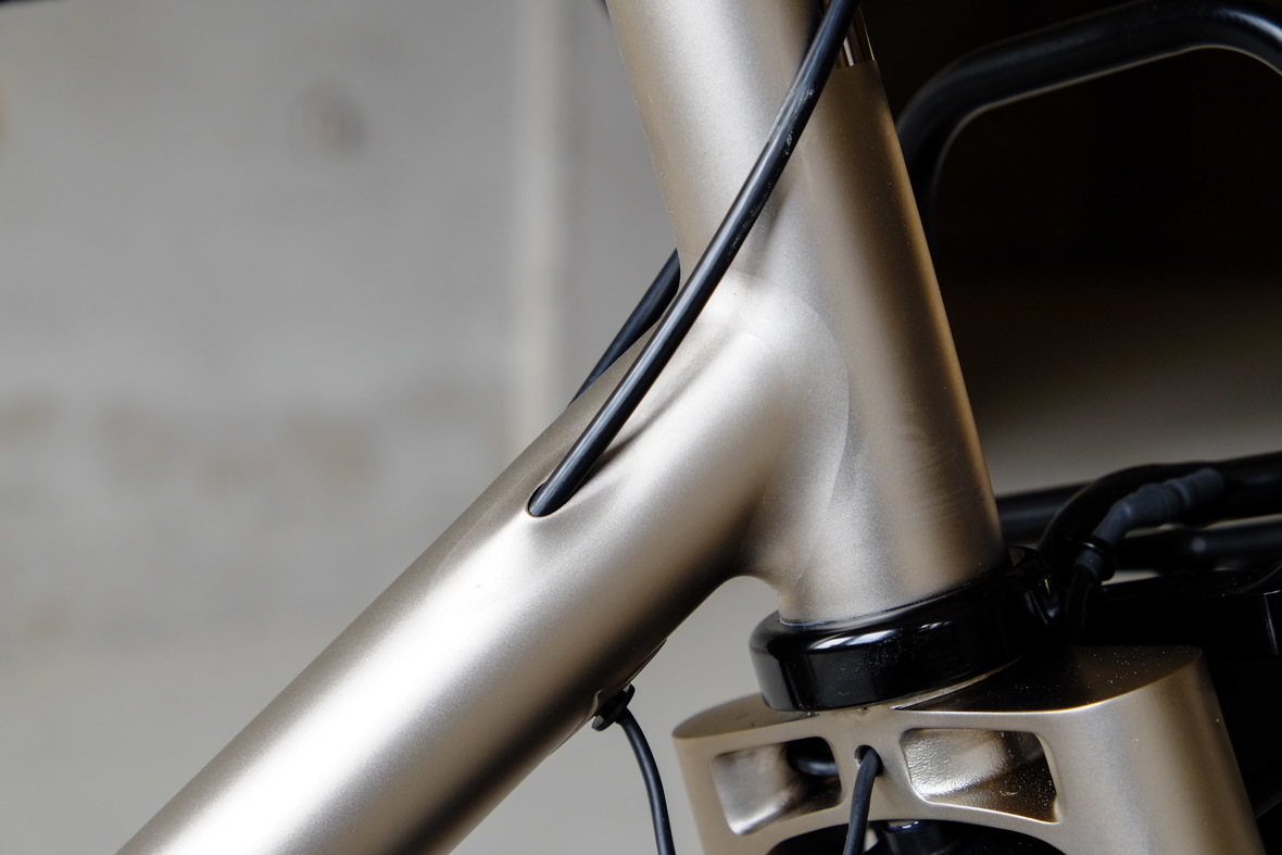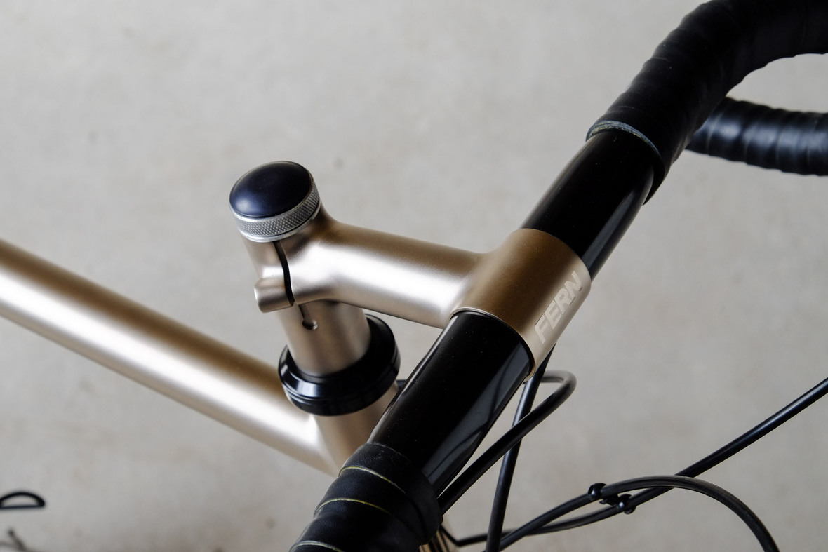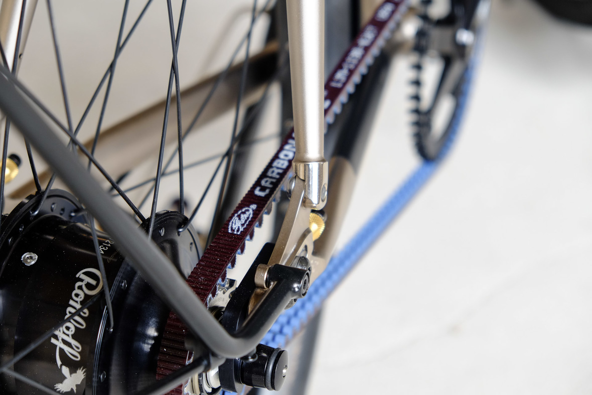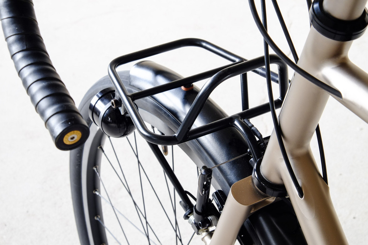 ...rien ne va plus!! This nickel plated dream features only the finest selction of components you can put on a bicycle. Fully internal cable routed custom frame made from finest Columbus life tubing, double plate randonneur fork, deluxe stem, and a set of very special custom made racks. We teamed up some Gevenalle levers, custom ceramic painted Dia-Compe downtube shifters and the ingenious Gebla Rohbox for perfect shifting action with a internally geared Rohloff rear hub. Trouble free belt driven transmisson provided by Gates and smoothest rolling on Rene Herse Naches Pass tires mounted on carbide coated CSS Ryde rims. Front hub dynamo, Headlight and charging all made in Germany by SON and a wonderful custom painted Rene Herse taillight to be switched on and off with a stem mounted switch made by Velolumino. Thanks alot to Paul components, who made a pair of complete black custom anodized Moto Lite brakes for us! The Mighty comp Sugino crankset is spinned by one of the last black pairs of White Industries urban platform pedals we could finally find in Japan. Wonderful details like handlebartape, bar end plugs, mudflap and fenders all made by our friends at Gilles Berthoud!