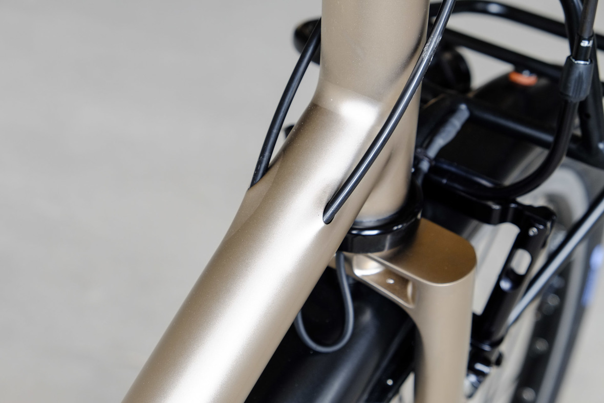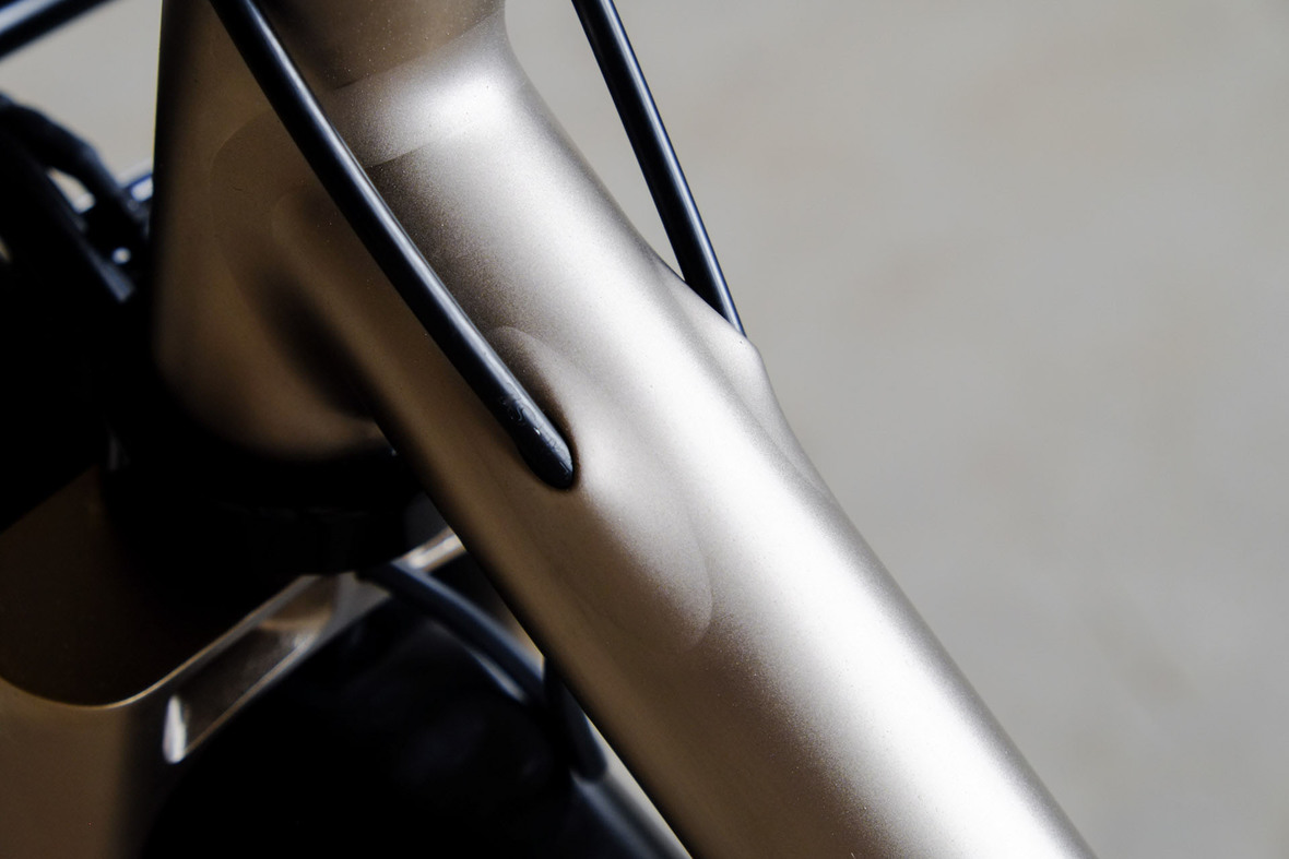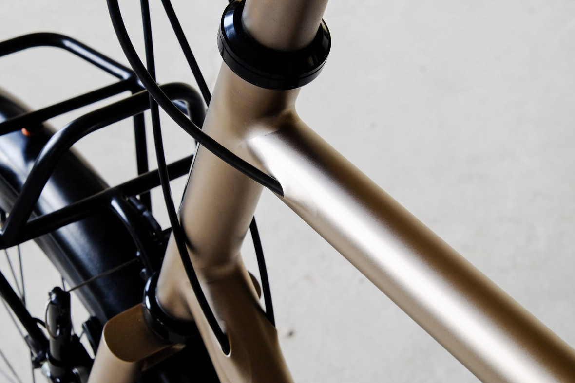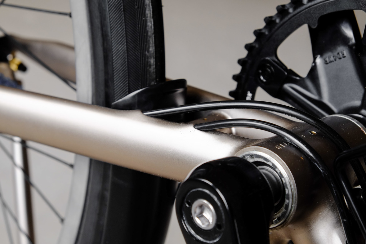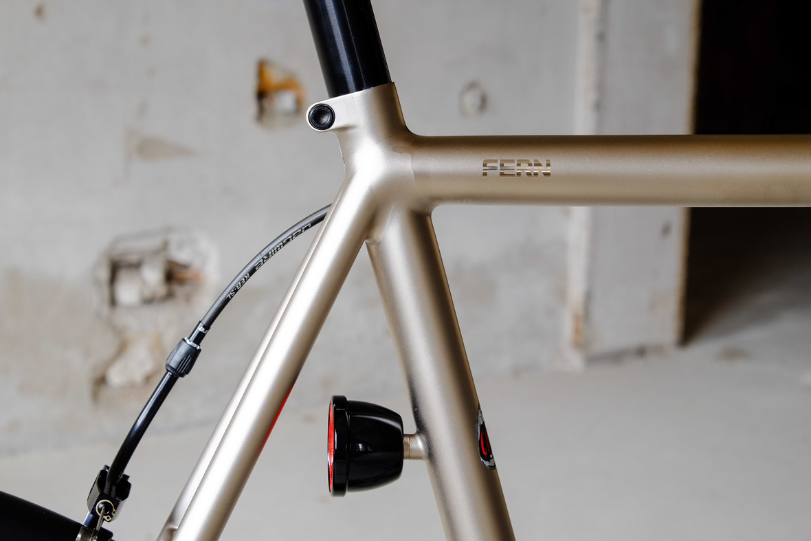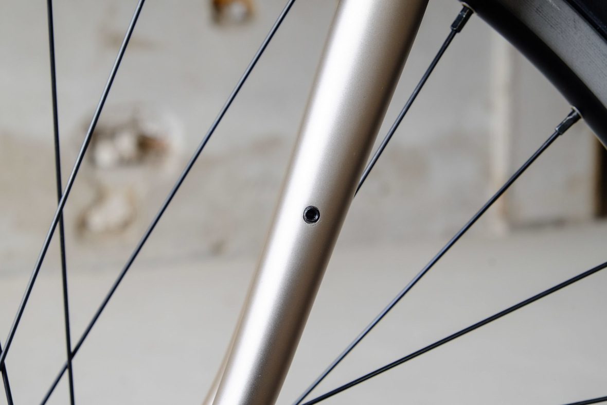 ...rien ne va plus!! This nickel plated dream features only the finest selction of components you can put on a bicycle. Fully internal cable routed custom frame made from finest Columbus life tubing, double plate randonneur fork, deluxe stem, and a set of very special custom made racks. We teamed up some Gevenalle levers, custom ceramic painted Dia-Compe downtube shifters and the ingenious Gebla Rohbox for perfect shifting action with a internally geared Rohloff rear hub. Trouble free belt driven transmisson provided by Gates and smoothest rolling on Rene Herse Naches Pass tires mounted on carbide coated CSS Ryde rims. Front hub dynamo, Headlight and charging all made in Germany by SON and a wonderful custom painted Rene Herse taillight to be switched on and off with a stem mounted switch made by Velolumino. Thanks alot to Paul components, who made a pair of complete black custom anodized Moto Lite brakes for us! The Mighty comp Sugino crankset is spinned by one of the last black pairs of White Industries urban platform pedals we could finally find in Japan. Wonderful details like handlebartape, bar end plugs, mudflap and fenders all made by our friends at Gilles Berthoud!