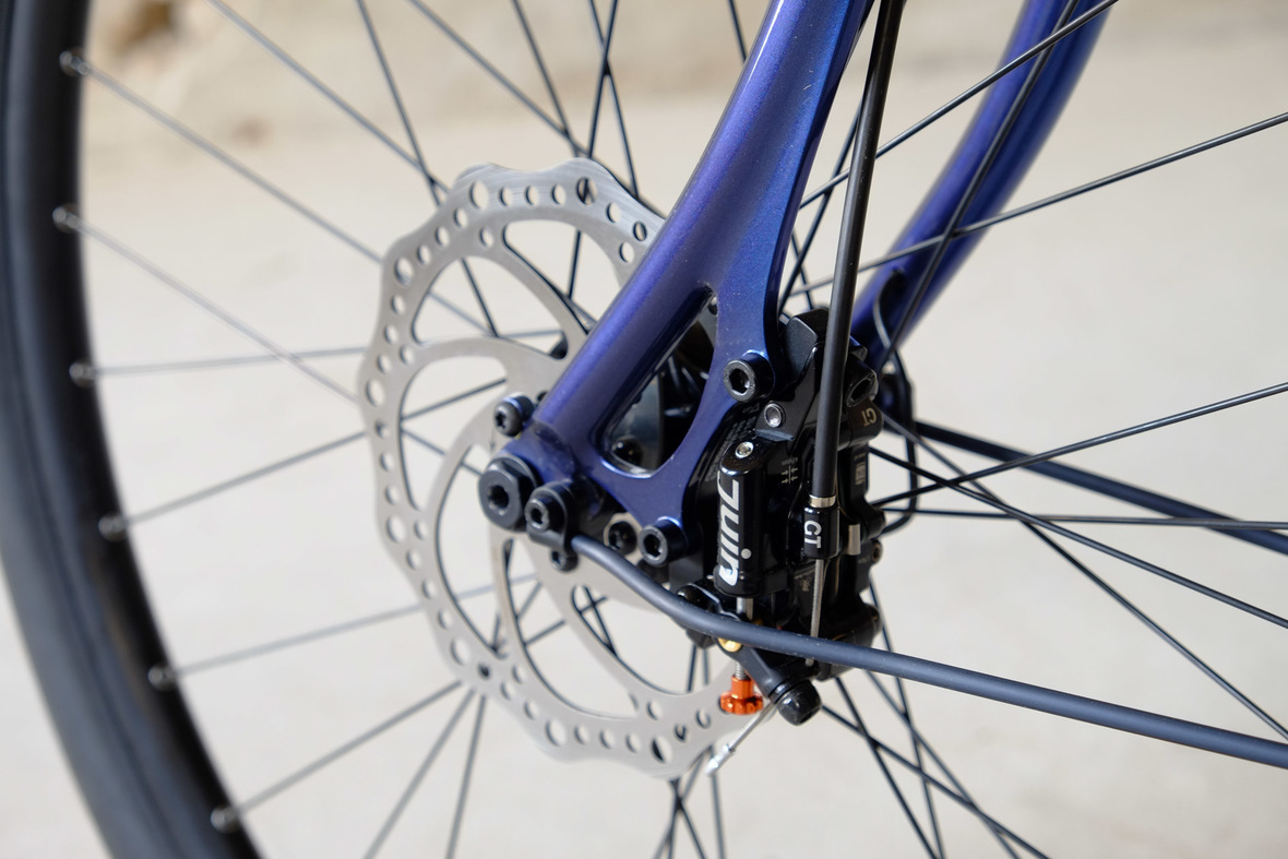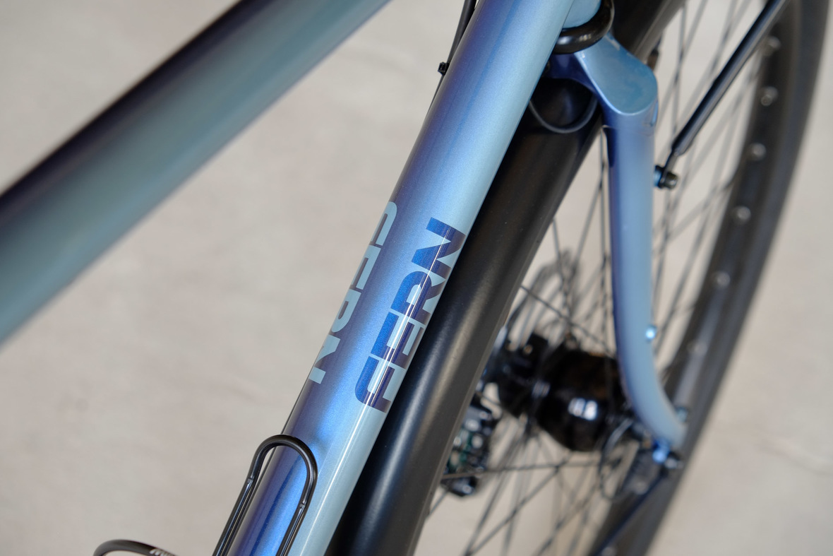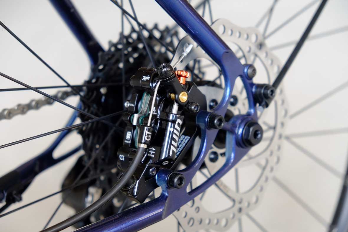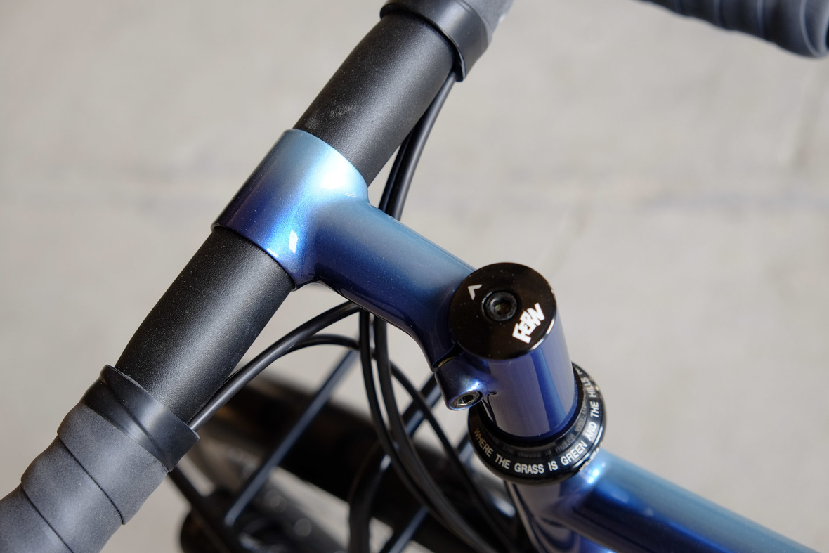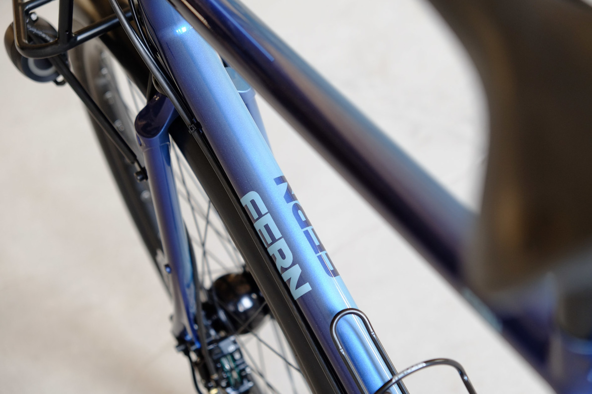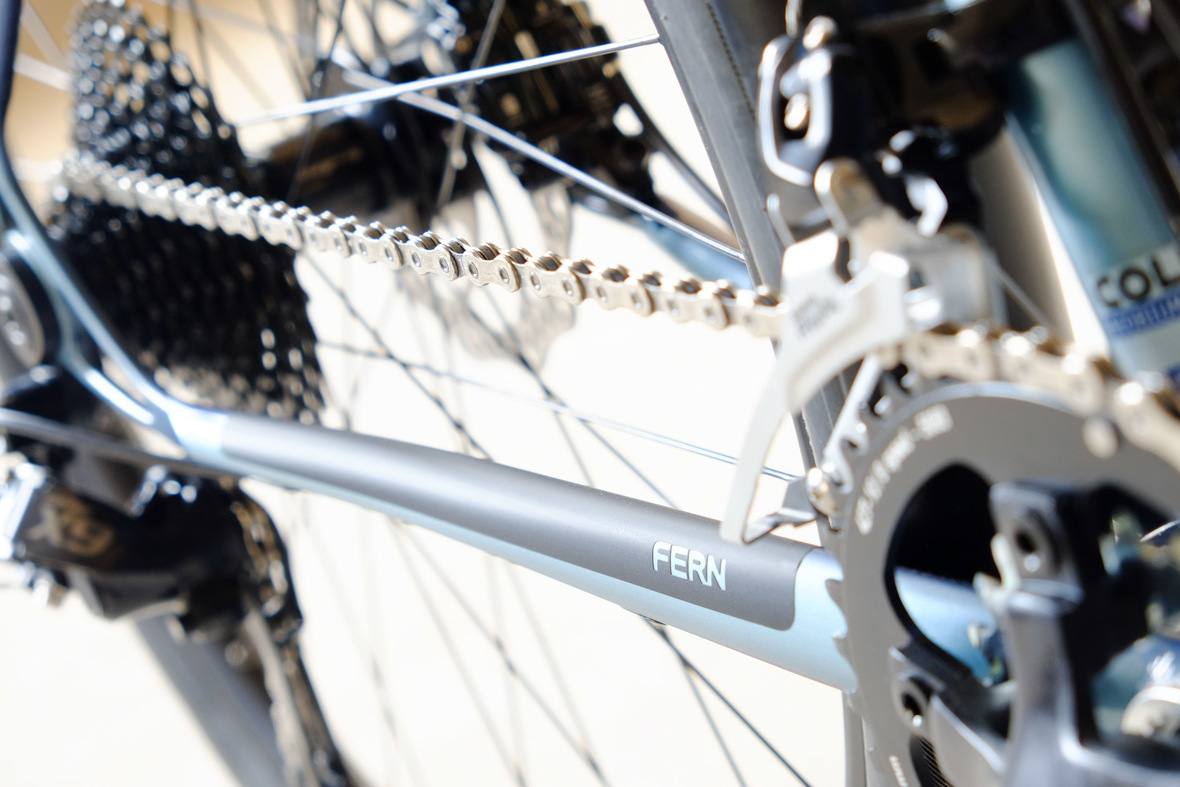 For Sabrina we created this very special 26 Chacha with disc brakes. Sabrina is quite small so we had to make some special tweaks in the geometry to create a perfect fitting bike for her, but without compromising in the handling or ride characteristics. Added up with this fantastic two-faced Jekyll and Mr Hyde paint job done by Velociao, Sabrina got a truely absolute unique piece of bike!