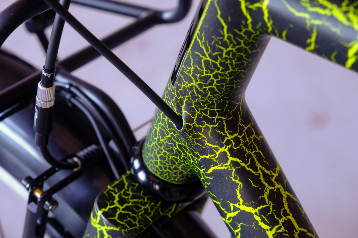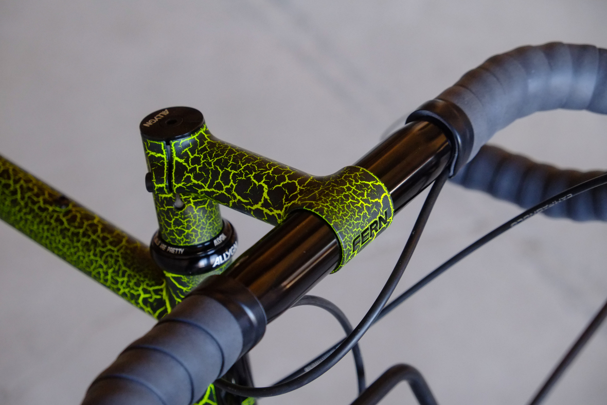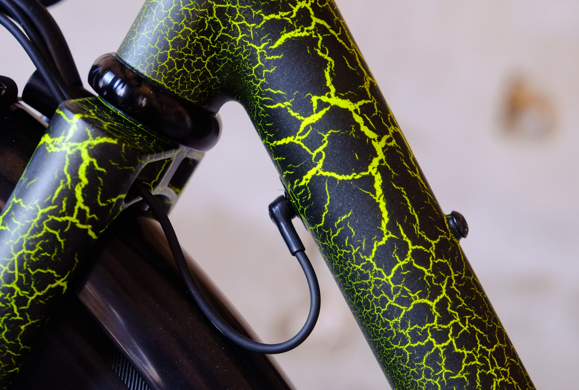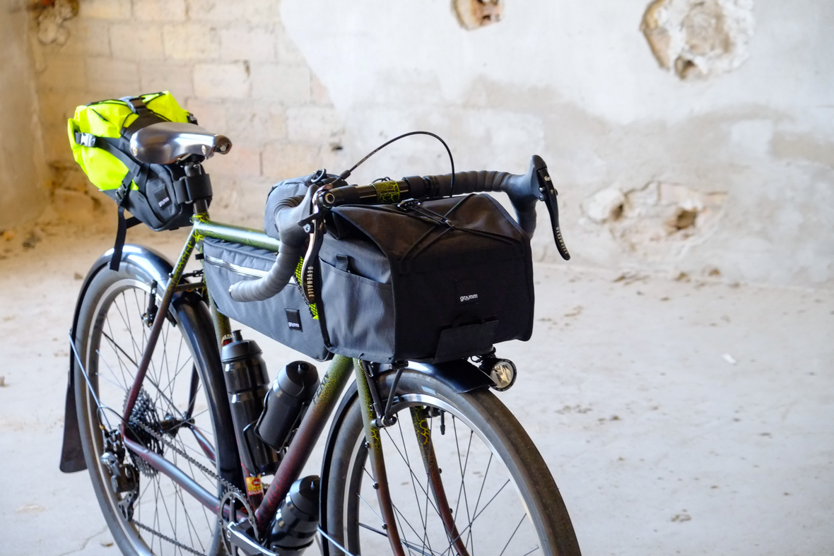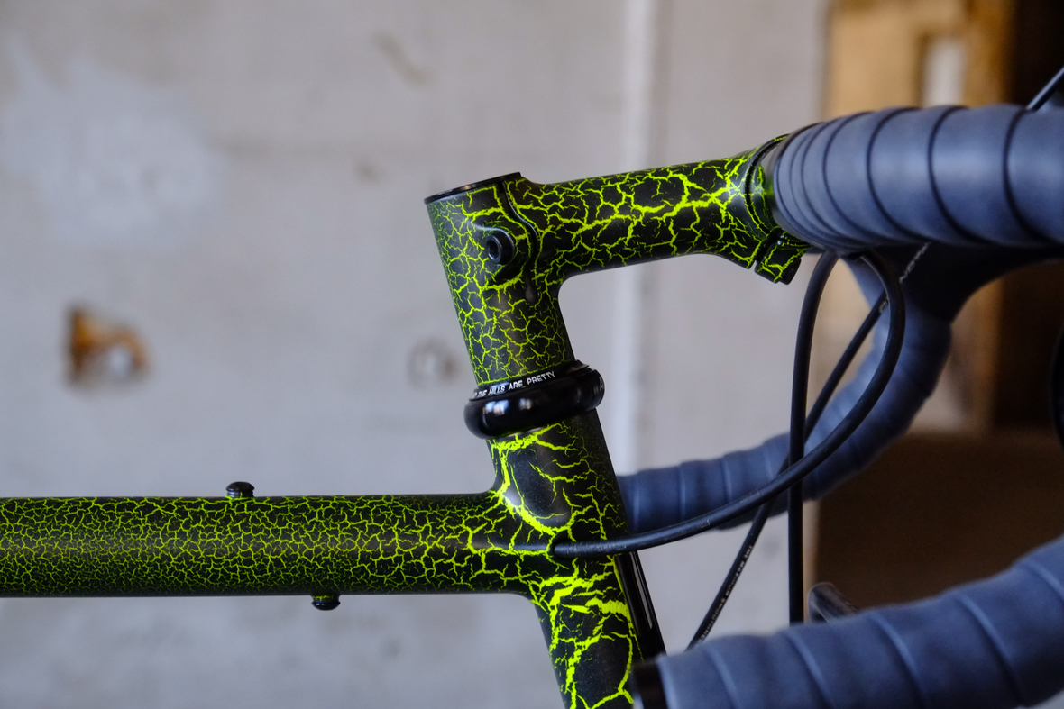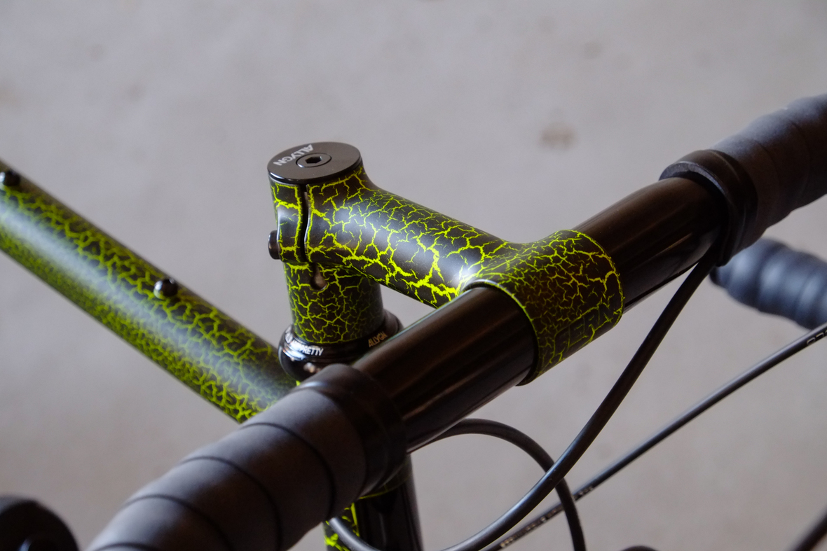 I know Andreas, who is a regular guest at our favourite Berlin Feierabend Bierchen Bicycle Hang Out Shops, for a long time now and I always knew one day I will make a bike for him. Finally his long time dream became reality and we made this super nice classic randonneur bicyle for him, with this fantastic and absolutely not so classic at all punk rock crackle paintsheme created by Velociao and a full set of matching bags made by my love Kristin @gramm-tourpacking .