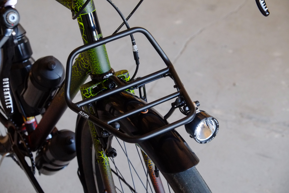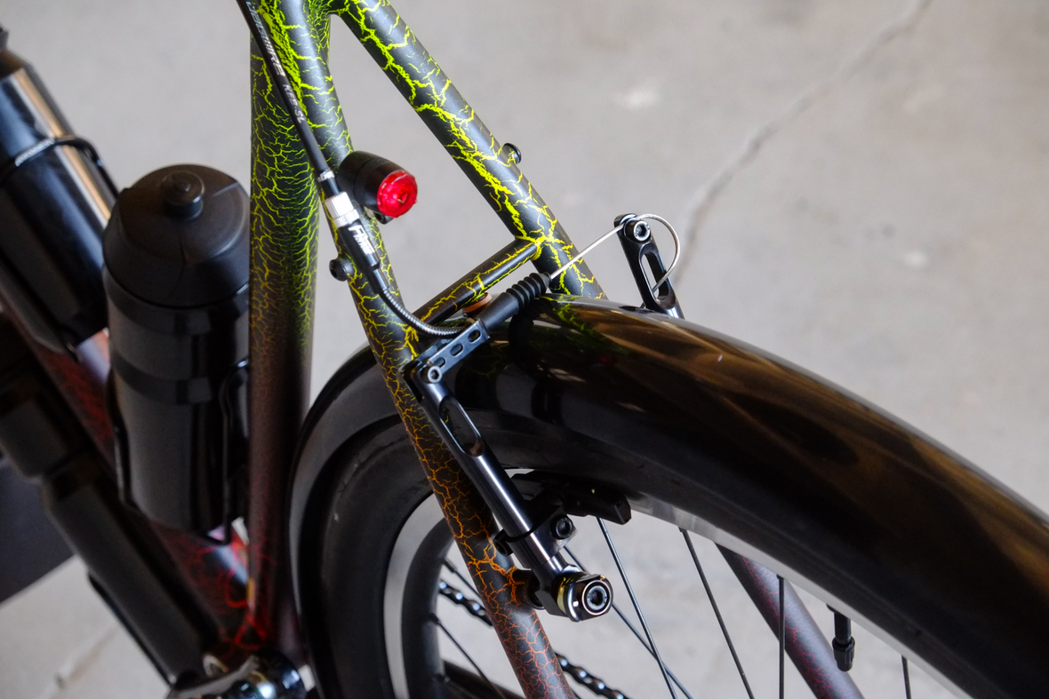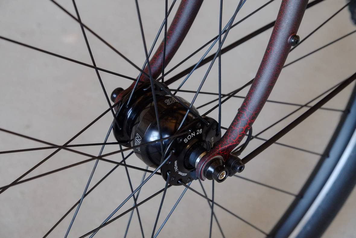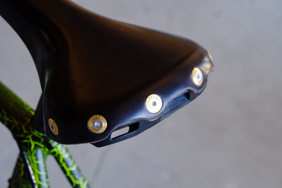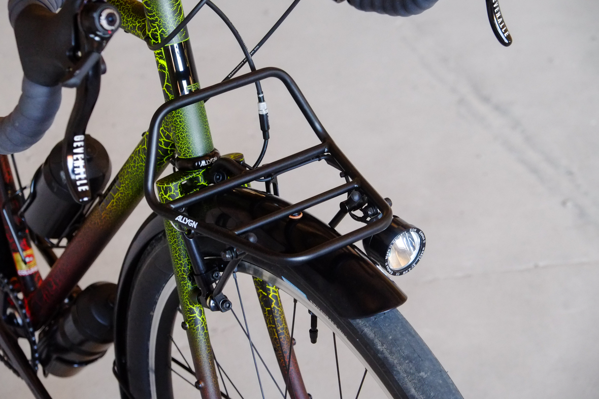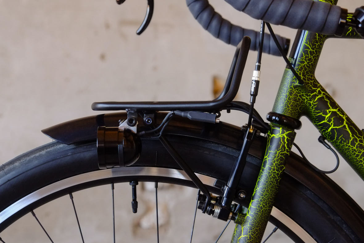 What an amazing bike, featuring all you need for long rides off and on the road, perfect for gravel roads as well as for long distance brevet rides. English style reverse braking sheme with custom flip flopped Paul Component V-brakes. Super nice parts made by our friends @Gilles Berthoud, Rene Herse 650B x 48mm tires, Shifting by Gevenalle, energy and lights as usual by SON.