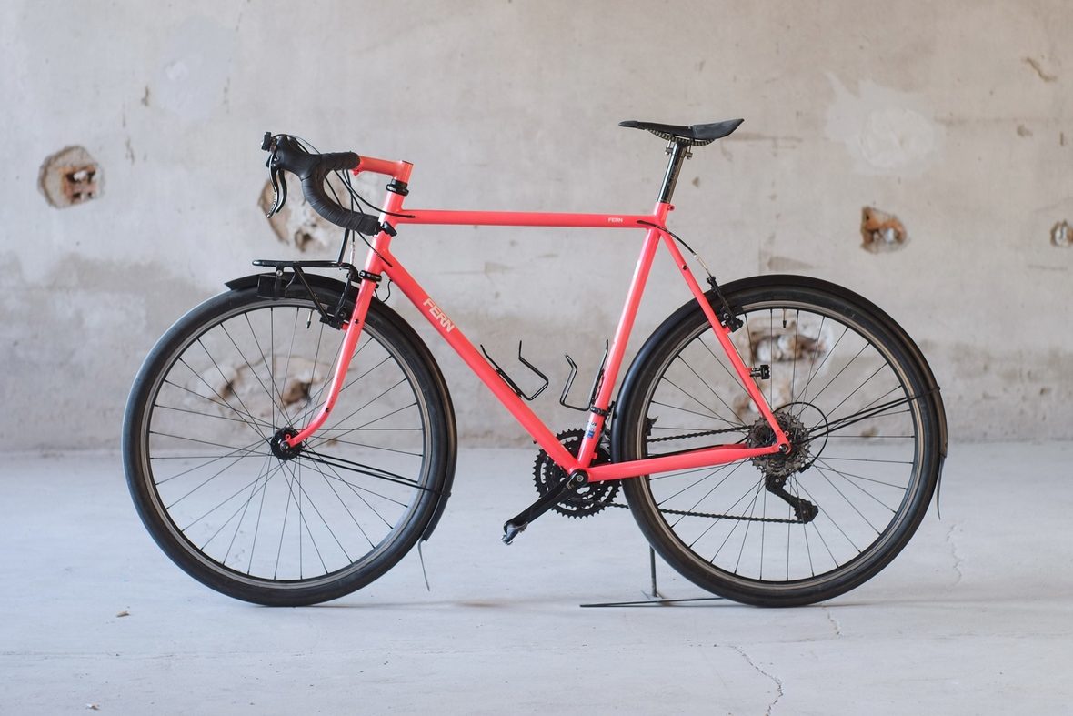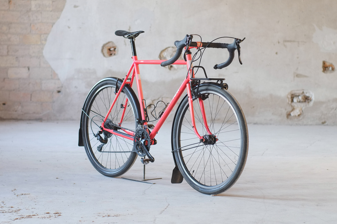 Der schnelle, kleine, leichte Bruder vom Chacha. Designed für die lange Strecke, perfekt für schnelle Randonneuer Ausfahrten, egal ob auf oder abseits der Asphaltpisten, Chico frisst Kilometer, am liebsten gewürzt mit Schotter. Minimale Gepäckträger für minimales Gepäck, ideal wenn man für ein paar Tage schnell unterwegs sein möchte. 11kg komplett mit Trägern, und Lichtanlage, super leichter und trotzdem steifer Rahmen aus Columbus Life und Spirit Rohren. Komplett innenverlegte Züge und die neue Fern Double Plate Gabel, alles in Handarbeit von uns in Berlin hergestellt. Das unfassbare Pink hat Robert von Velociao für uns kreiert. Wenn ihr mehr sehen wollt, dann schaut hier: radarvist.com