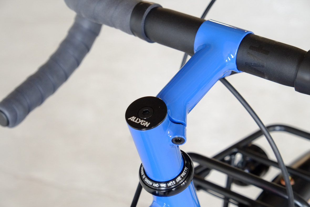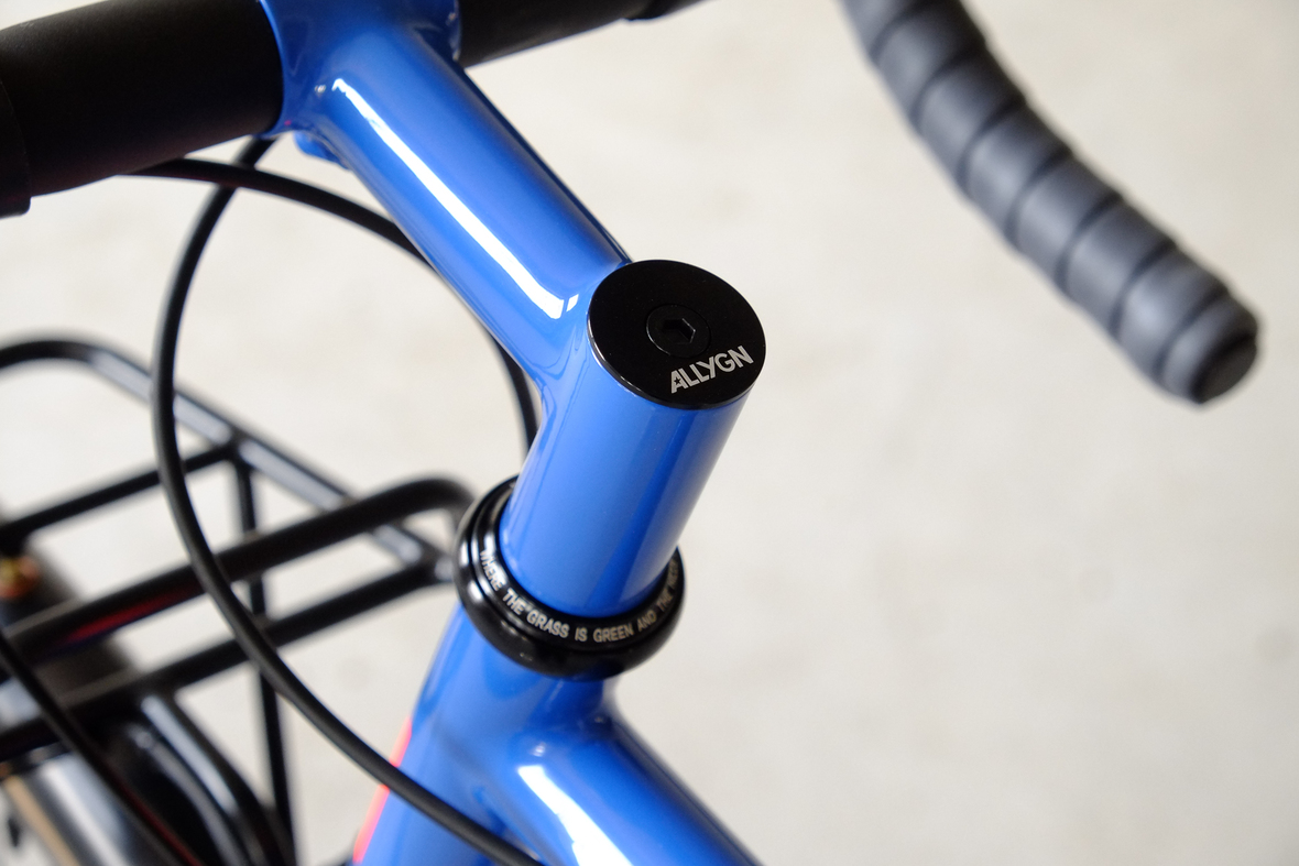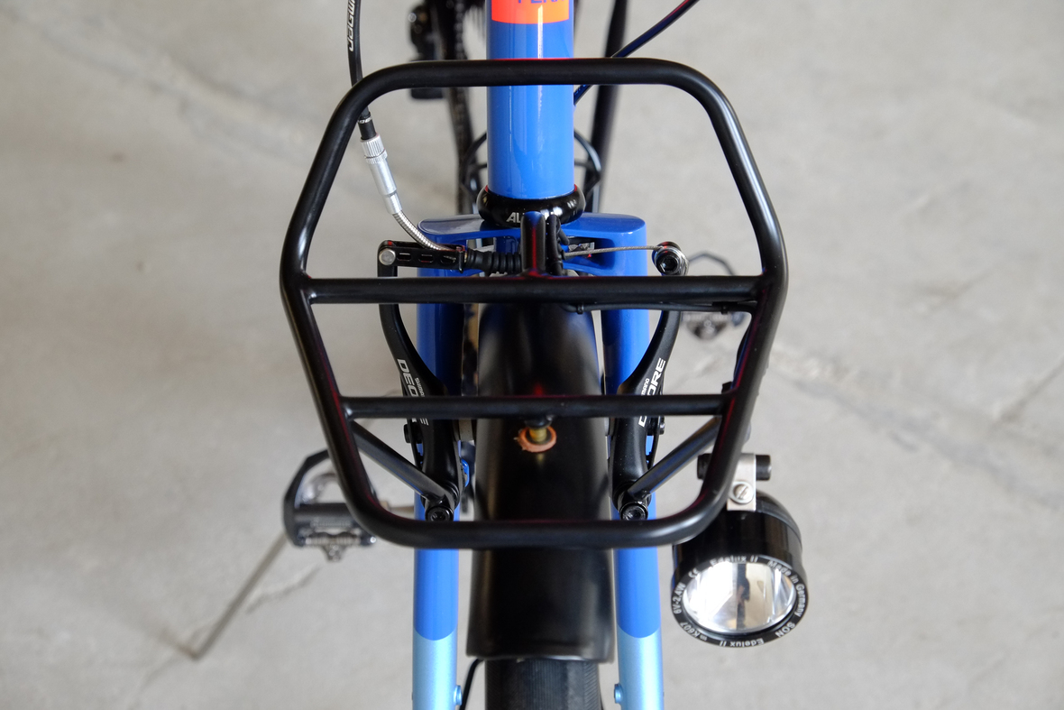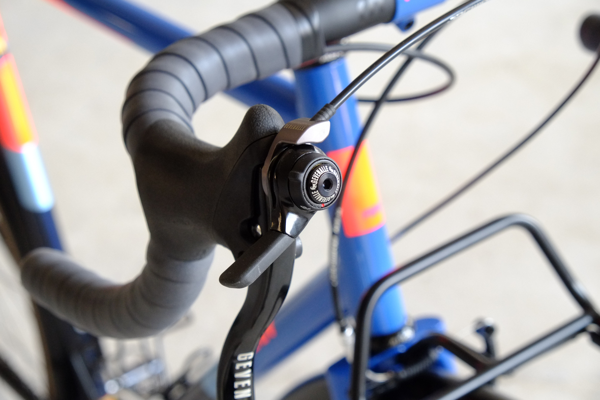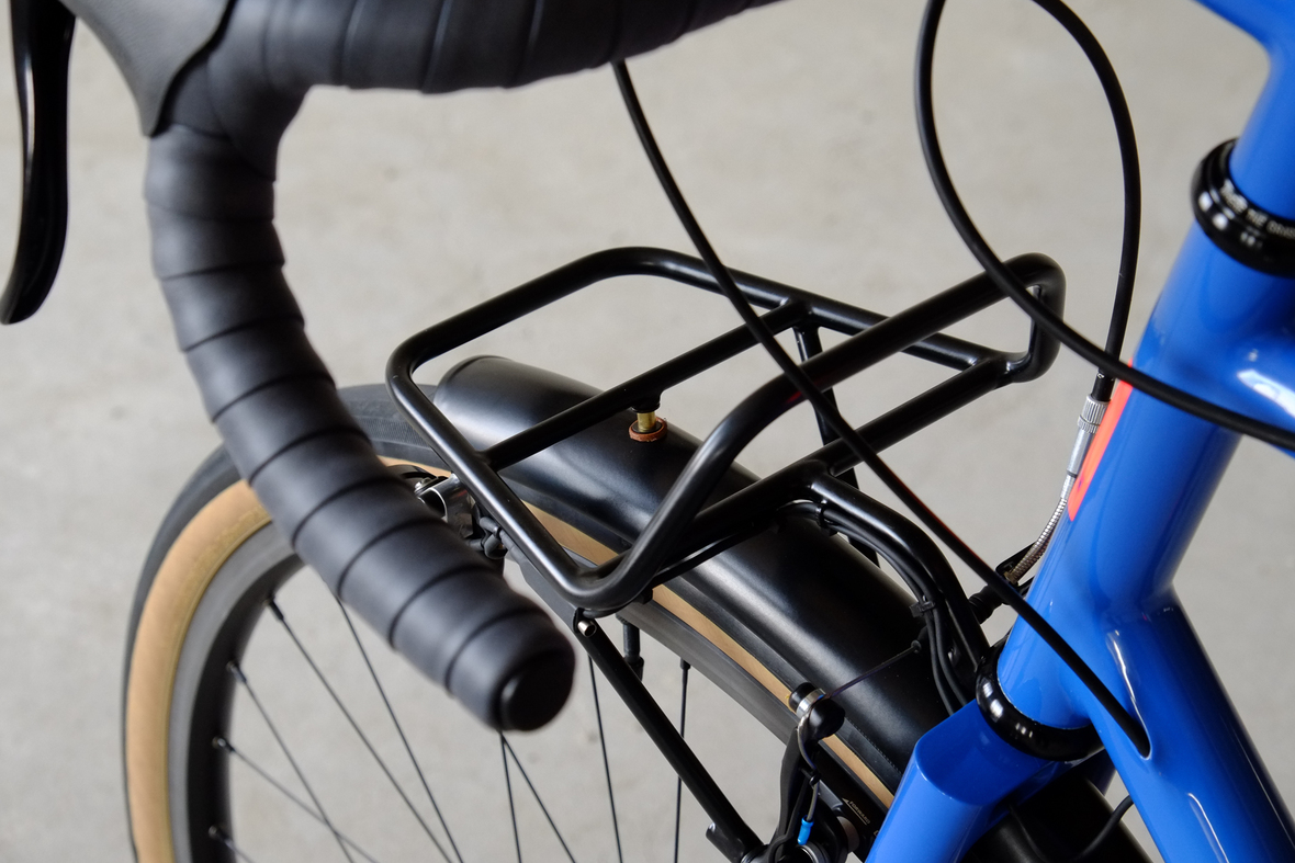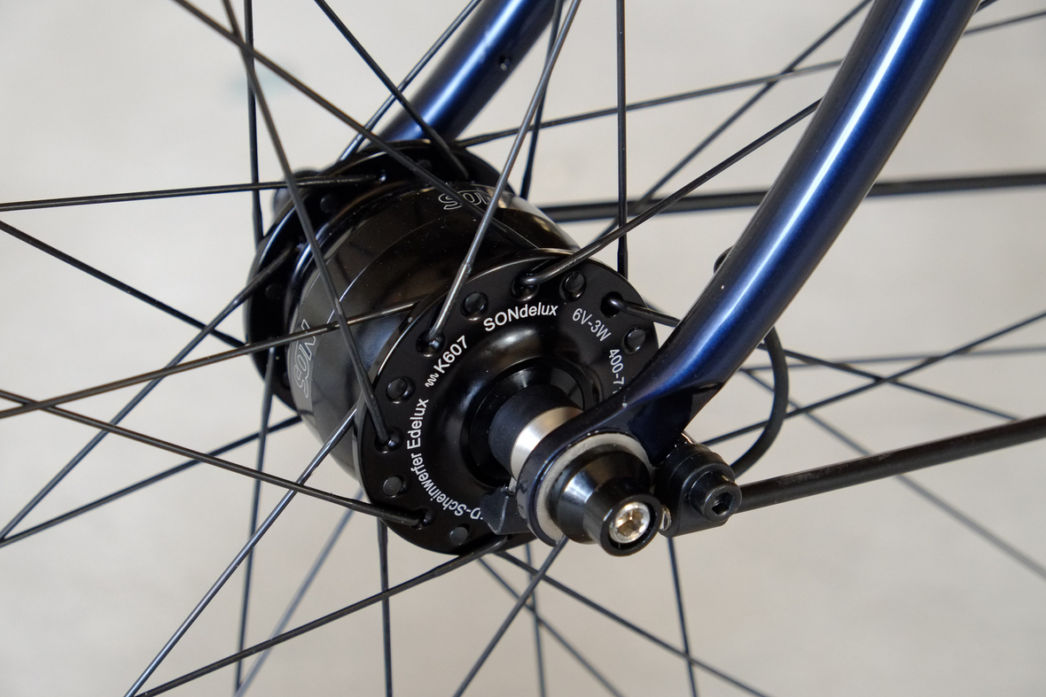 This wonderful Chico 28 finally goes out to my man Mr. Q! Thanks so much for being the most patient and nicest customers we 've had here at Fern, I hope the long time waiting was worth it ;) This bike is featuring a true racing bike geometry, but rolling super smooth on supple Rene Herse 44mm Snoqualmie Pass tires. Maximum speed and absolutely superior comfort on any kind of terrain, no matter if you go for racing on asphalt or for fun gravelriding off the road, the Chico 28 can do it all. The bike is equipped with a Gevenalle powered 1x11 Shimano drivetrain turned by a Wolftooth Drop Stop chainring mounted to a vintage custom anodized Dura Ace 7400 crankset. Fenders made by our friends at Berthoud Cycles, comfy contact points by Tune ,Whiskyparts and ESI grips. Lights and power supply by SON, "Schmidt's Original Nabendynamo". Stem and rack are all handmade by Fern. Awesome stripy paint sheme by our man Robert from Velociao . Have good time rolling on your new steed!