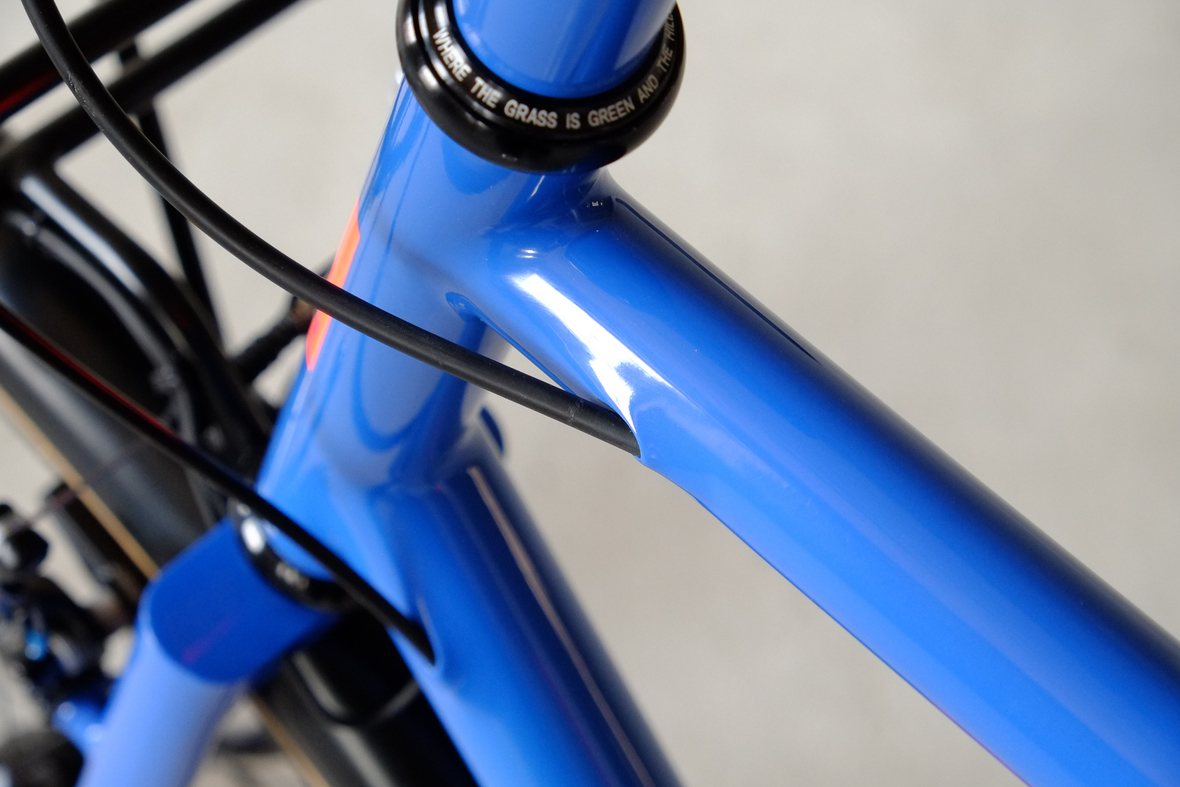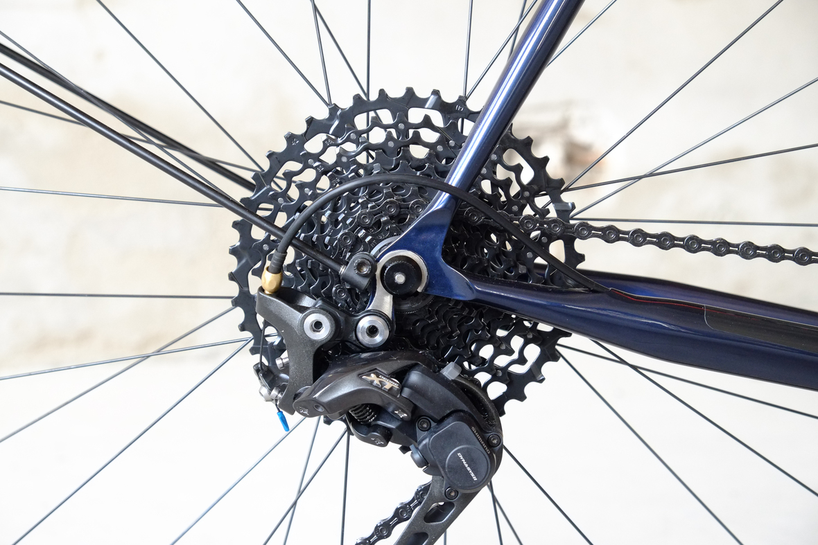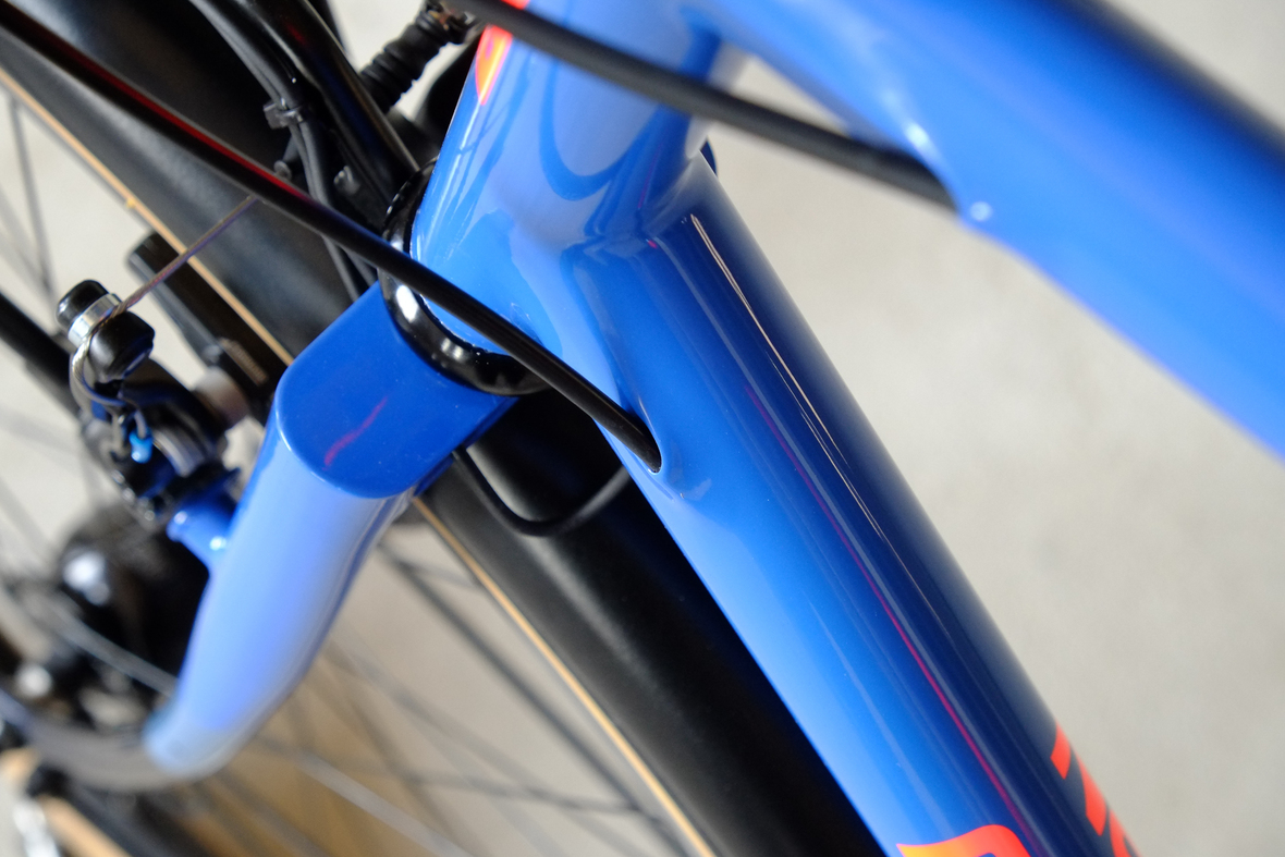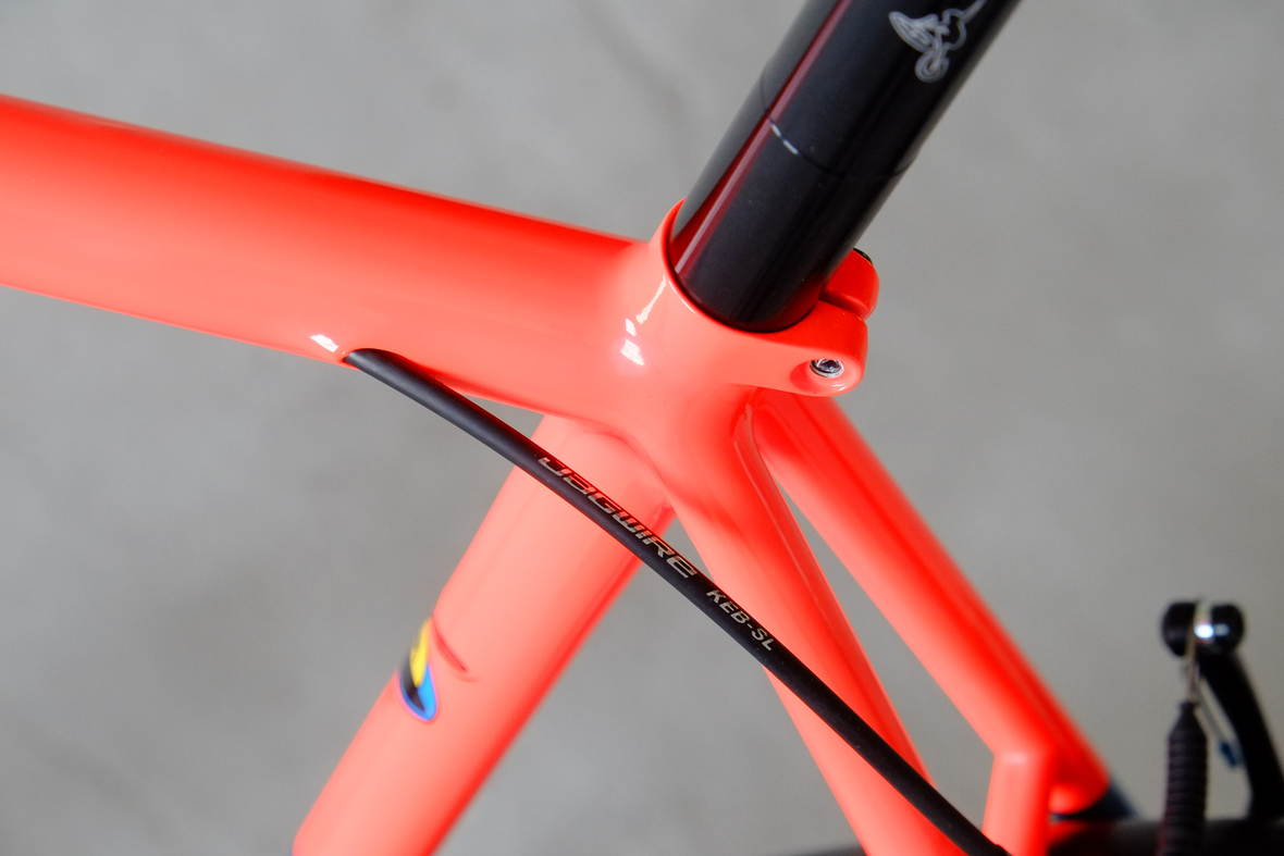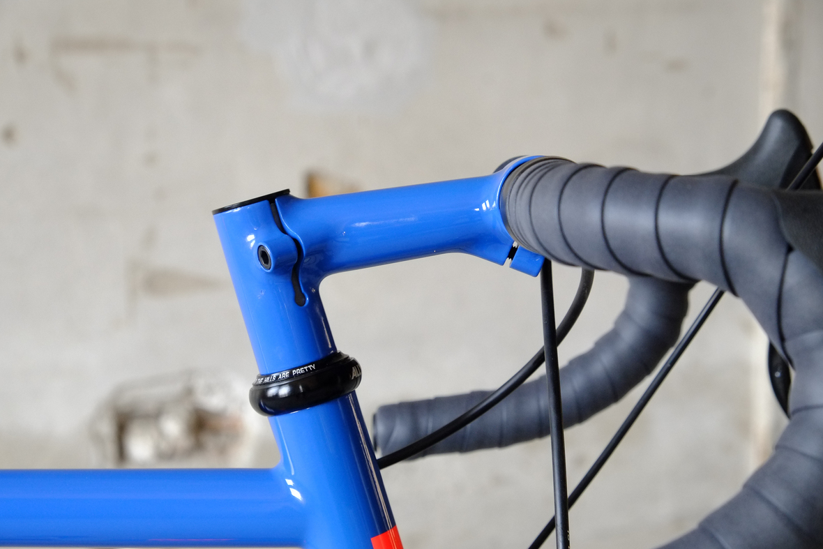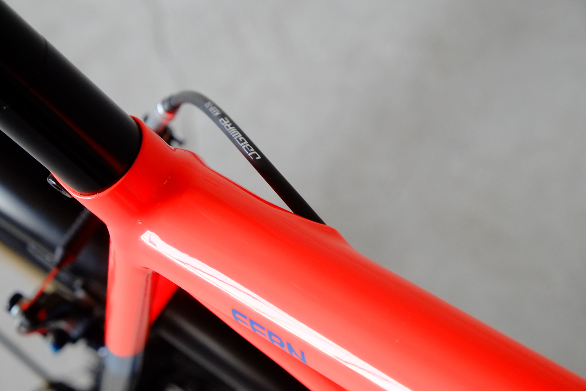 This wonderful Chico 28 finally goes out to my man Mr. Q! Thanks so much for being the most patient and nicest customers we 've had here at Fern, I hope the long time waiting was worth it ;) This bike is featuring a true racing bike geometry, but rolling super smooth on supple Rene Herse 44mm Snoqualmie Pass tires. Maximum speed and absolutely superior comfort on any kind of terrain, no matter if you go for racing on asphalt or for fun gravelriding off the road, the Chico 28 can do it all. The bike is equipped with a Gevenalle powered 1x11 Shimano drivetrain turned by a Wolftooth Drop Stop chainring mounted to a vintage custom anodized Dura Ace 7400 crankset. Fenders made by our friends at Berthoud Cycles, comfy contact points by Tune ,Whiskyparts and ESI grips. Lights and power supply by SON, "Schmidt's Original Nabendynamo". Stem and rack are all handmade by Fern. Awesome stripy paint sheme by our man Robert from Velociao . Have good time rolling on your new steed!