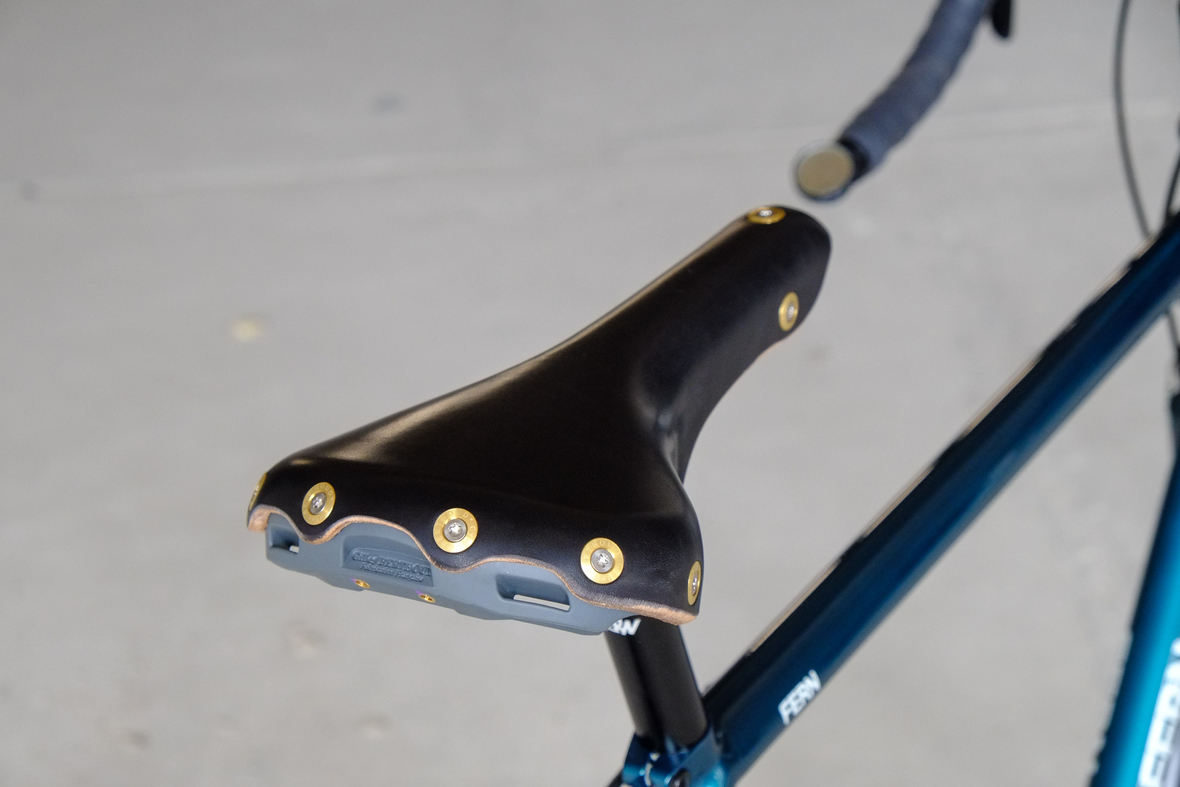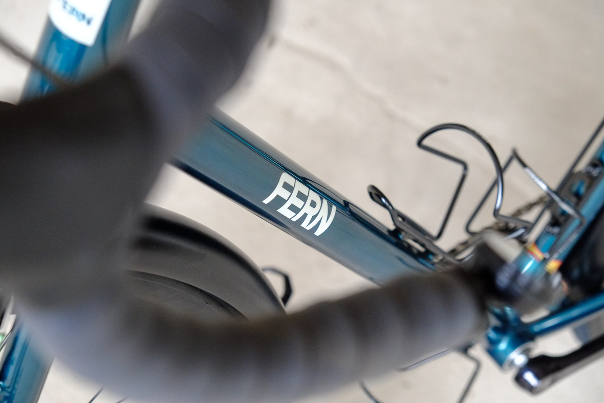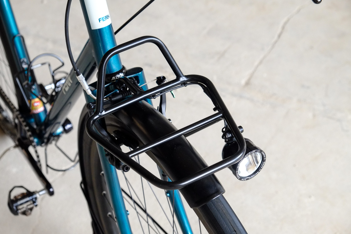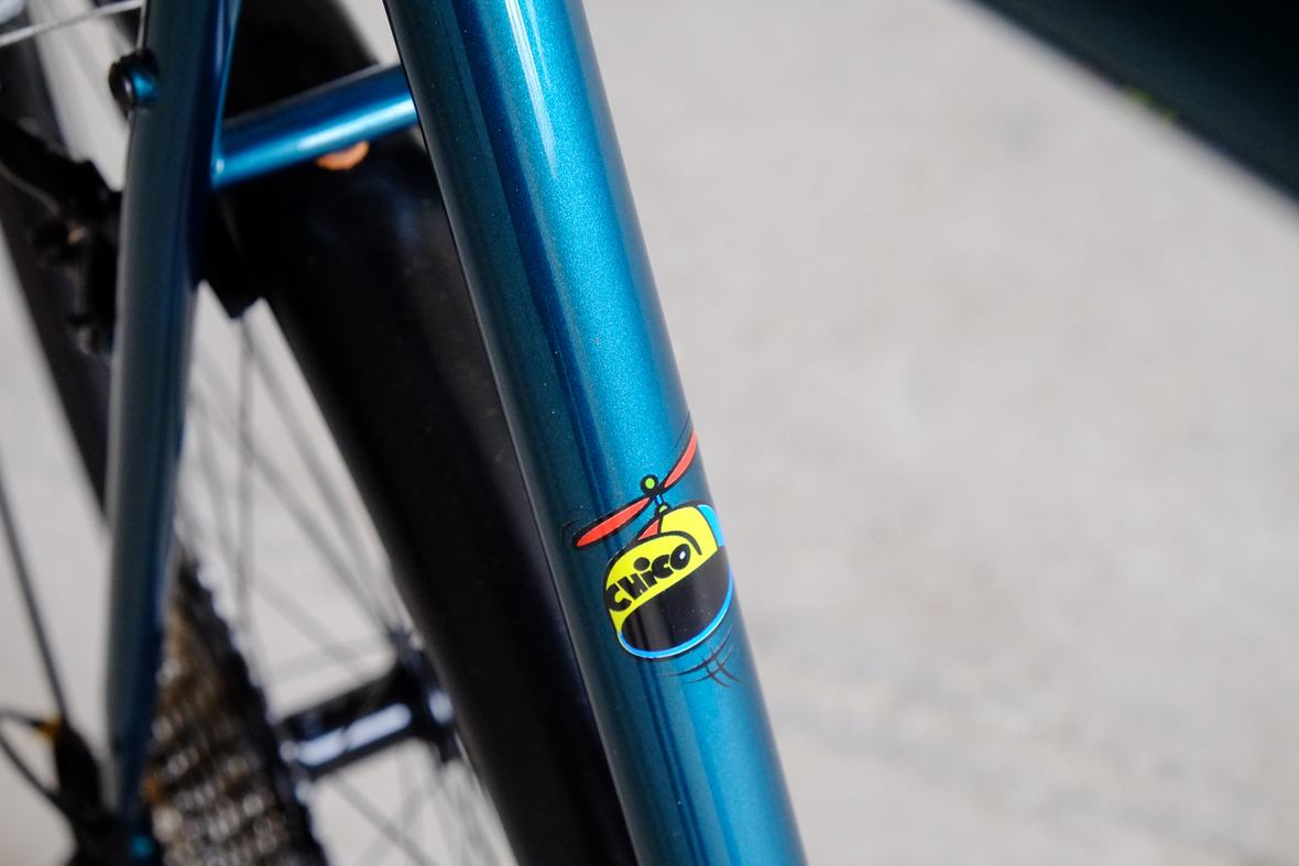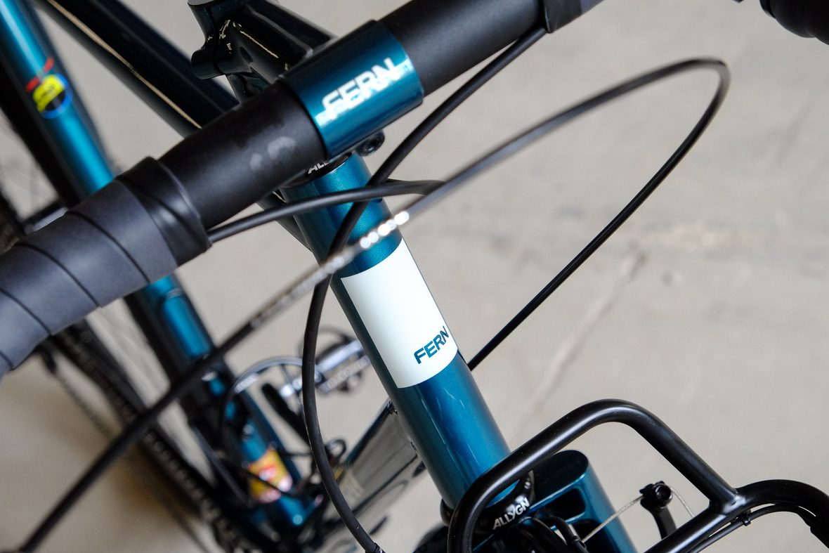This Icelandic green Chico 28 Randonneur bike will not be ridden in Iceland but through the beautiful Swiss alps. Completely equipped with bags made by my love Kristin Gramm-Tourpacking this bike is ready for any long distance task. The bike comes with our classic and well proven set up of components, featuring as usual super comfy riding on @Rene Herse 38mm Bon Jon Pass extralight tires, mounted tubeless on the unfortunately no longer available super sonic carbide coated CSS Ryde rims. In combination with V-brakes they offer the best braking power ever to be found on rim brakes, equal if not better to the best disc brakes. Simple and reliable 1x11 Shimano XT drive train in combination with Gevenalle shifters gives you all the gearing you would need for any kind mountain pass. Smooth spinning with super low Q-factor vintage and custom anodized Dura Ace 7400 crankset, pimped up with a Wolftooth Drop Stop chainring. Super nice saddle, barend mirror, fenders and mudflap made by our friends at Berthoud Cycles. Lights and power supply by SON , "Schmidt's Original Nabendynamo".