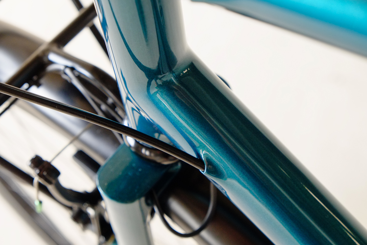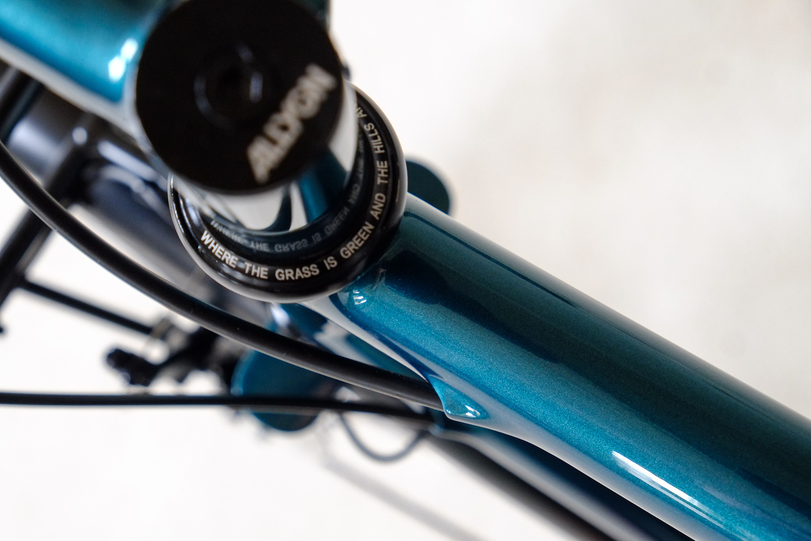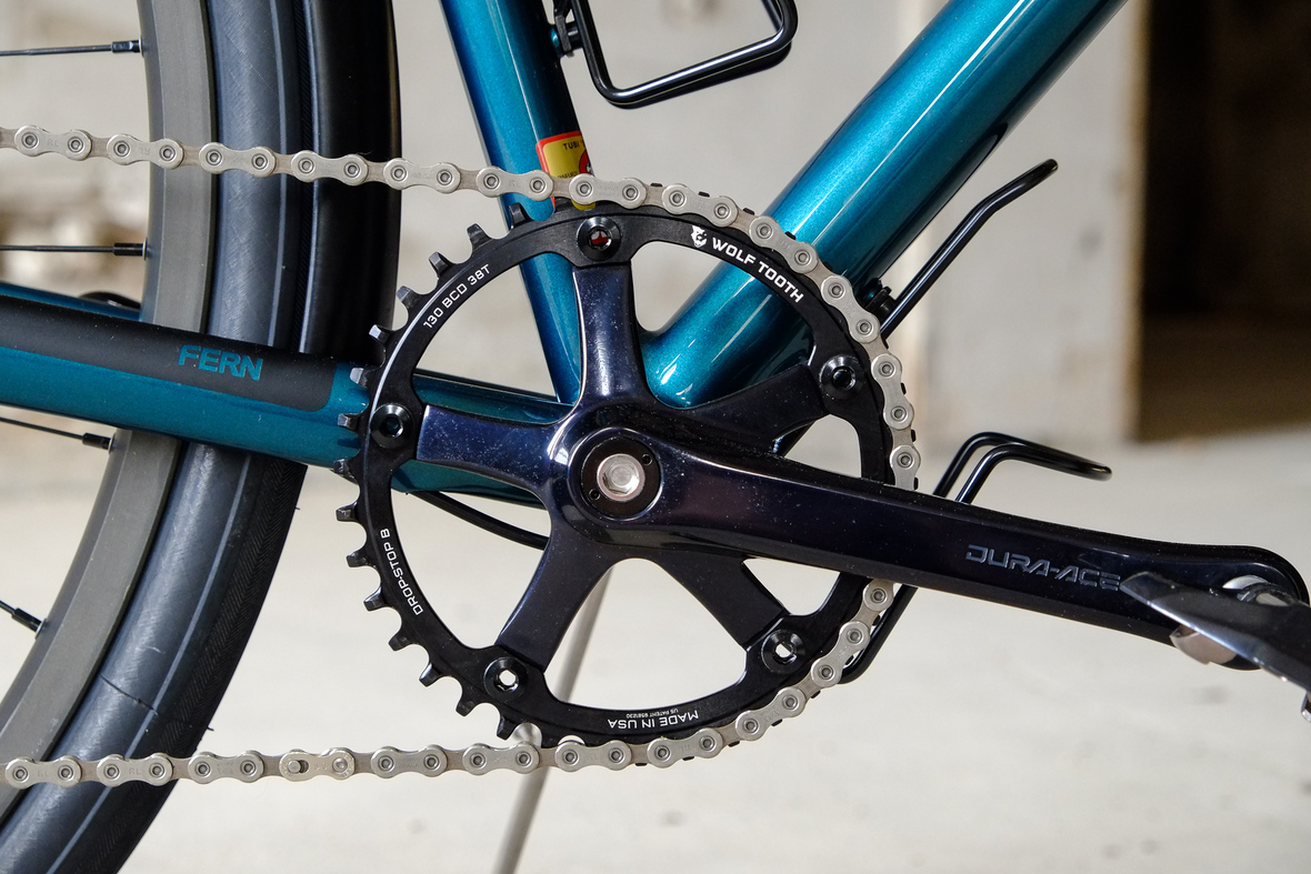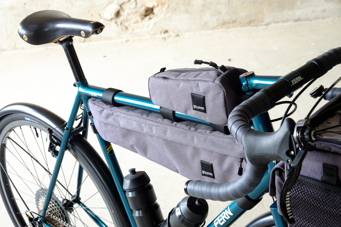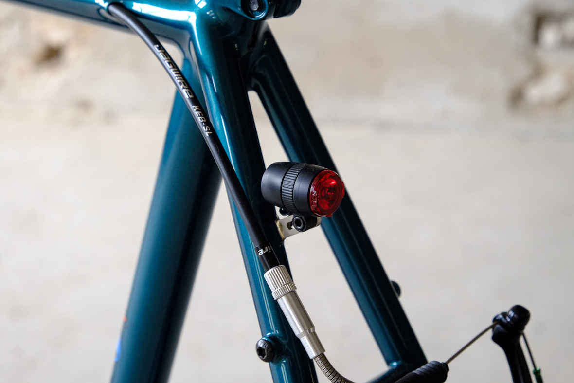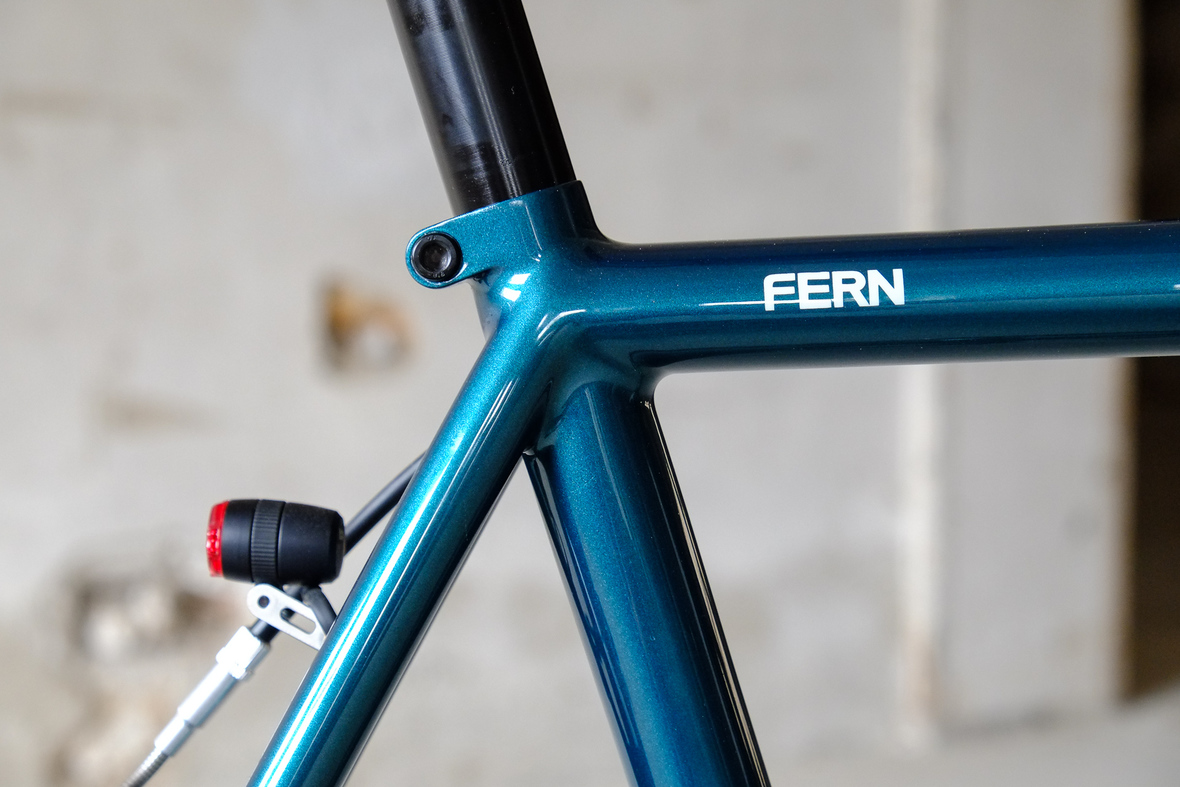This Icelandic green Chico 28 Randonneur bike will not be ridden in Iceland but through the beautiful Swiss alps. Completely equipped with bags made by my love Kristin Gramm-Tourpacking this bike is ready for any long distance task. The bike comes with our classic and well proven set up of components, featuring as usual super comfy riding on @Rene Herse 38mm Bon Jon Pass extralight tires, mounted tubeless on the unfortunately no longer available super sonic carbide coated CSS Ryde rims. In combination with V-brakes they offer the best braking power ever to be found on rim brakes, equal if not better to the best disc brakes. Simple and reliable 1x11 Shimano XT drive train in combination with Gevenalle shifters gives you all the gearing you would need for any kind mountain pass. Smooth spinning with super low Q-factor vintage and custom anodized Dura Ace 7400 crankset, pimped up with a Wolftooth Drop Stop chainring. Super nice saddle, barend mirror, fenders and mudflap made by our friends at Berthoud Cycles. Lights and power supply by SON , "Schmidt's Original Nabendynamo".