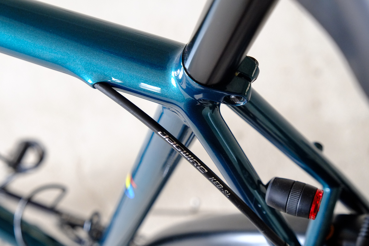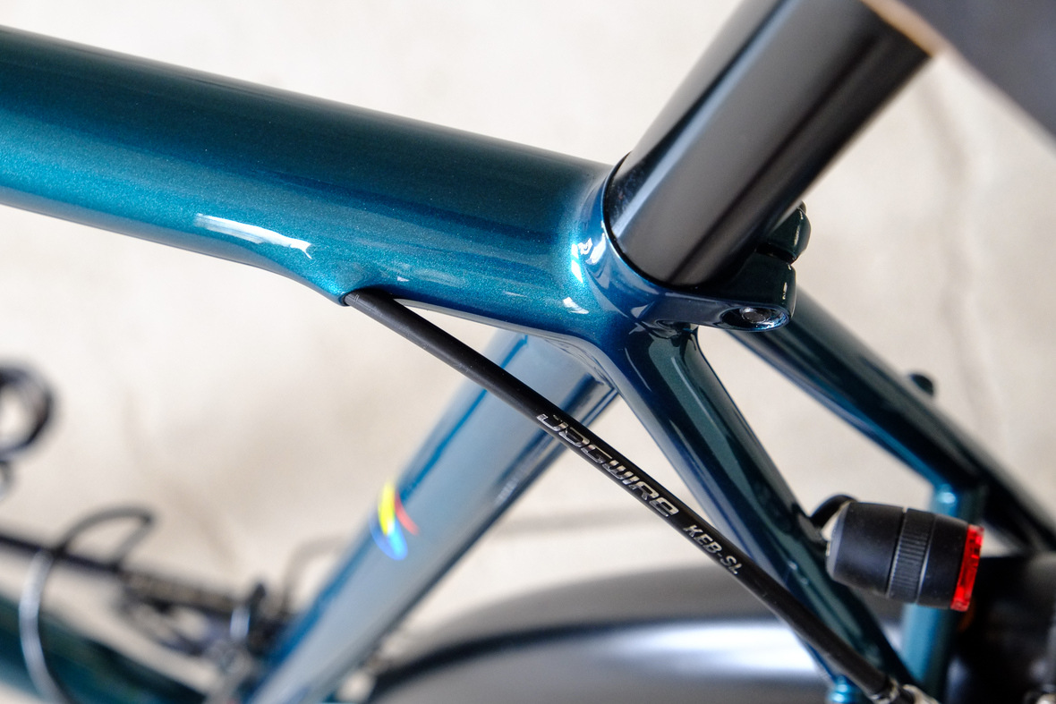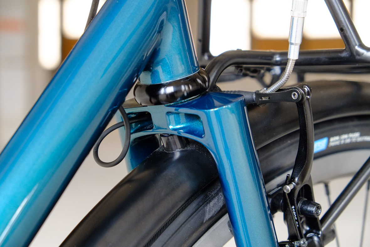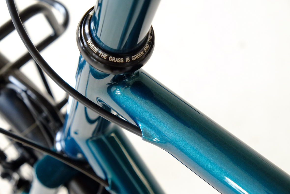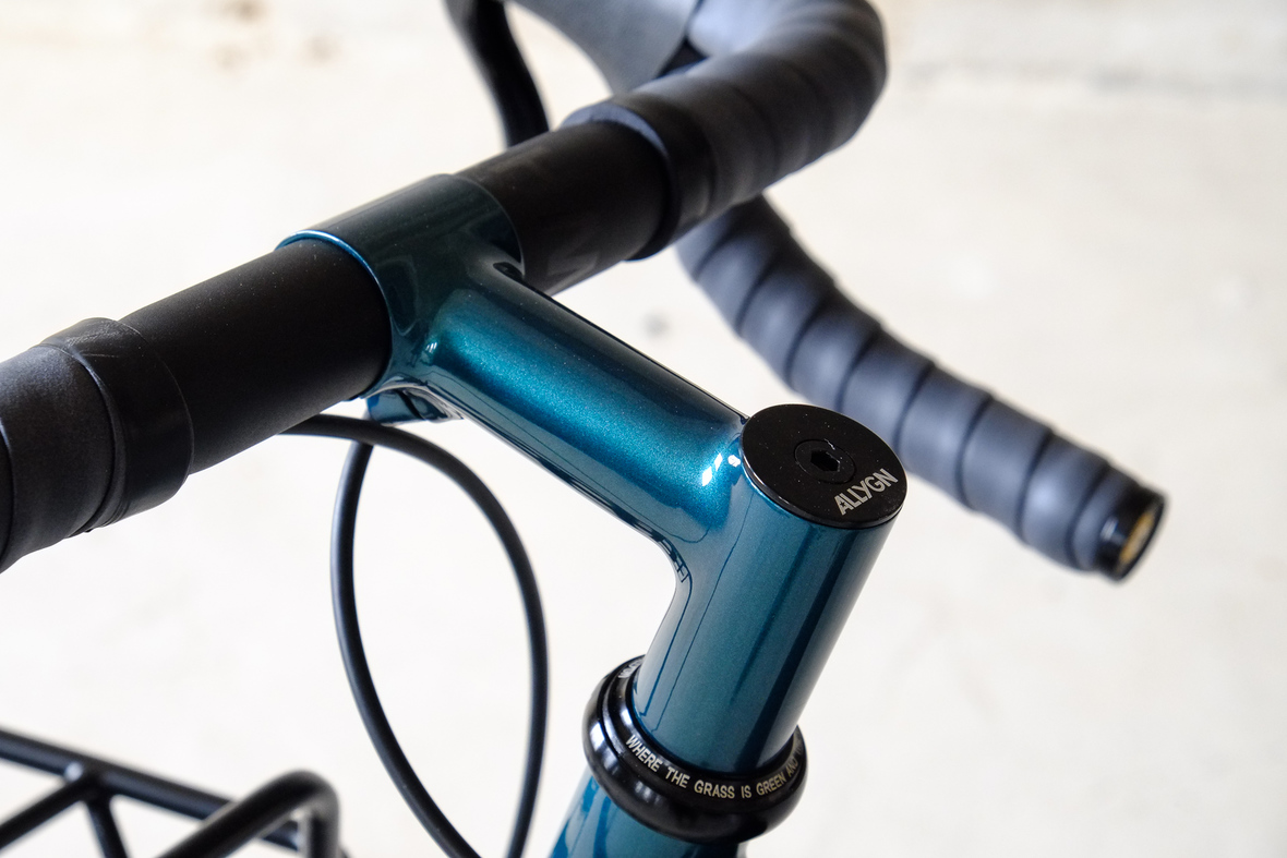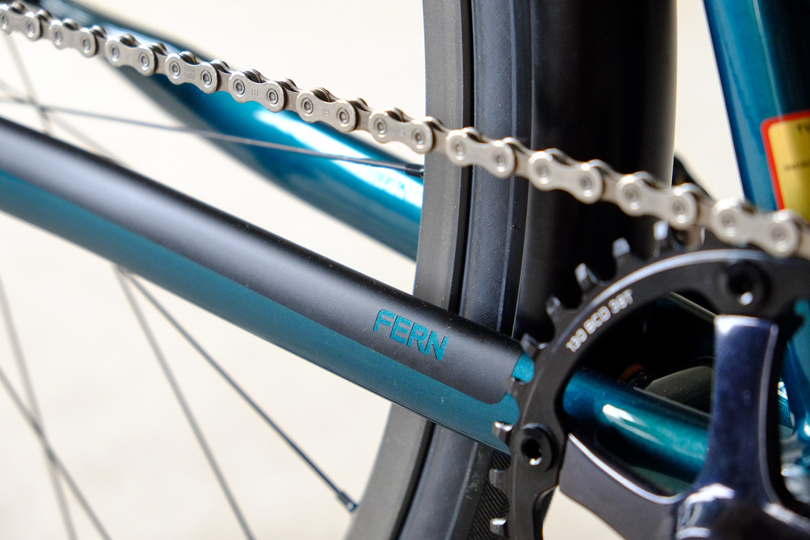 This Icelandic green Chico 28 Randonneur bike will not be ridden in Iceland but through the beautiful Swiss alps. Completely equipped with bags made by my love Kristin Gramm-Tourpacking this bike is ready for any long distance task. The bike comes with our classic and well proven set up of components, featuring as usual super comfy riding on @Rene Herse 38mm Bon Jon Pass extralight tires, mounted tubeless on the unfortunately no longer available super sonic carbide coated CSS Ryde rims. In combination with V-brakes they offer the best braking power ever to be found on rim brakes, equal if not better to the best disc brakes. Simple and reliable 1x11 Shimano XT drive train in combination with Gevenalle shifters gives you all the gearing you would need for any kind mountain pass. Smooth spinning with super low Q-factor vintage and custom anodized Dura Ace 7400 crankset, pimped up with a Wolftooth Drop Stop chainring. Super nice saddle, barend mirror, fenders and mudflap made by our friends at Berthoud Cycles. Lights and power supply by SON , "Schmidt's Original Nabendynamo".