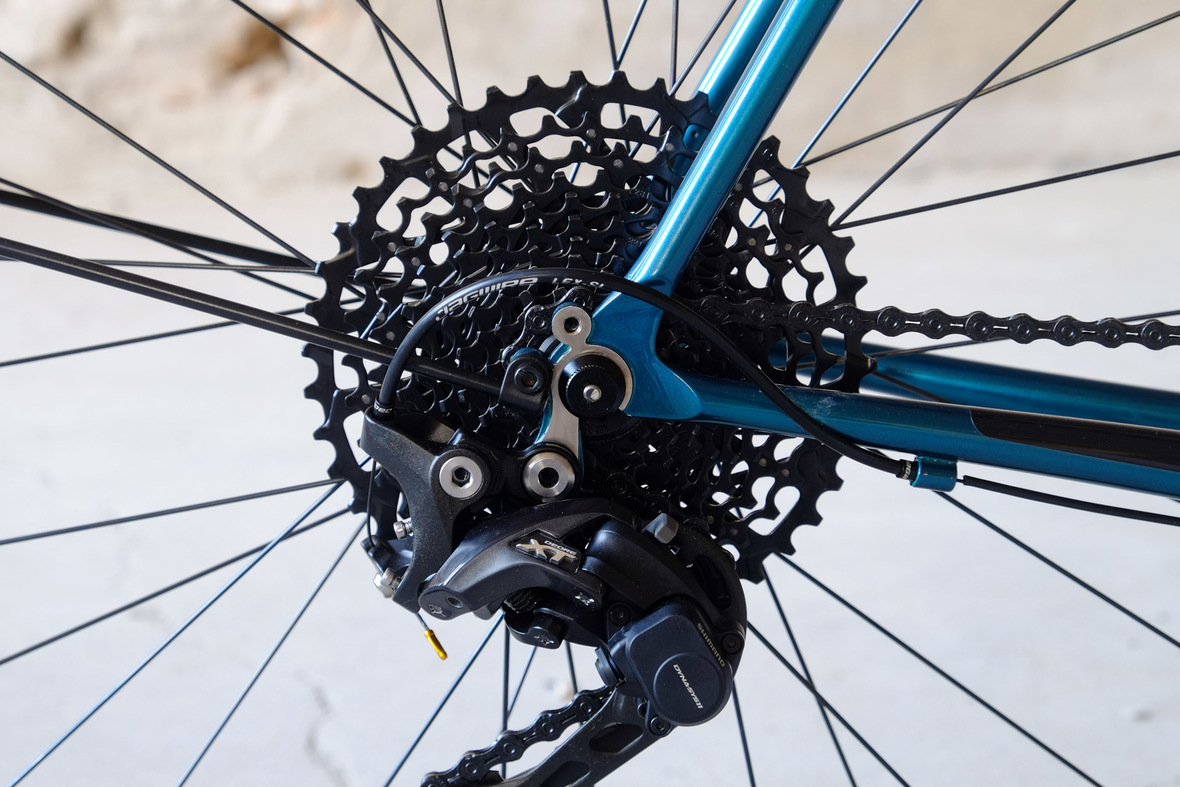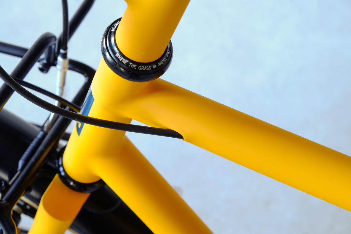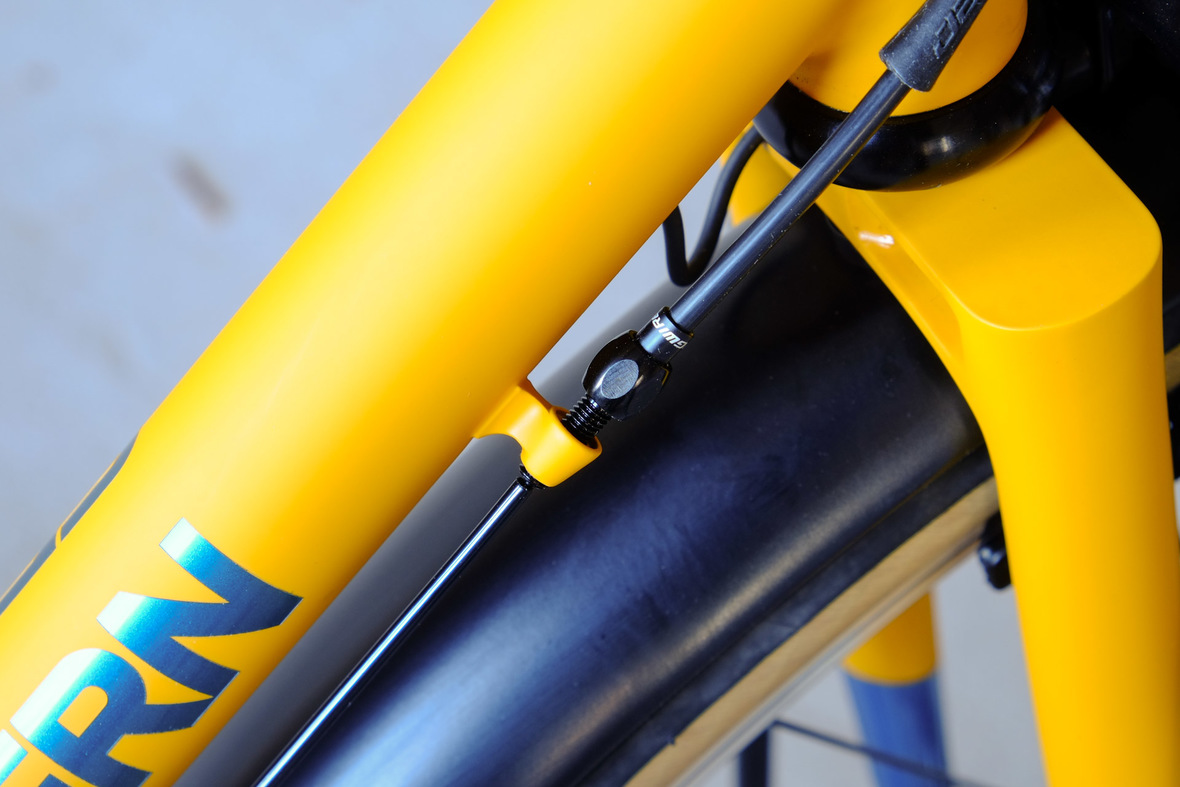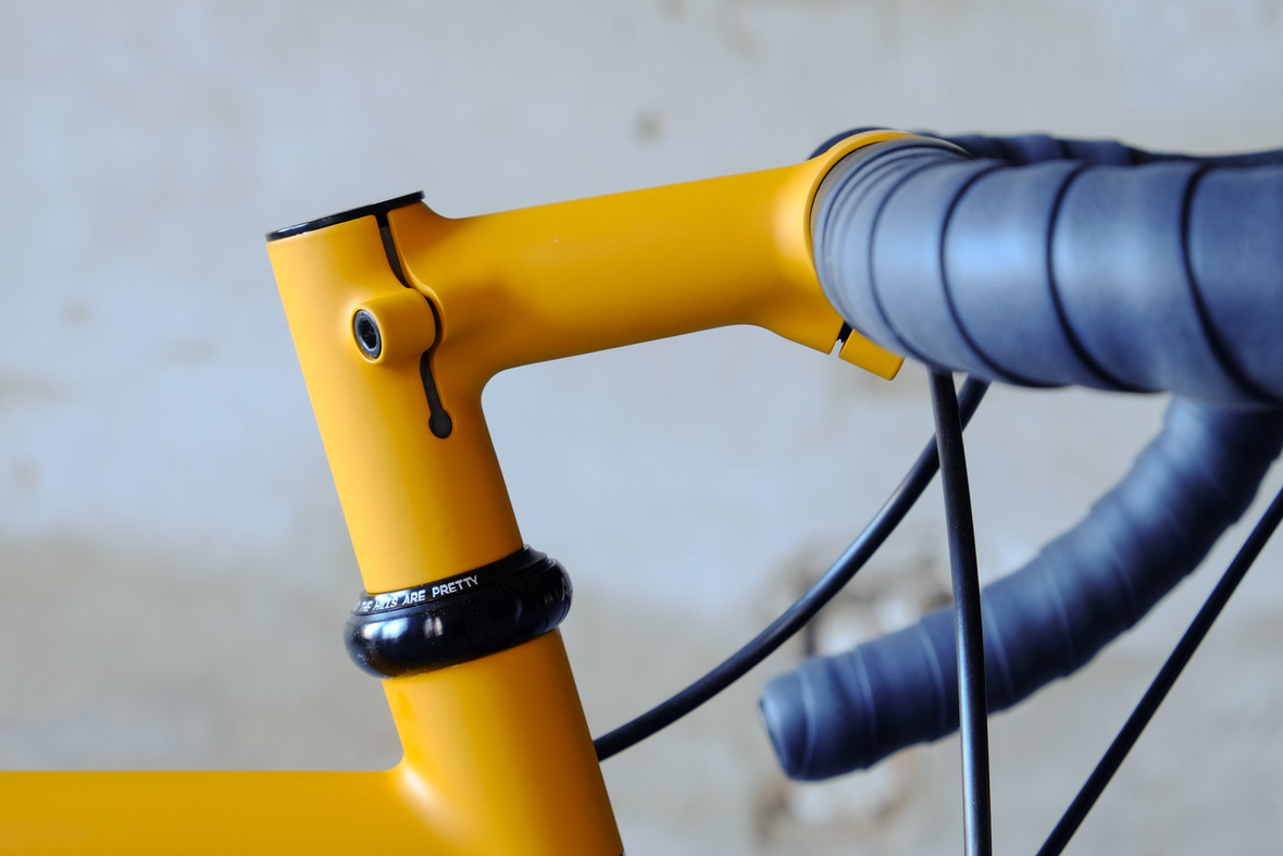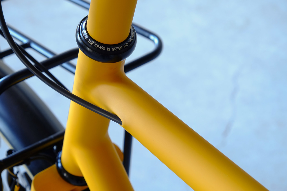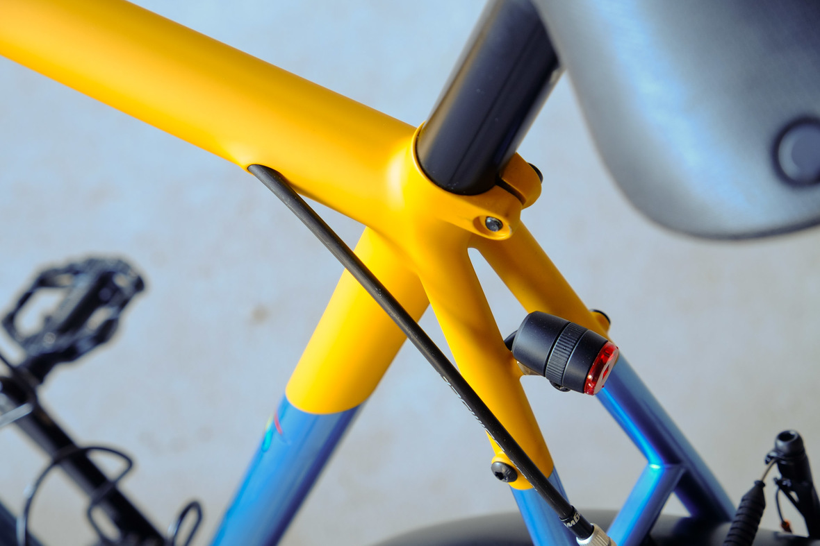 The brand new Chico+ is the newest addition to our line up of custom bikes, featuring a classic style randonneur geometry pimped up with the 650B 48mm Rene Herse Switchbackhill extralight tires, for maximum speed and absolutely superior comfort on any kind of terrain. No matter if you go for serious brevet riding on asphalt or for fun gravelriding off the road, you will always have the right bike for it. The bike is equipped with a Gevenalle powered 1x11 Shimano drivetrain turned by a Wolftooth chainring mounted to a vintage custom anodized Dura Ace 7400 crankset. Fenders made by our friends at Cycles Berthoud , super comfy contact points by Brooks and ESI. Lights and power supply by SON, Schmidt's Original Nabendynamo. Stems and racks are all made by Fern. Awesome matte/glossy paintsheme by our man Robert from Velociao .