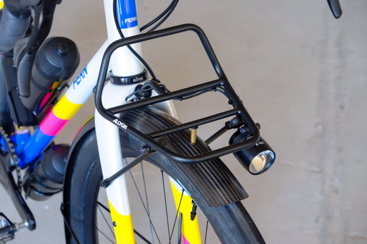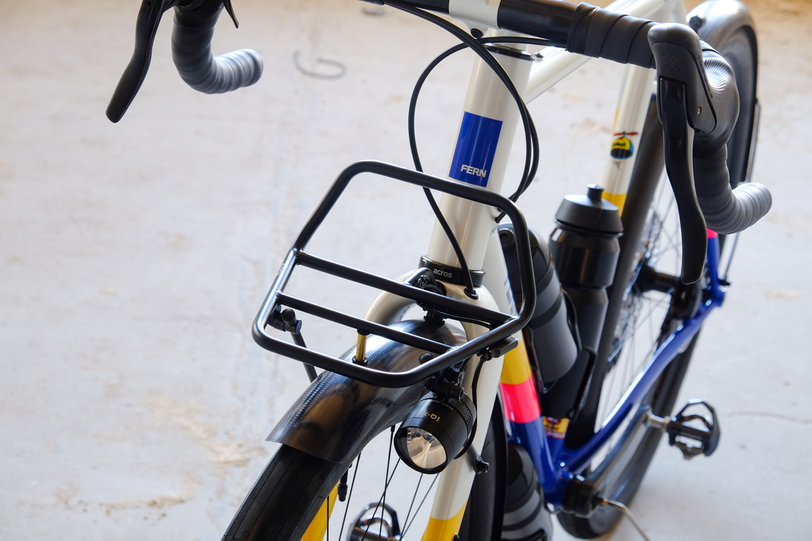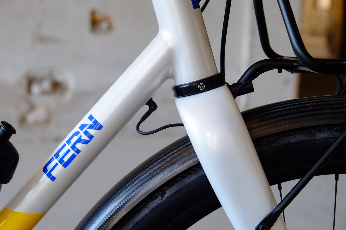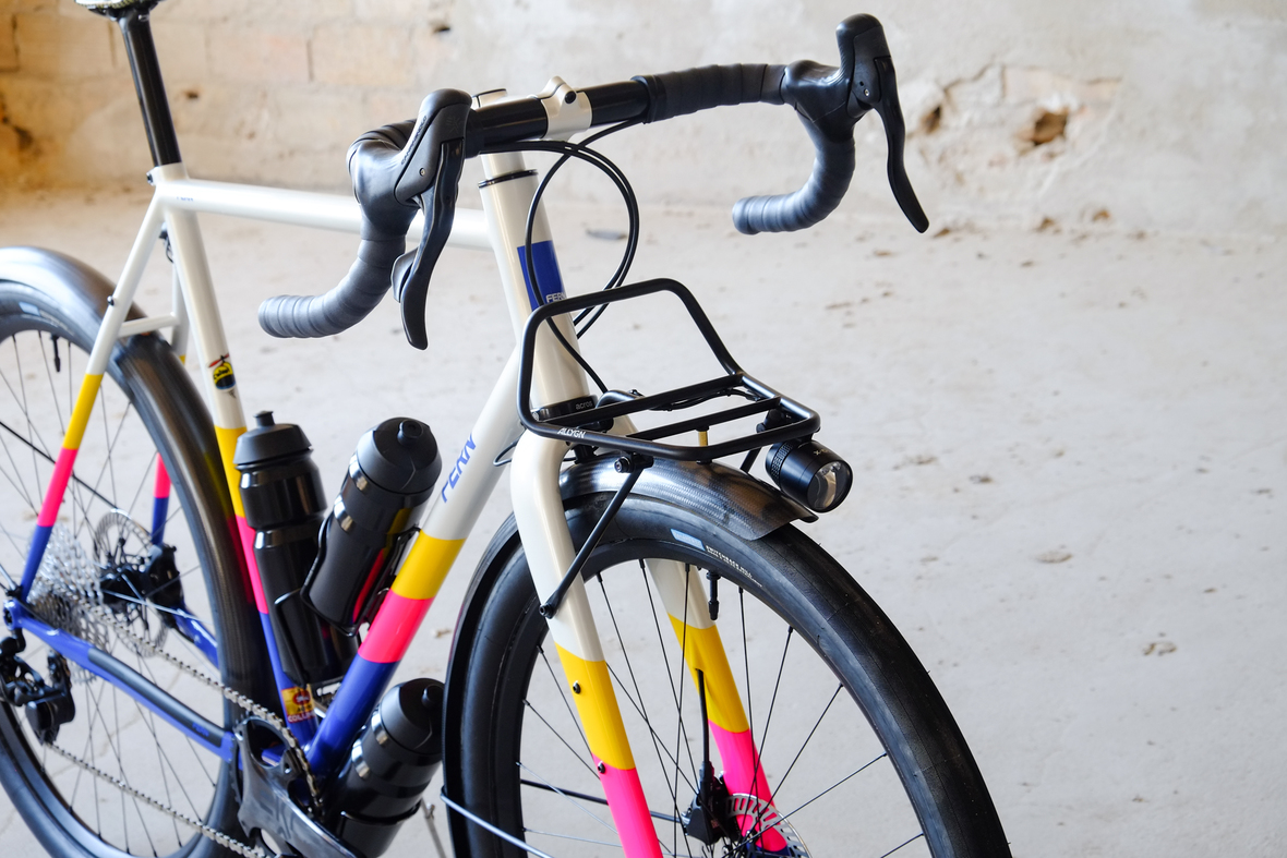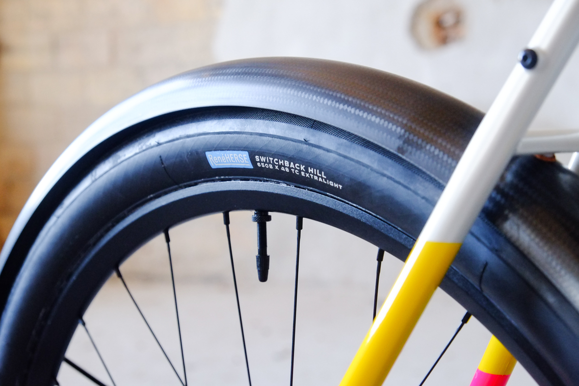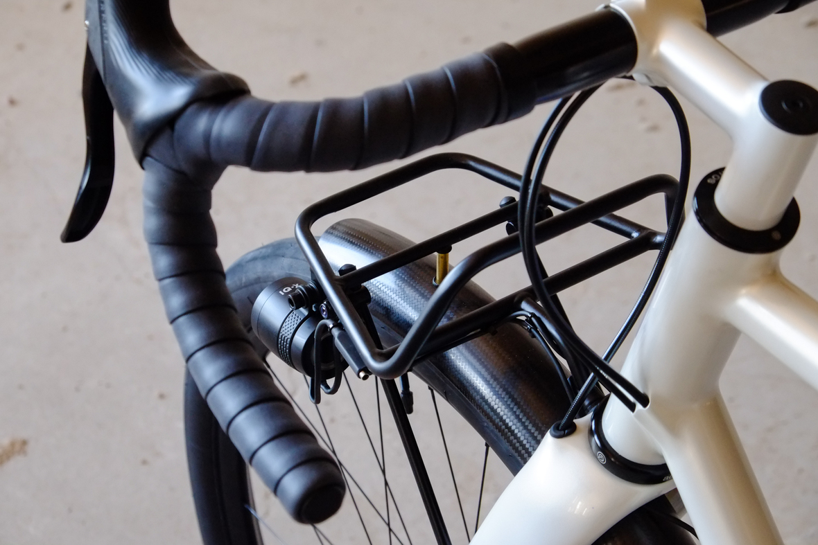 It was a little challenge to make all this work, a narrow chainline and q-factor with 650x48mm Rene Herse tires and the 60mm wide Veloduo Carbon Fenders, but in the end all came out very good, creating the perfect blend of modern bike technolgy mixed up with the best from the past, classic randonneur bicycles.