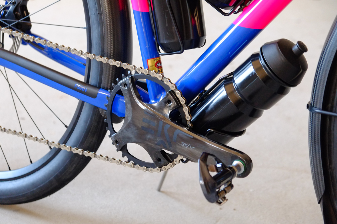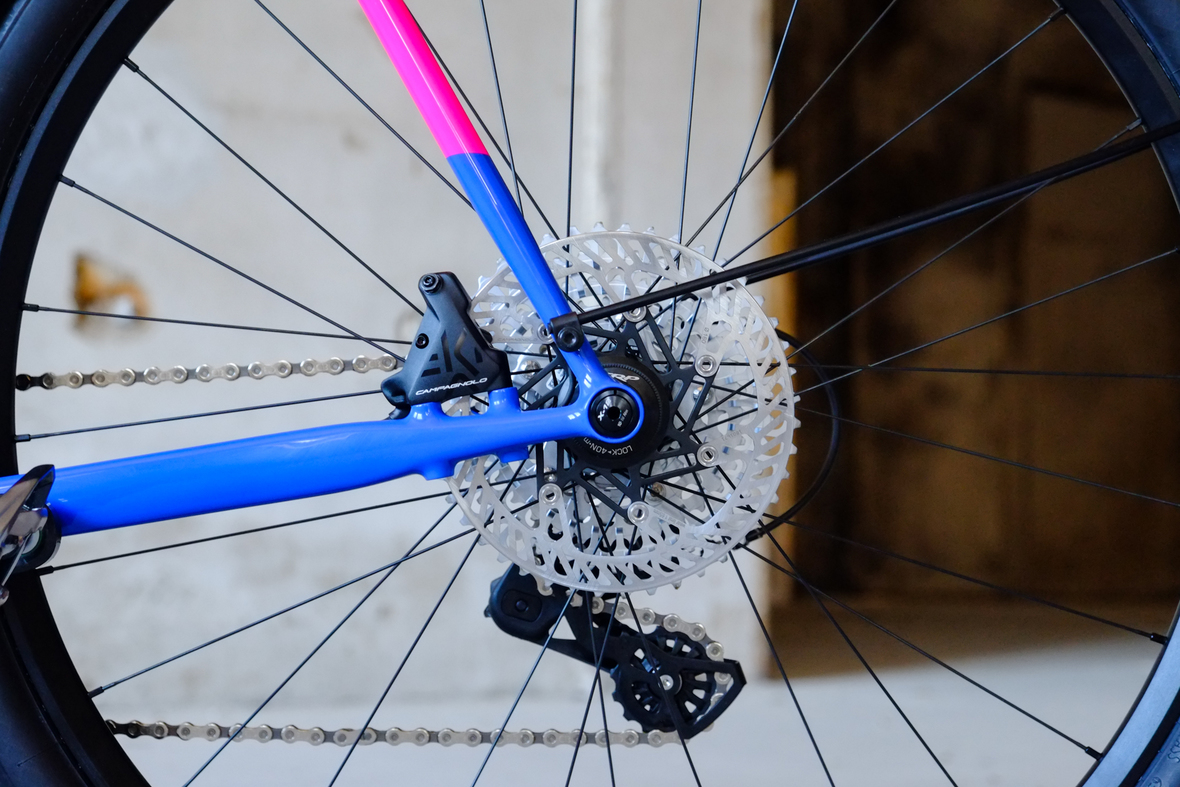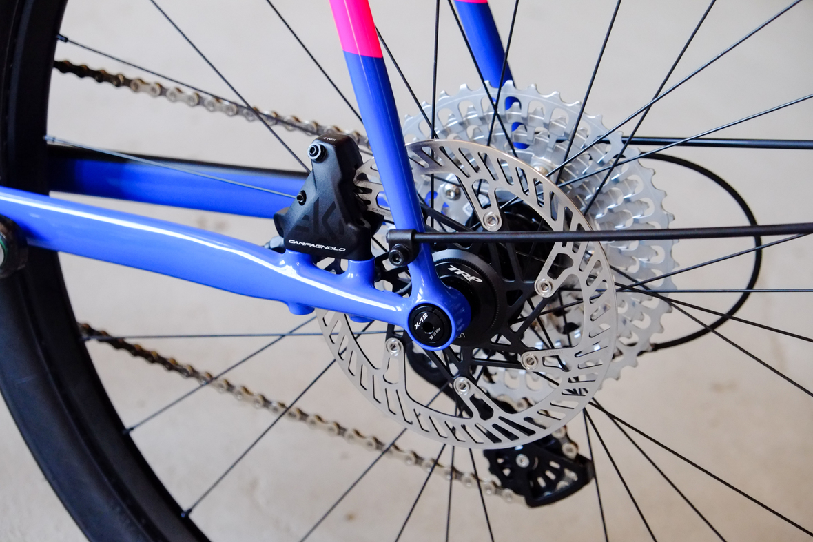 This bike ist the first allroad / modern rando bike we created with the fantastic 1 x 13sp Campagnolo Ekar Groupset. This is the perfect groupset, bringing together italien racing bike performance with modern offroad compatible gearing and excellent disc brakes.