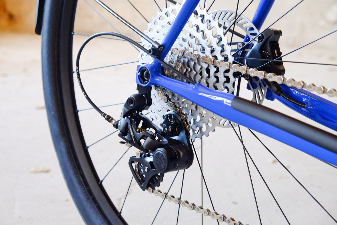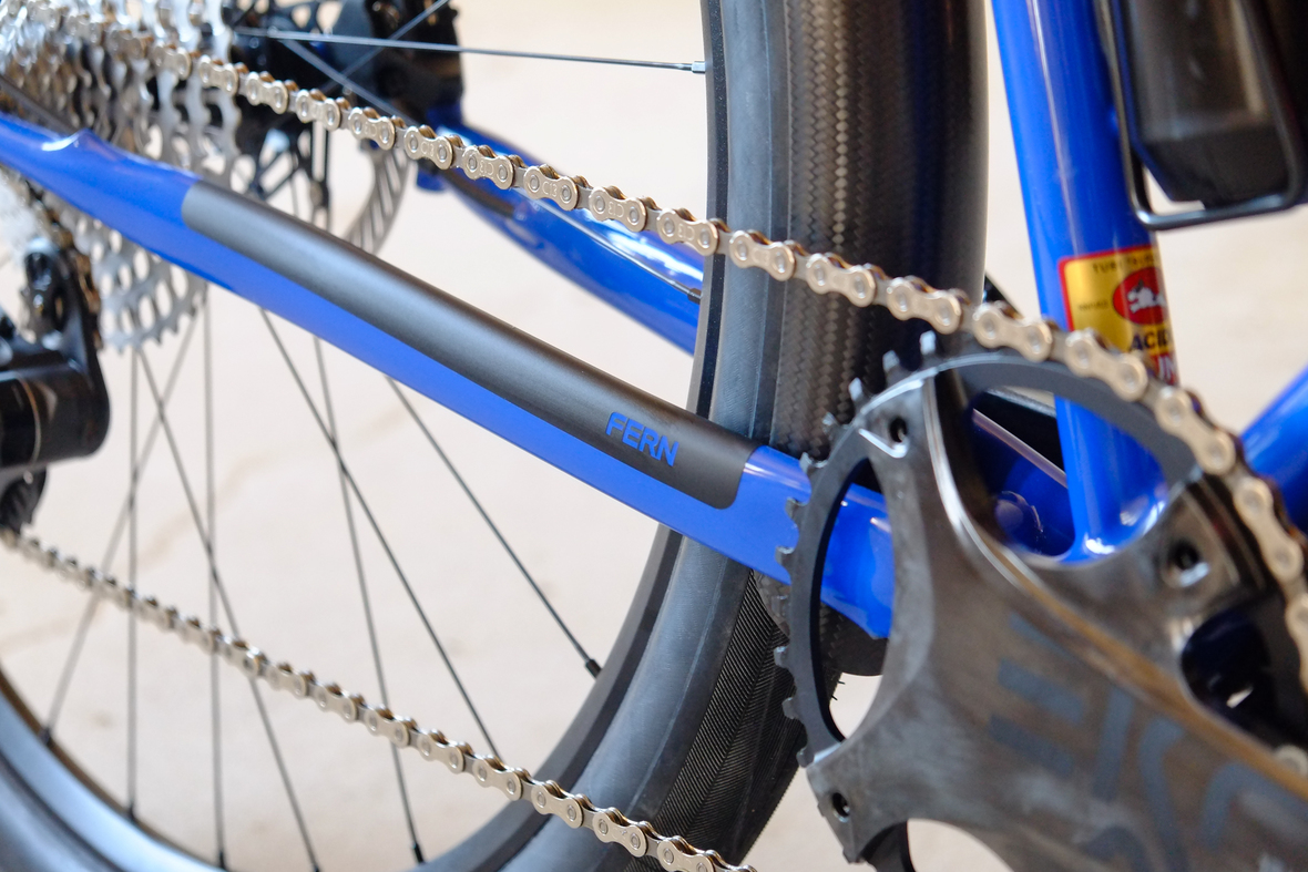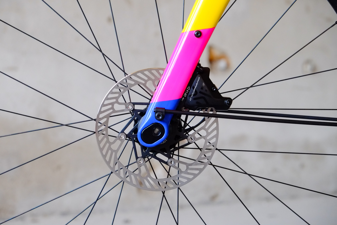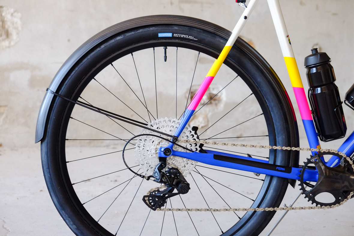 This bike ist the first allroad / modern rando bike we created with the fantastic 1 x 13sp Campagnolo Ekar Groupset. This is the perfect groupset, bringing together italien racing bike performance with modern offroad compatible gearing and excellent disc brakes.