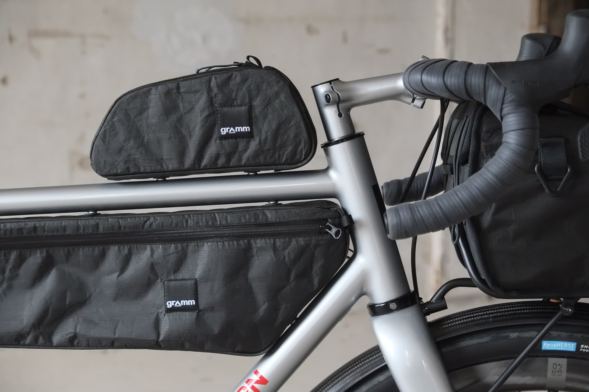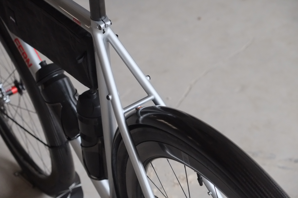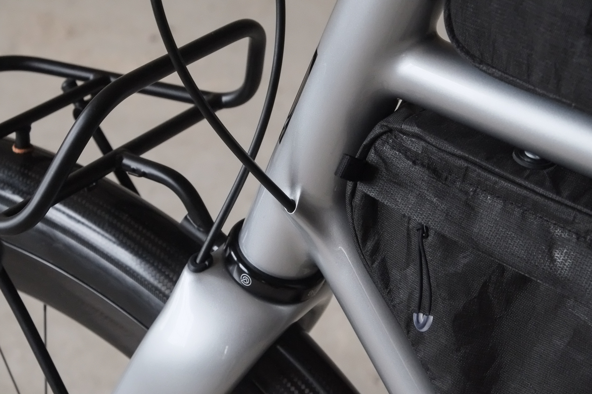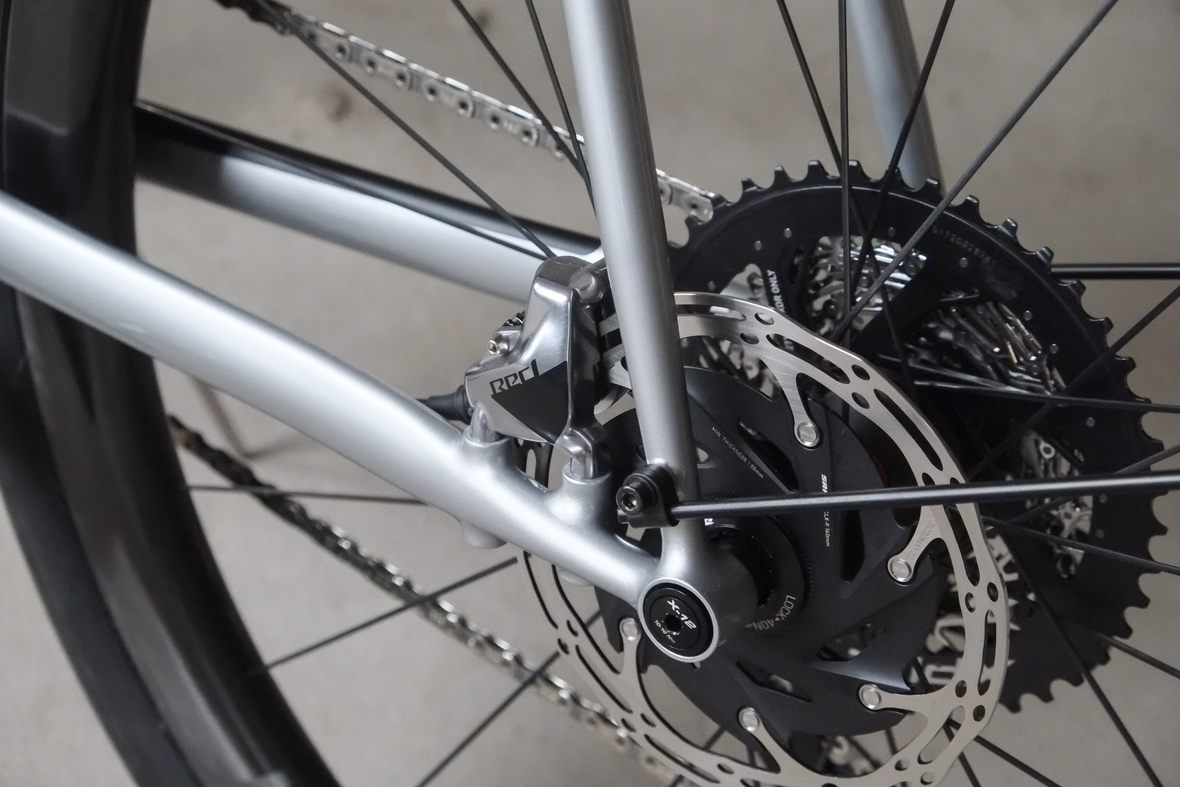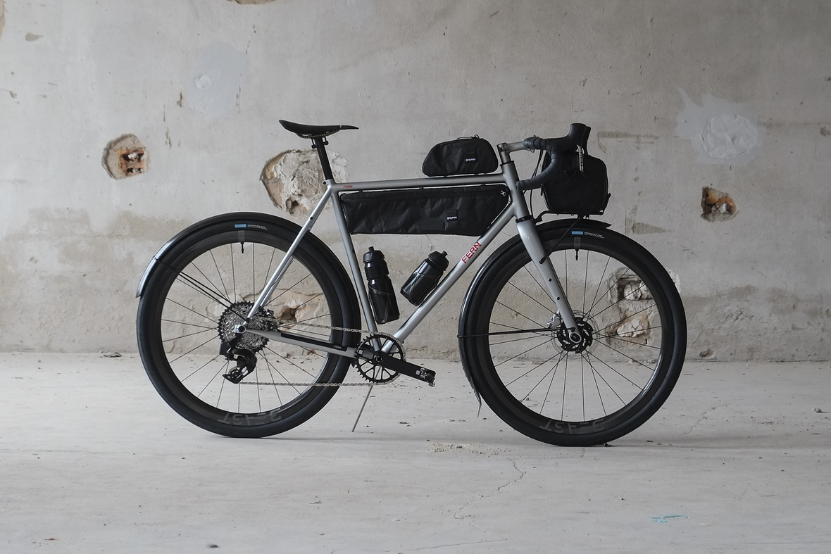 First of all, very fast!! The bike should also feature classic lines, but build up with super modern components. Lots of carbon parts, electronic shifting, high end CNC machined engine/drive train parts and as the icing on the cake custom made Gramm Tourpacking bags which are color matching the interior of that car. Robert @Velociao.com did a great job with recreating the original silver Porsche color paint job!