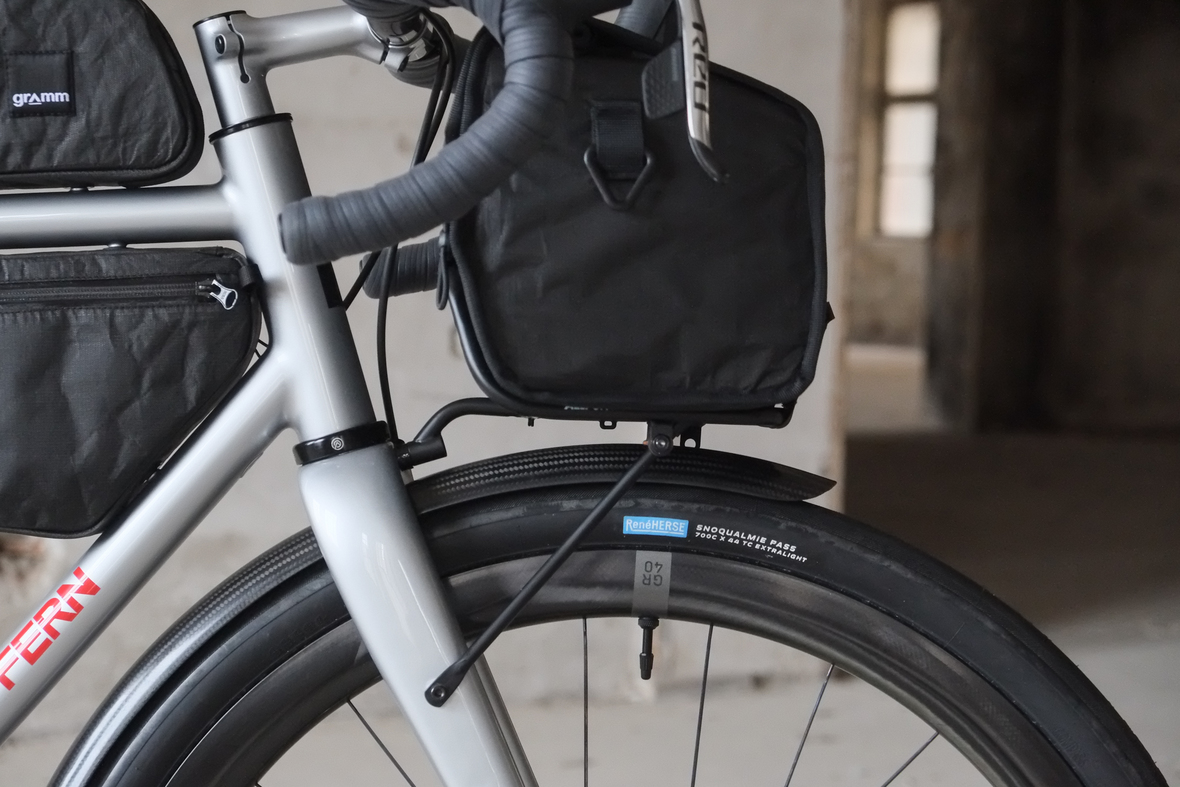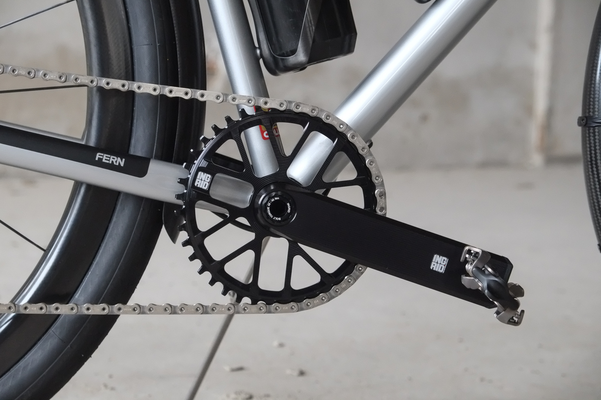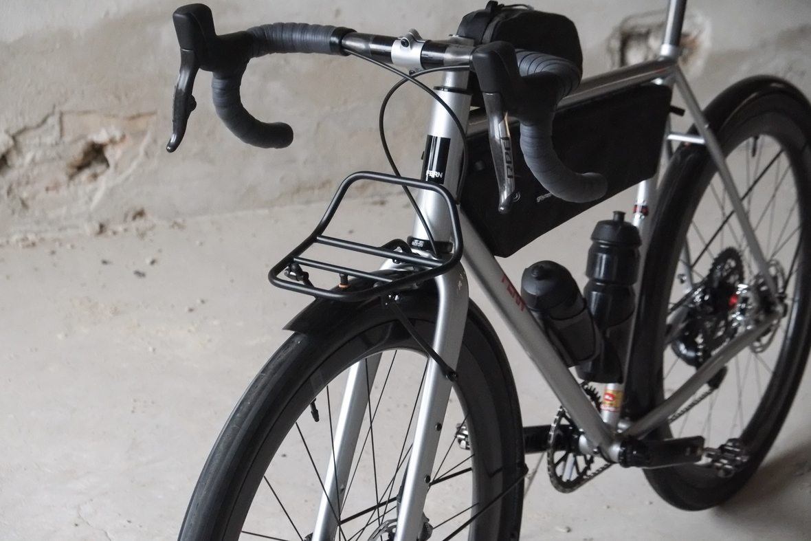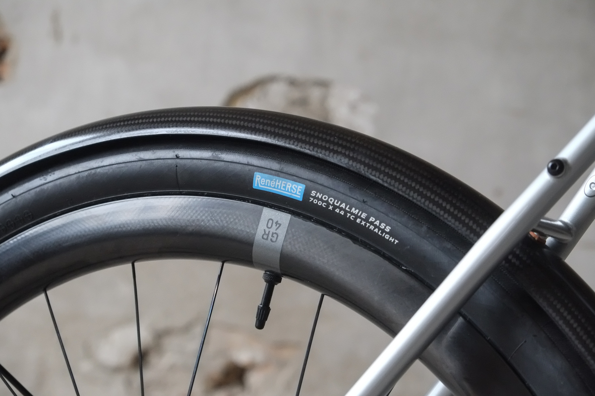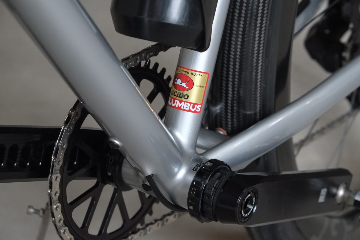 First of all, very fast!! The bike should also feature classic lines, but build up with super modern components. Lots of carbon parts, electronic shifting, high end CNC machined engine/drive train parts and as the icing on the cake custom made Gramm Tourpacking bags which are color matching the interior of that car. Robert @Velociao.com did a great job with recreating the original silver Porsche color paint job!