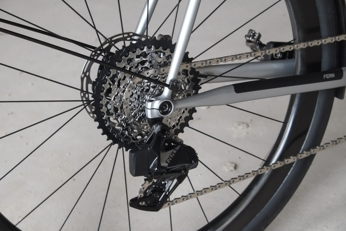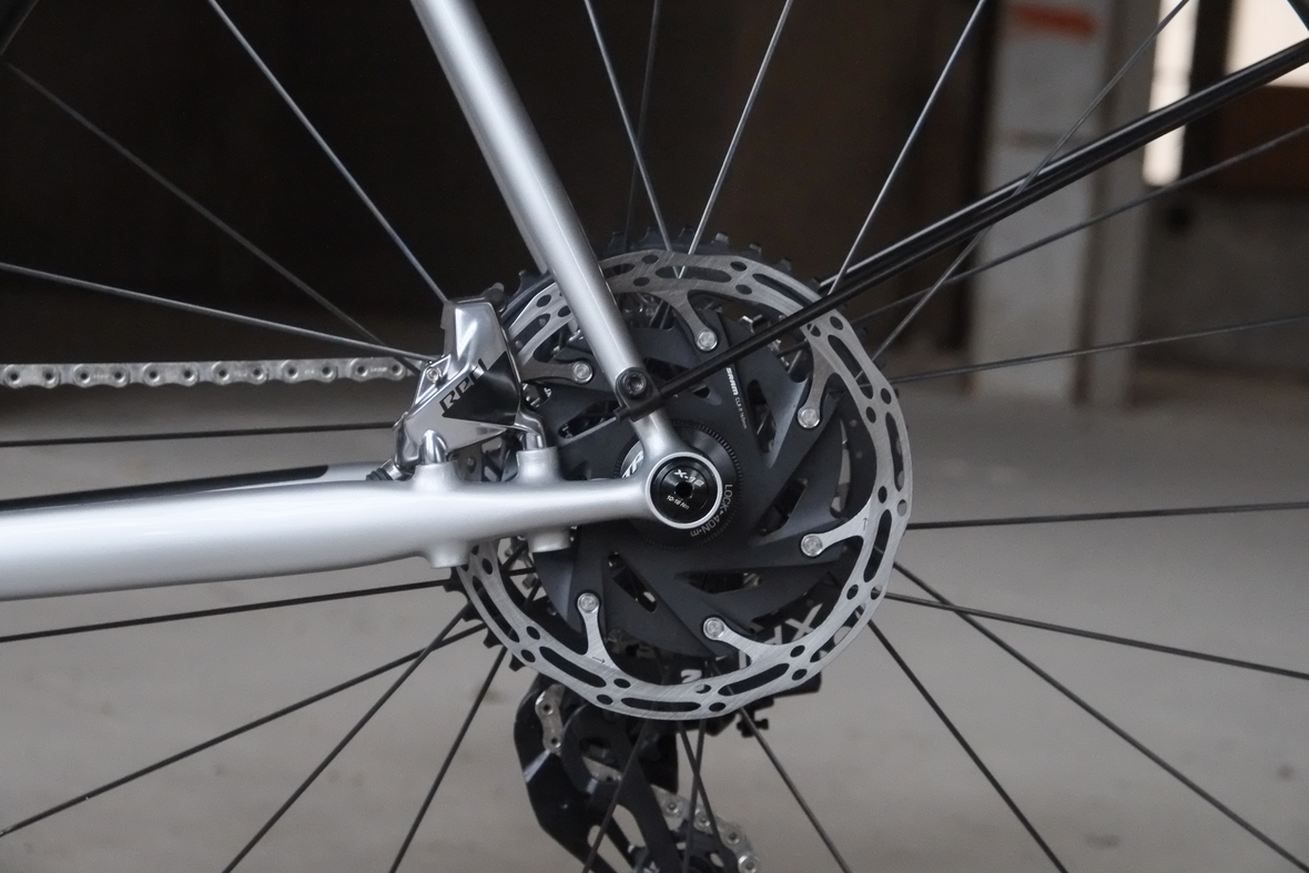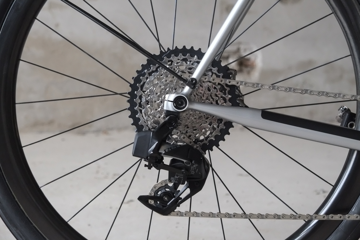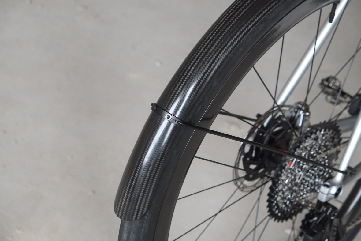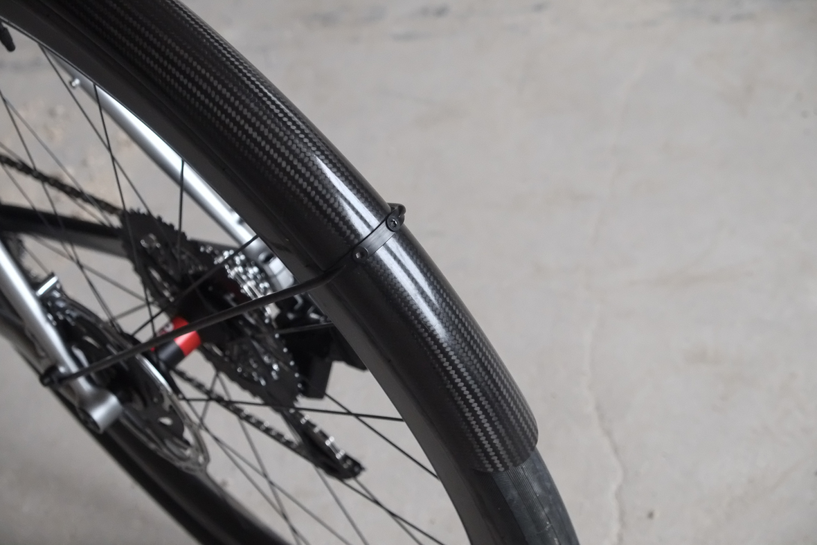 First of all, very fast!! The bike should also feature classic lines, but build up with super modern components. Lots of carbon parts, electronic shifting, high end CNC machined engine/drive train parts and as the icing on the cake custom made Gramm Tourpacking bags which are color matching the interior of that car. Robert @Velociao.com did a great job with recreating the original silver Porsche color paint job!