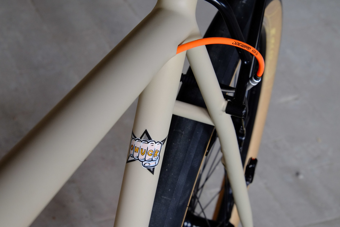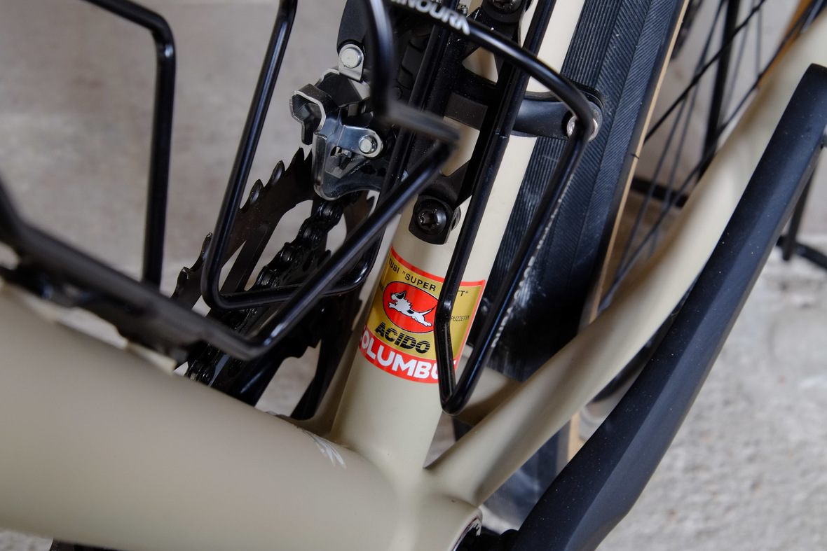 This is a really big Chuck custom made for Thomas. Features the classic 1x11 setup with Gevenalle shifters and nice selection of custom made racks. Special columbus "Acido" tubing ;)