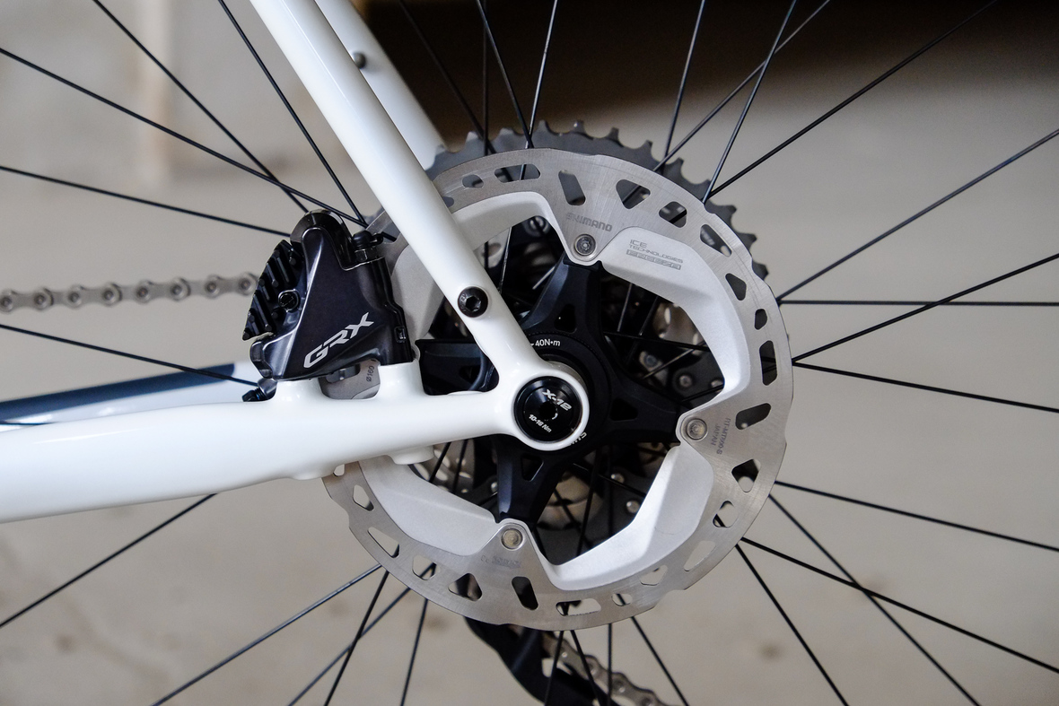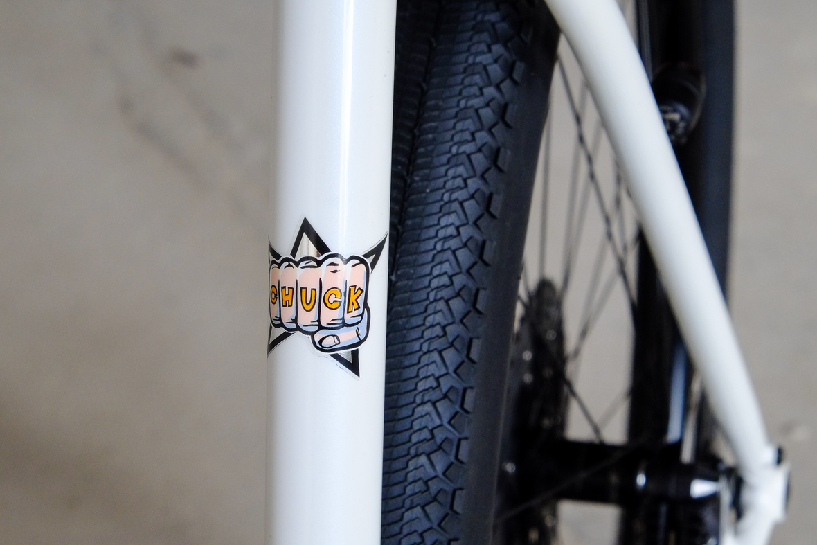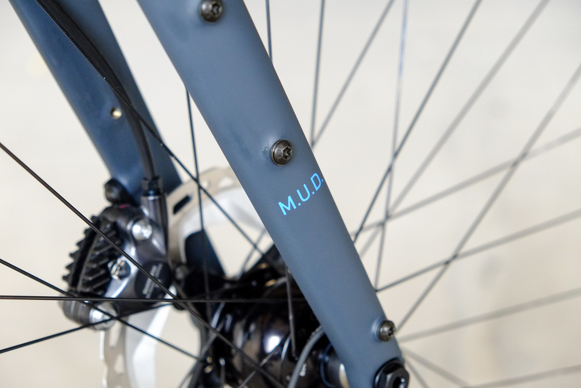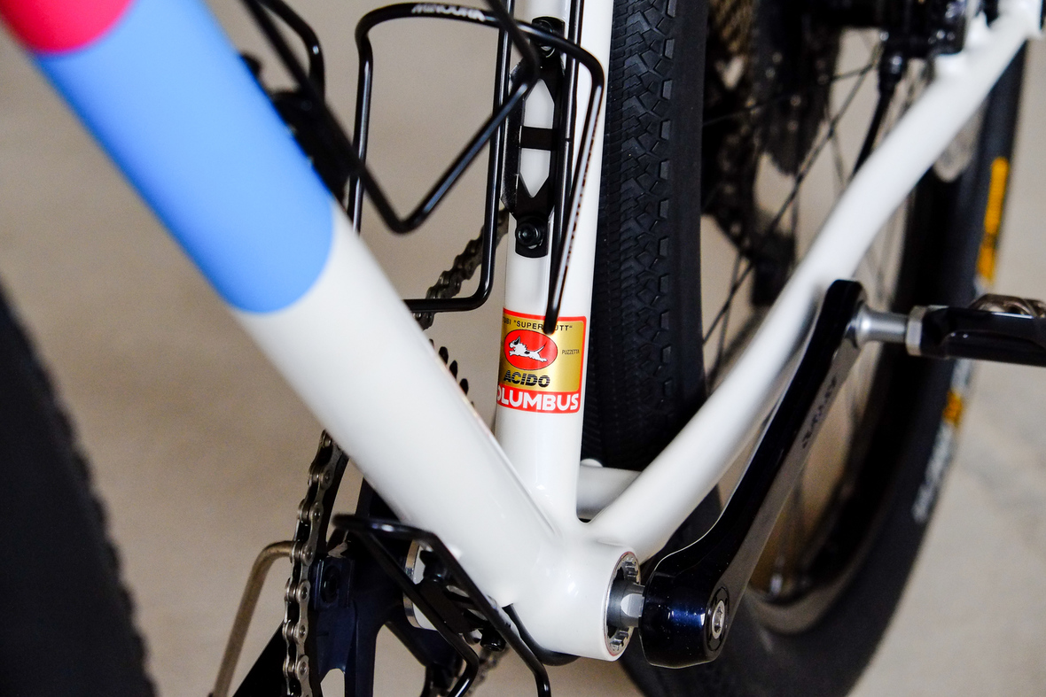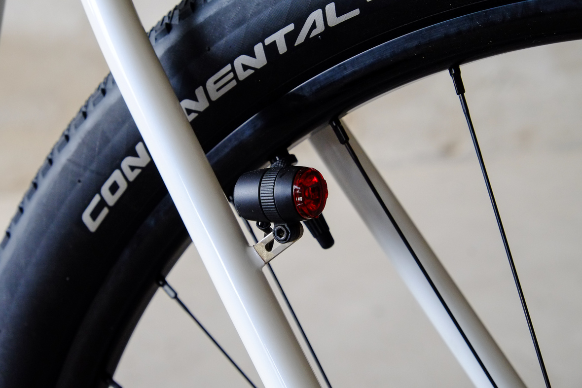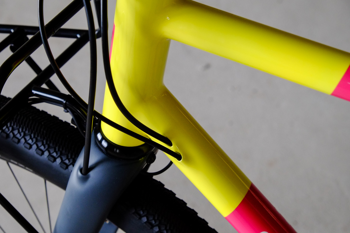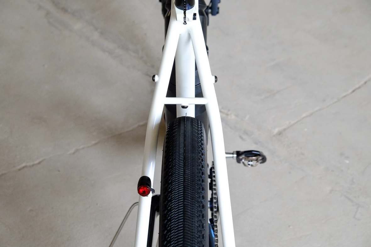 The bike is equipped with the new Shimano GRX 1x11 group, superlight post and seat by Tune, power supply by SON. Running super smooth on 650B 55mm Conti Speedkings mounted on superlight Stan's Crest rims, this beast goes really fast!