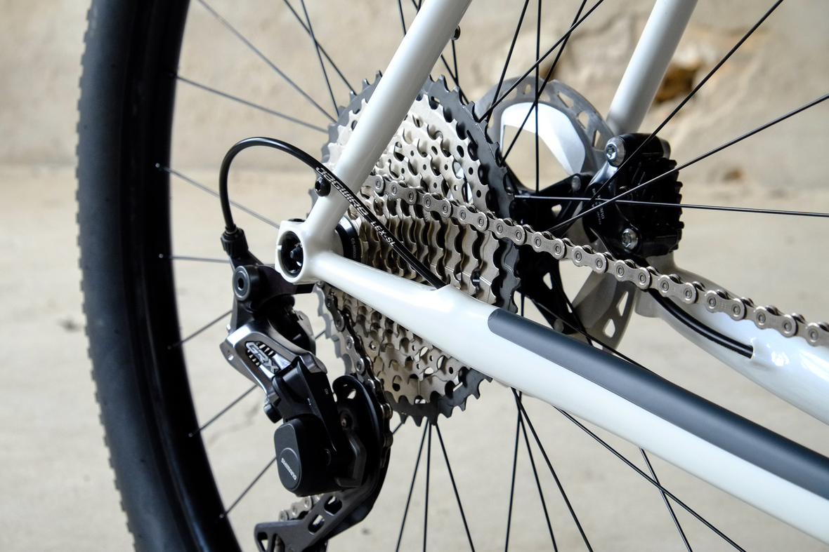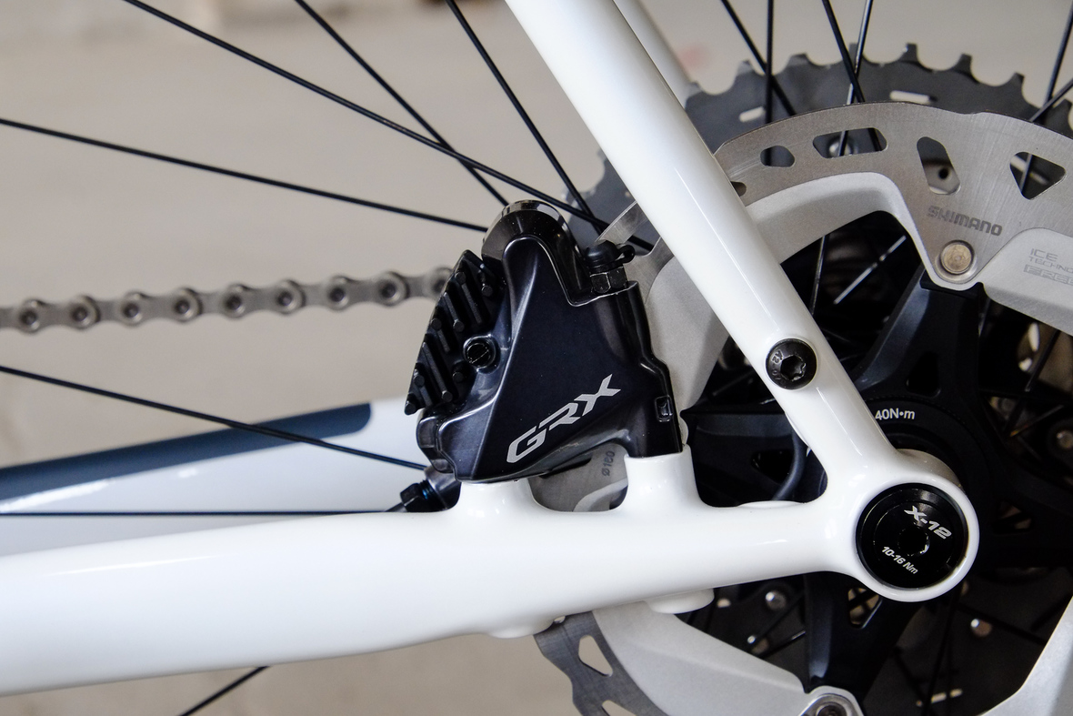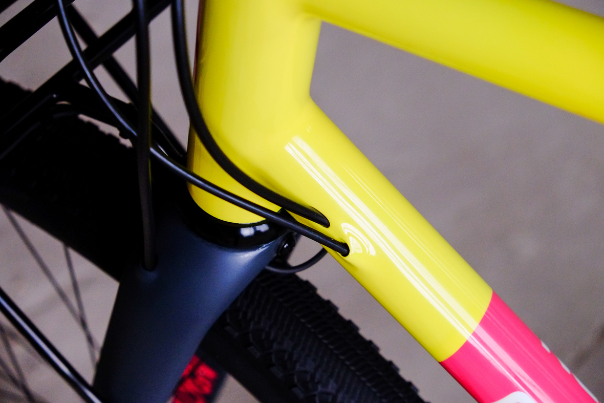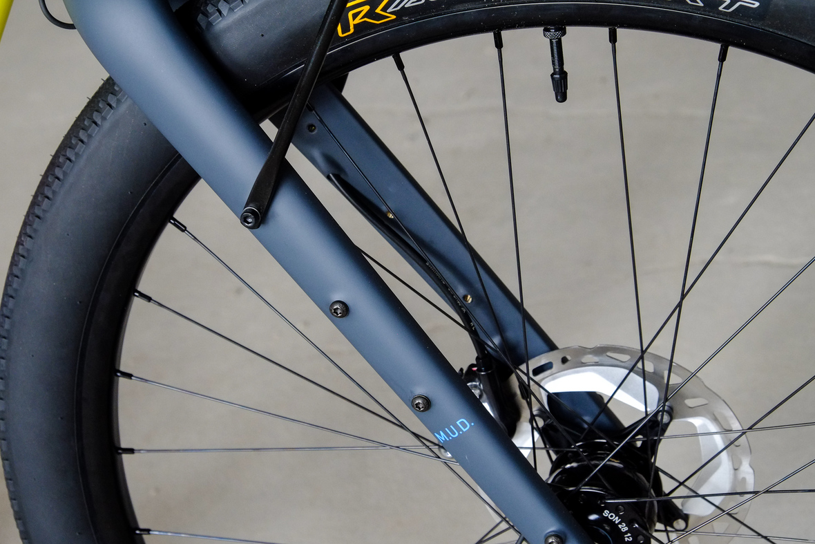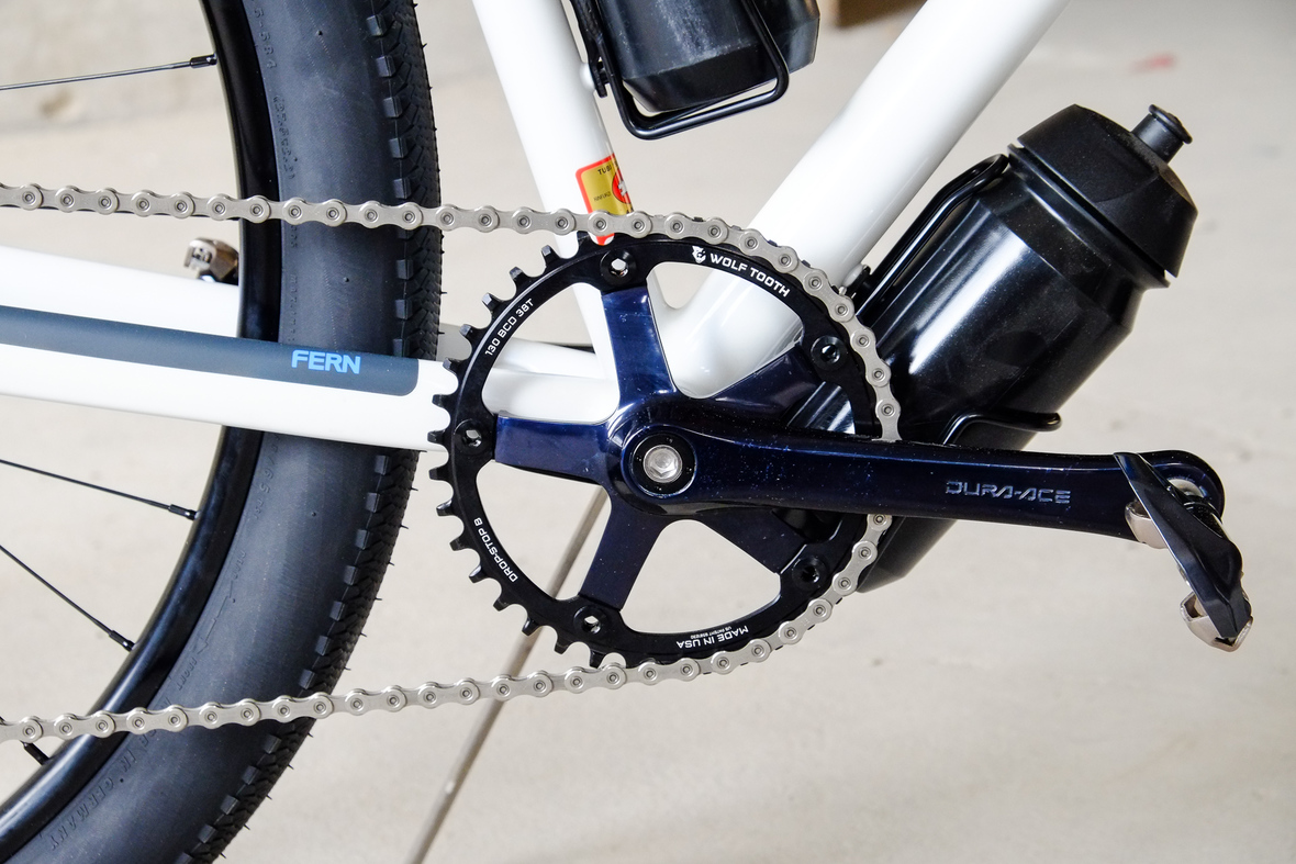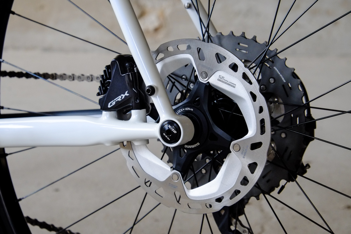 The bike is equipped with the new Shimano GRX 1x11 group, superlight post and seat by Tune, power supply by SON. Running super smooth on 650B 55mm Conti Speedkings mounted on superlight Stan's Crest rims, this beast goes really fast!