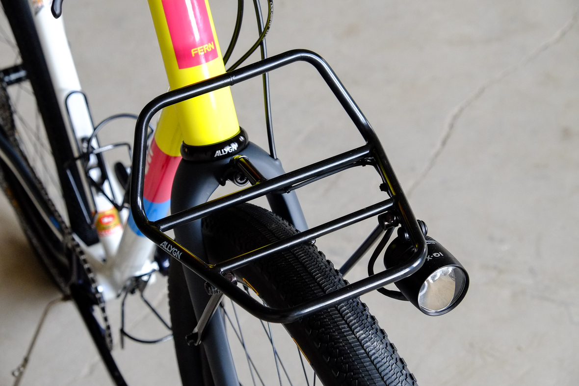 This funtastic machine goes out to my man Johannes! Jo came a couple of years ago as one of our very first customers and became a good friend and part of the Fern & Gramm family. This joyful tool is the perfect counterpart to his more classic Fern randonneur bike and will open up new oportunities for really serious offroad riding off the grid. Razorblade sharp handling with our sisterbrands Allygn M.U.D. fork, we designed and engineered ourselfes here at the Fern workshop. Allygn headset and our brandnew Allygn diamond front rack will be available soon! Check out Allygn.de for more infos!