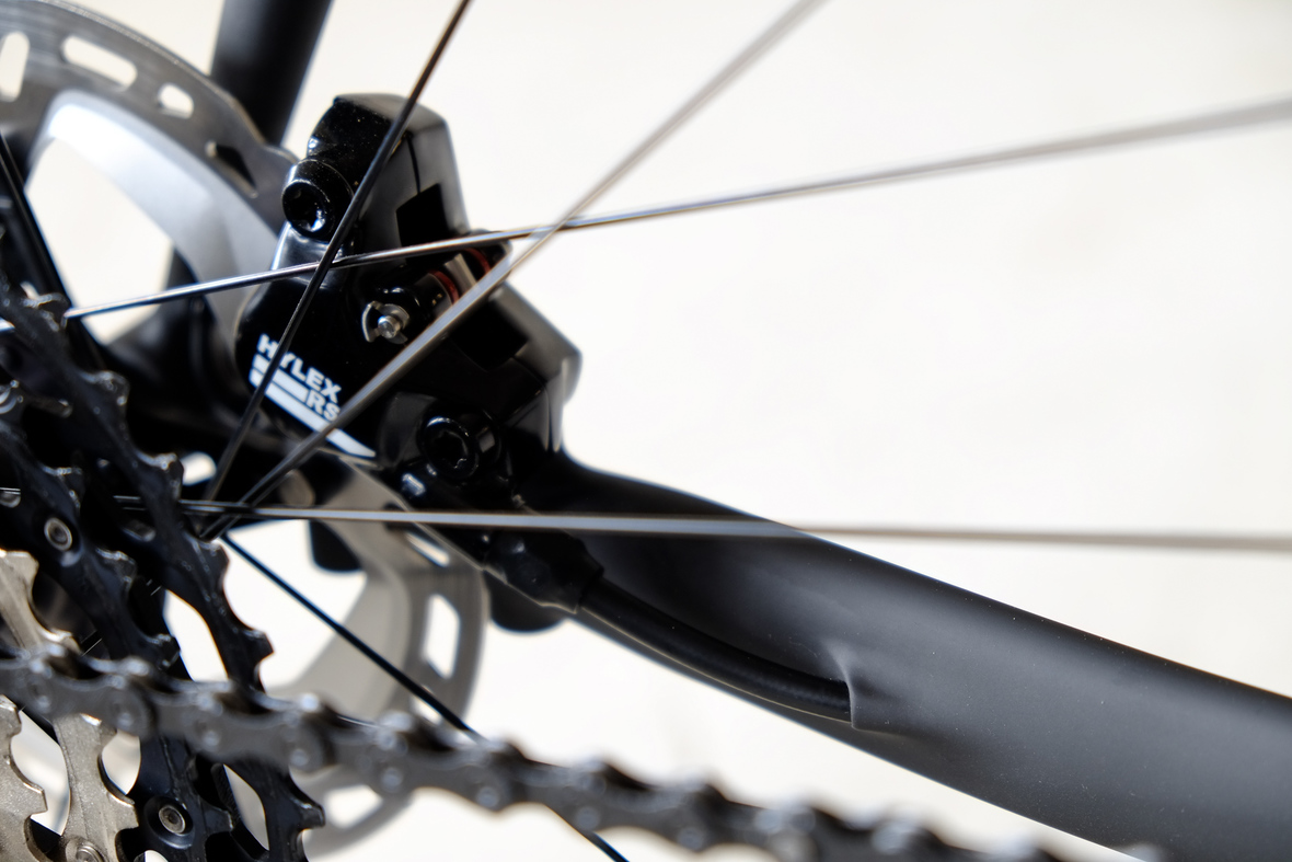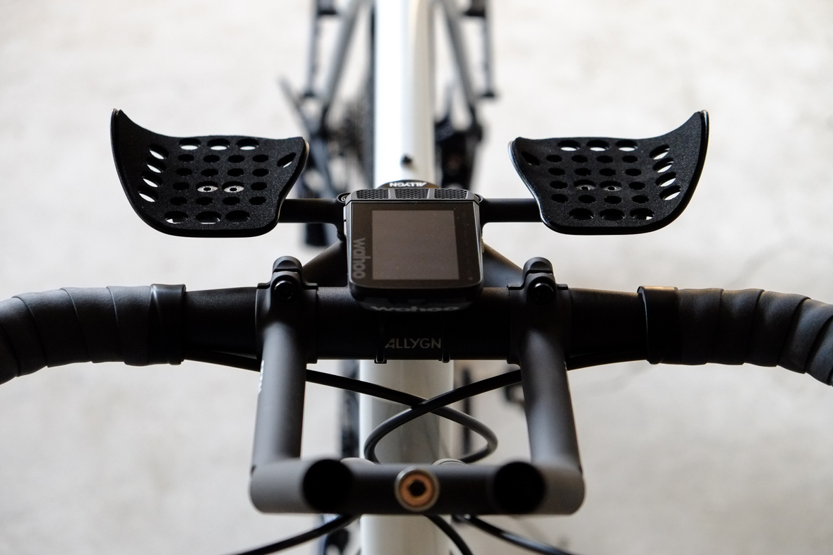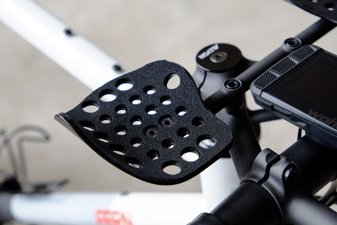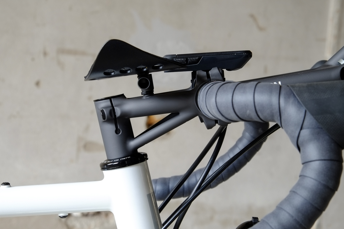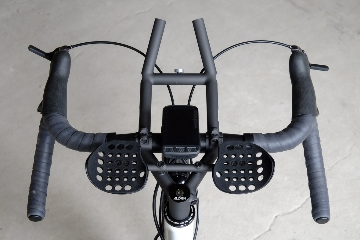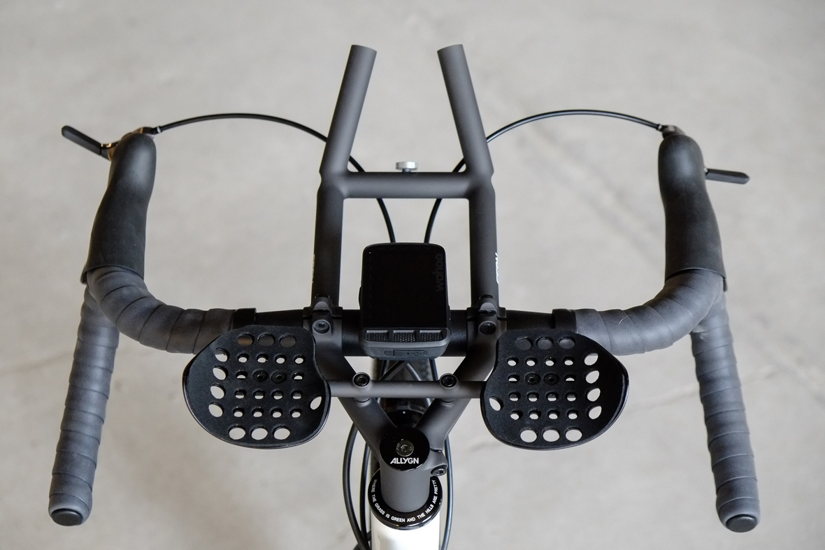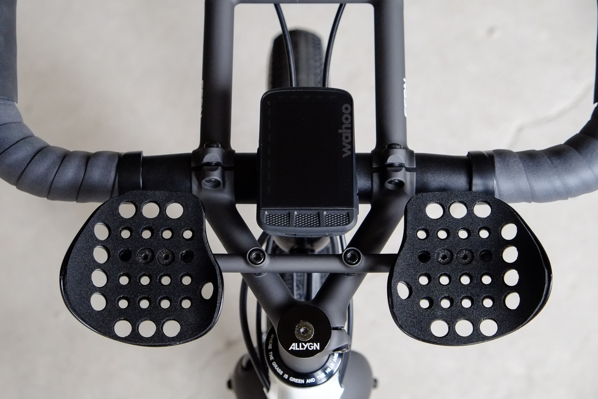 Probably the most exciting feature on this bicycle is the fully adaptable driver orientatet cockpit which features a Stem-Aerobar-Combo which is also fully removable for normal offroad riding. The Aerobar has an inegrated magnetic waterhose holder which is attached to a hydra pack inside the framebag. The Slinghot stem design allows you to position your GPS device in the perfect center handlebar position. Aerobar crossbar allows to mount additional devices such as the amazing K-Lite Bikepacker headlights for example.
