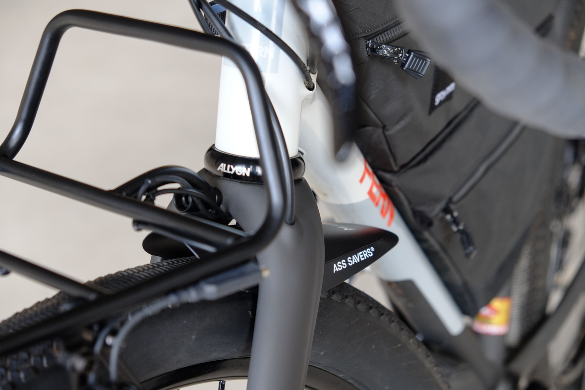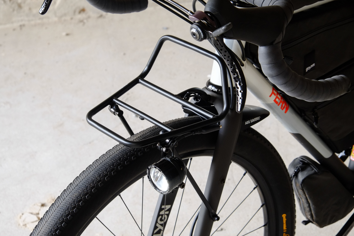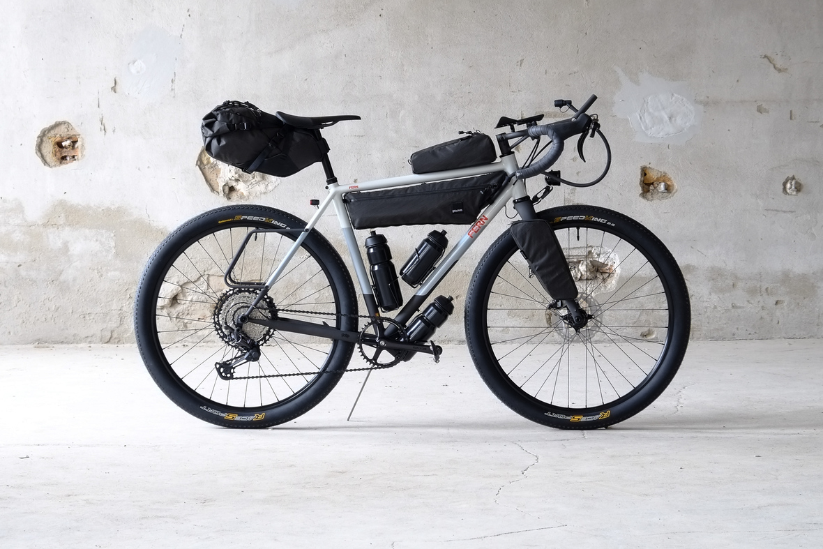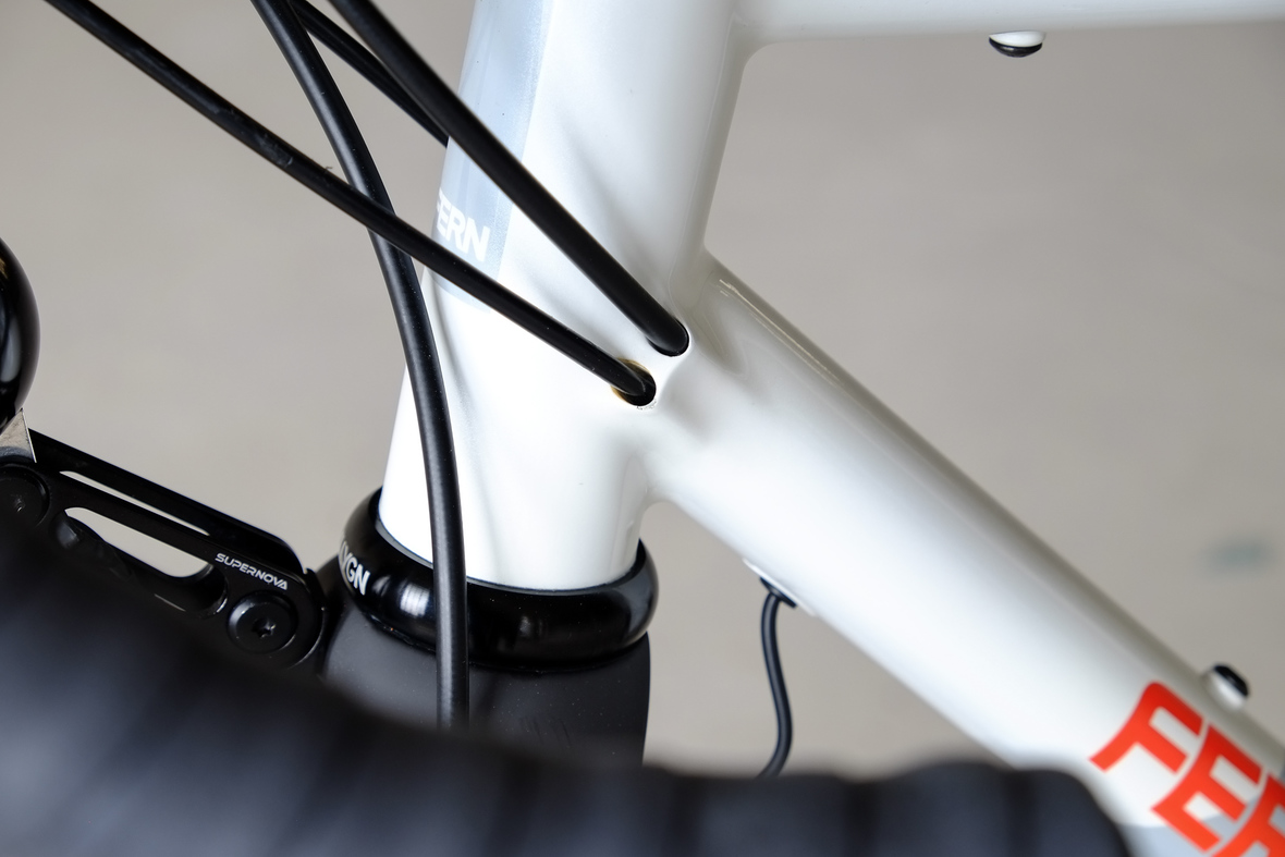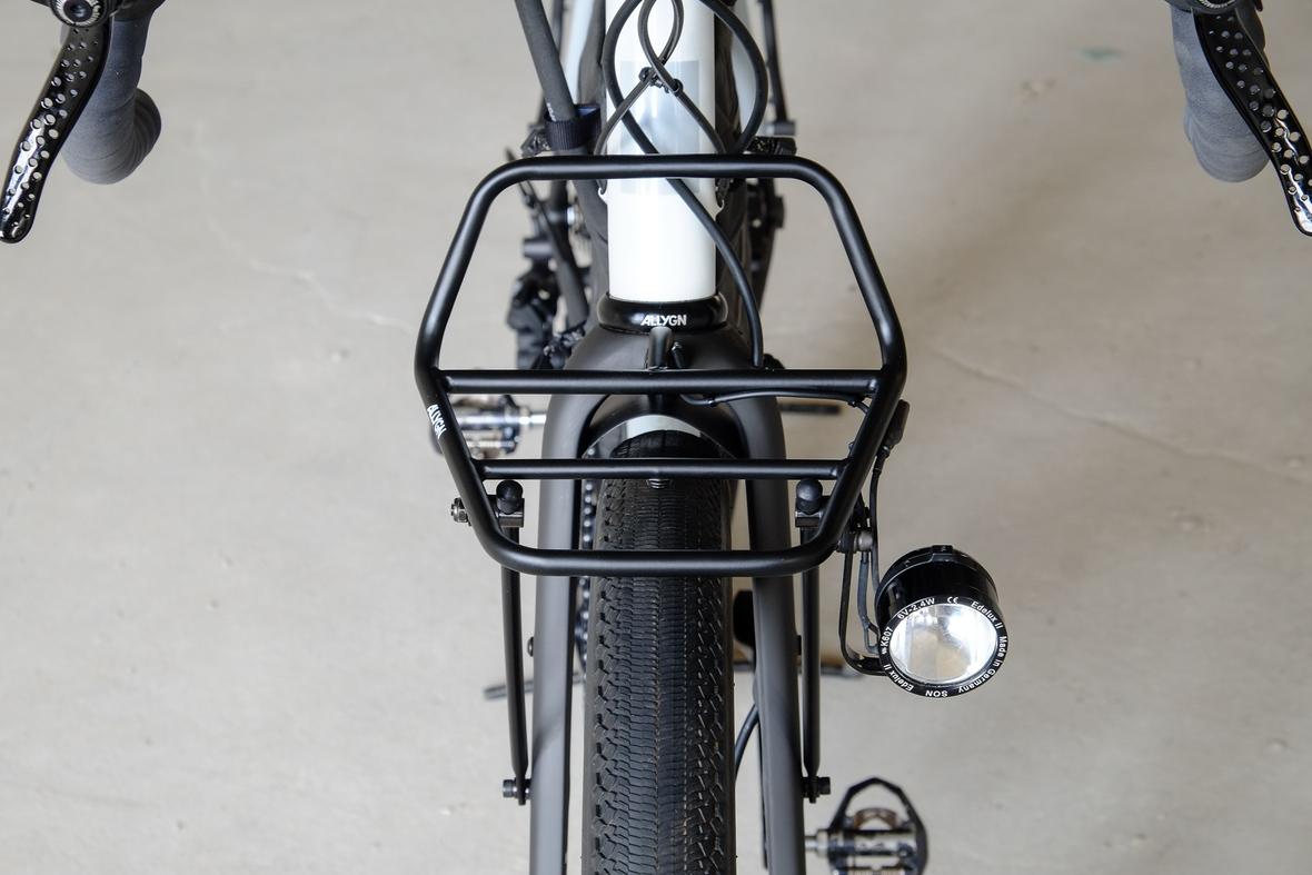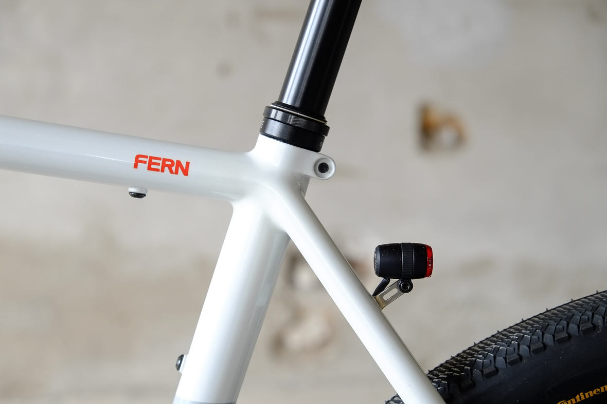 This bike features a fillet brazed frame made only from the finest ultra thin walled Columbus tubing, full internal cable routing and Fern's own 160mm direct flatmout standard. The bike is equipped with our brand new framebuilder owned component company ALLYGN Diamond frontrack, which will be availble in a limited edition bundle including a Gramm Tourpacking strap and a cust om Allygn X Ass Savers Mudder Mini front fender now! Check out ALLYGN for more infos!