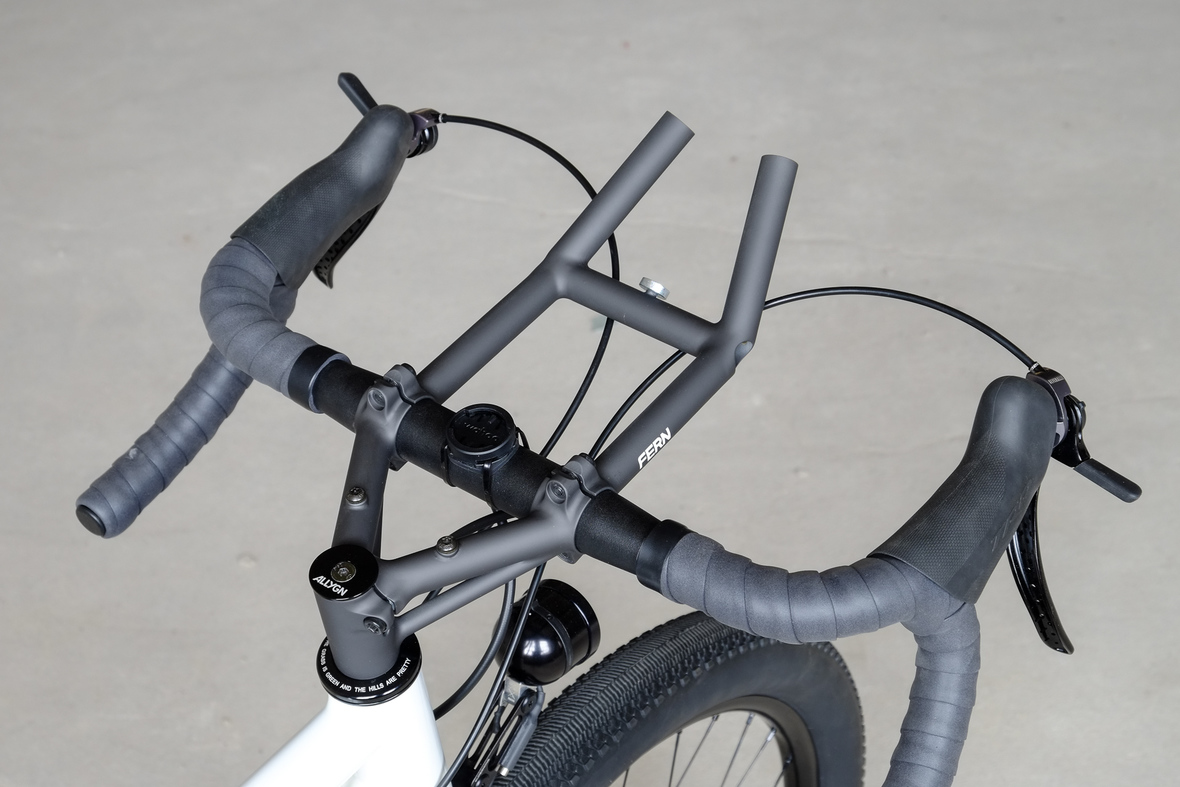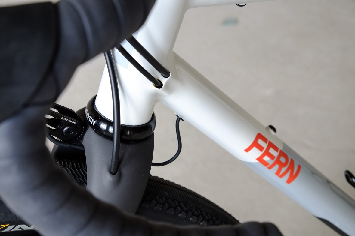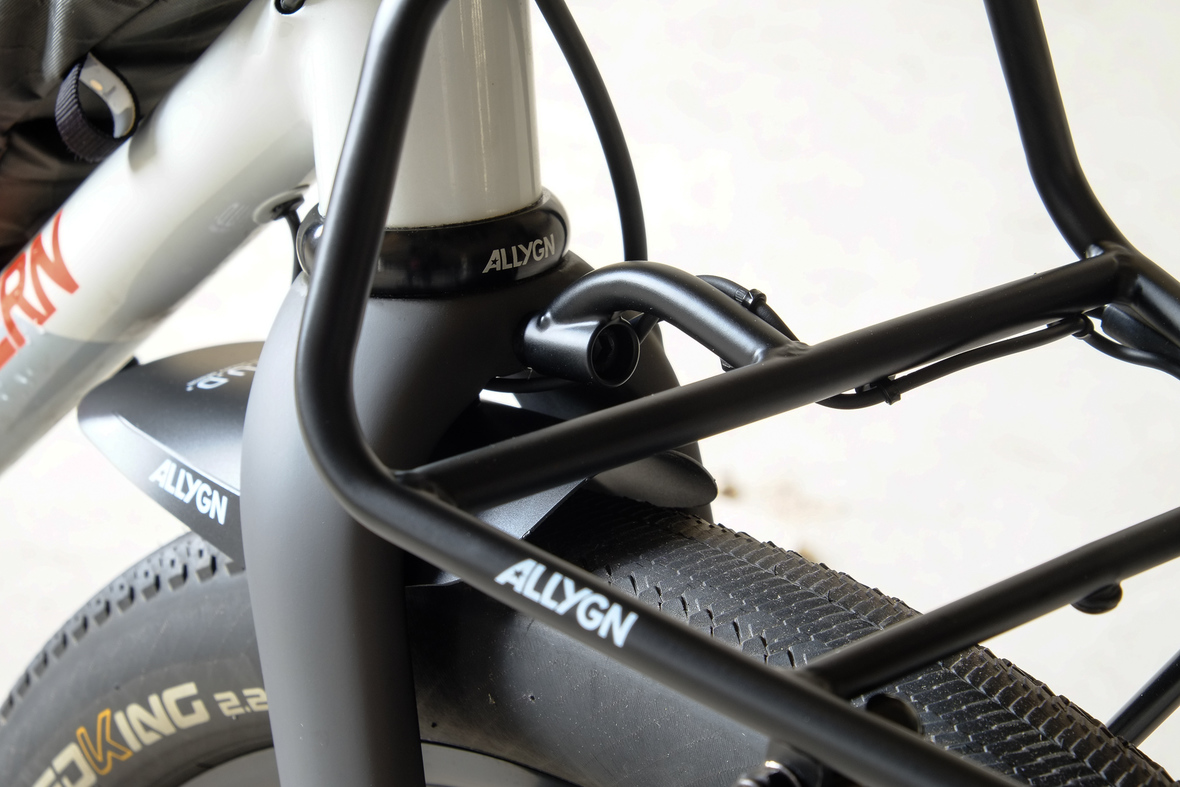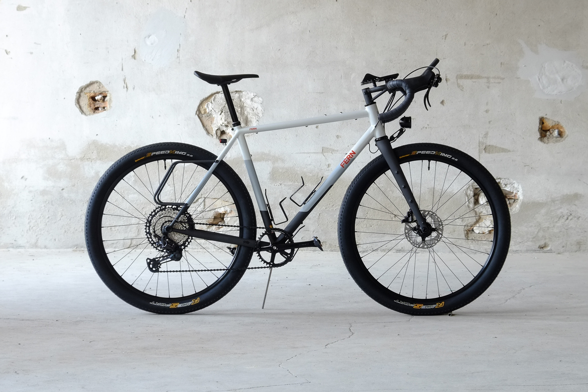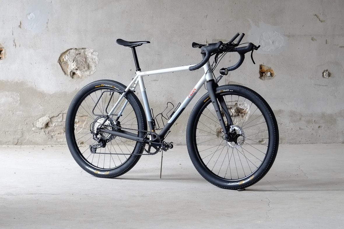 This bike features a fillet brazed frame made only from the finest ultra thin walled Columbus tubing, full internal cable routing and Fern's own 160mm direct flatmout standard. The bike is equipped with our brand new framebuilder owned component company ALLYGN Diamond frontrack, which will be availble in a limited edition bundle including a Gramm Tourpacking strap and a cust om Allygn X Ass Savers Mudder Mini front fender now! Check out ALLYGN for more infos!