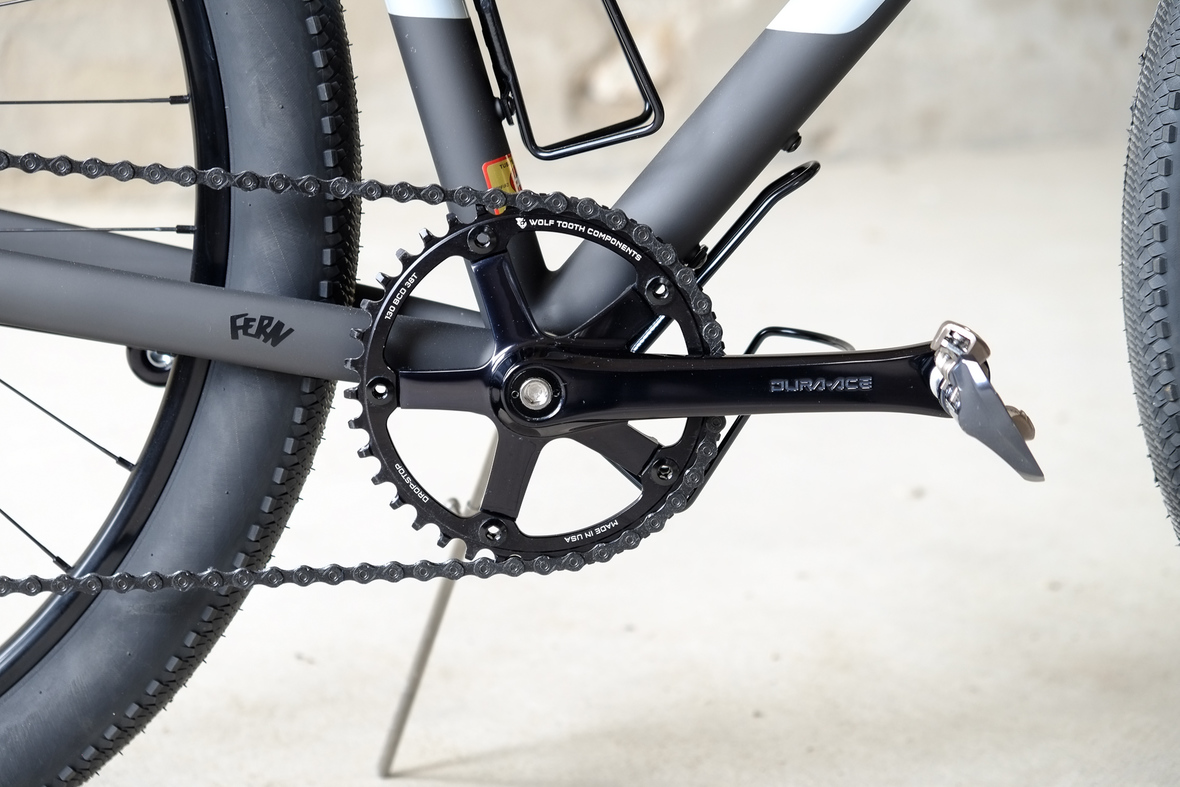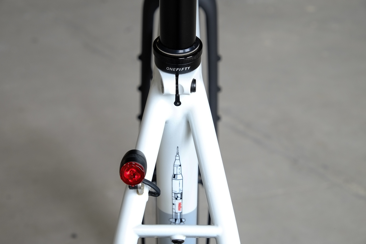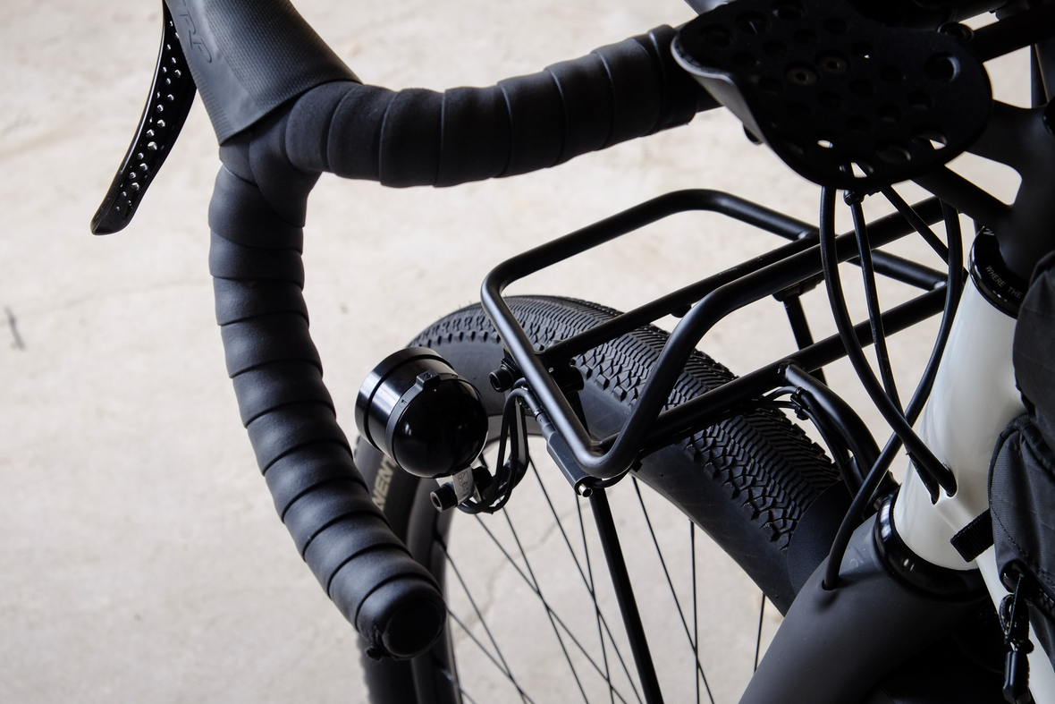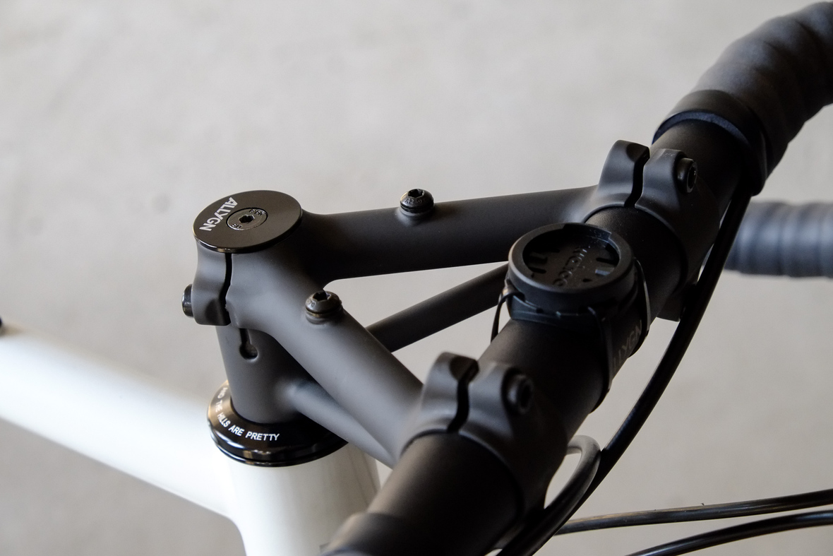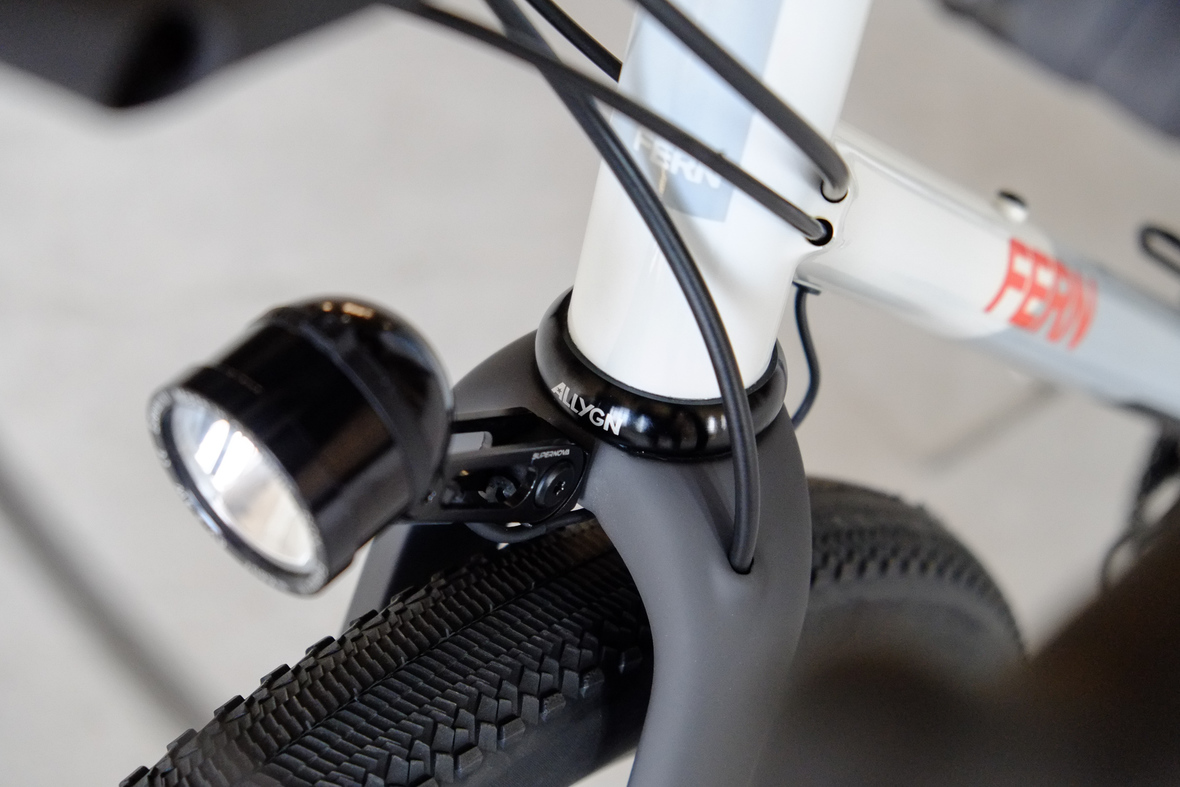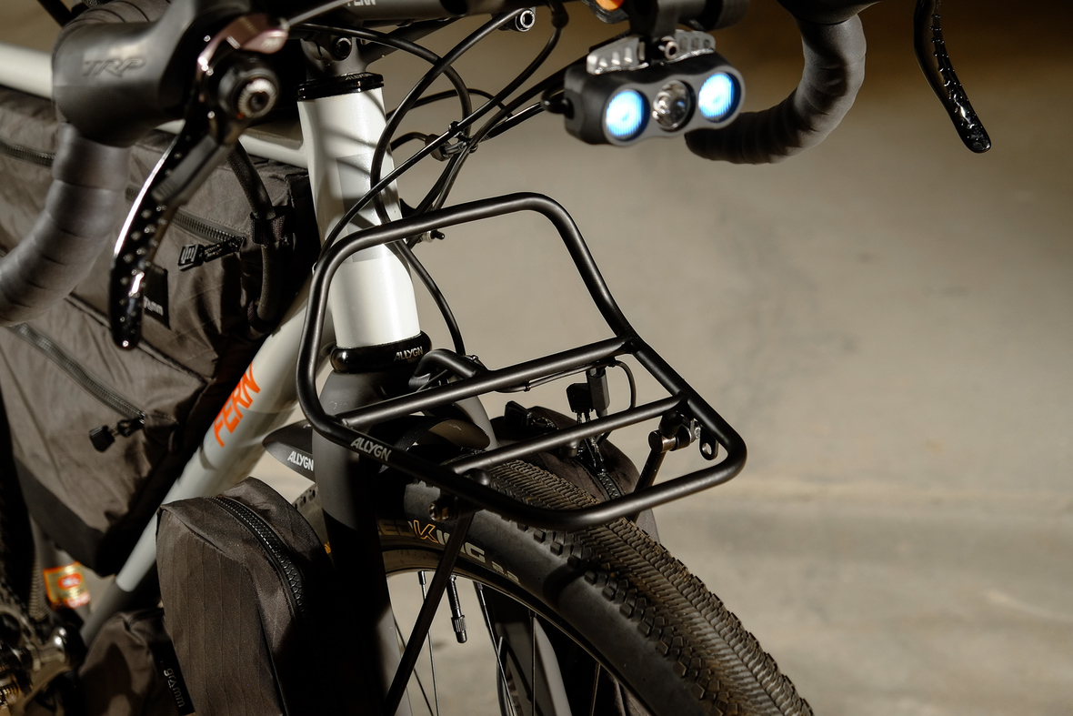 This bike features a fillet brazed frame made only from the finest ultra thin walled Columbus tubing, full internal cable routing and Fern's own 160mm direct flatmout standard. The bike is equipped with our brand new framebuilder owned component company ALLYGN Diamond frontrack, which will be availble in a limited edition bundle including a Gramm Tourpacking strap and a cust om Allygn X Ass Savers Mudder Mini front fender now! Check out ALLYGN for more infos!