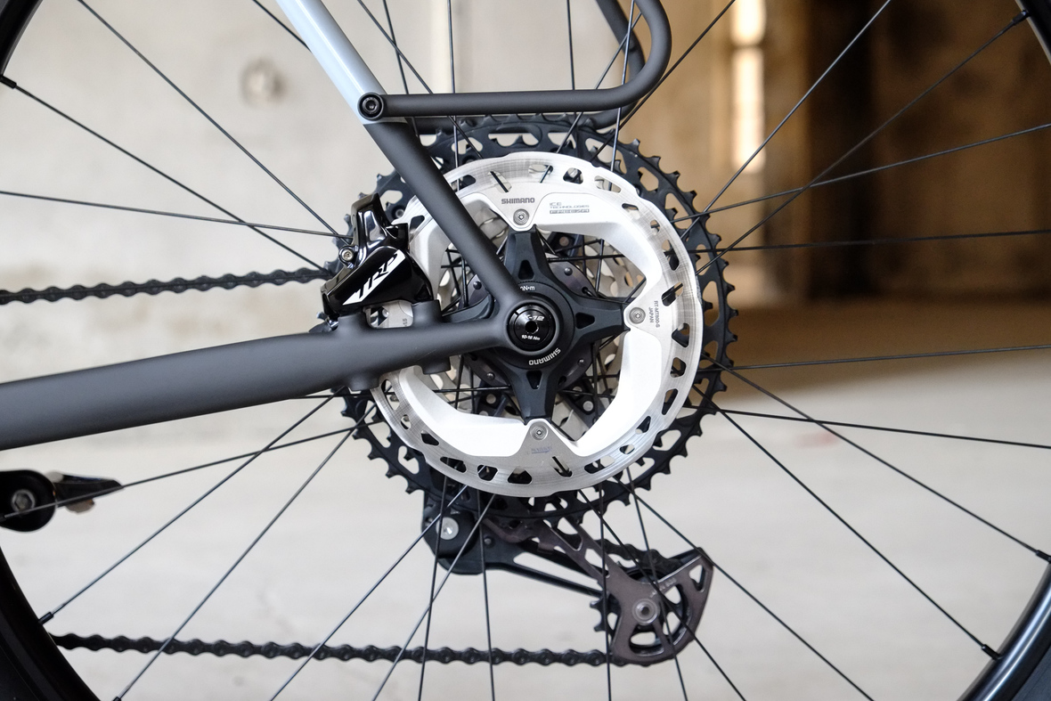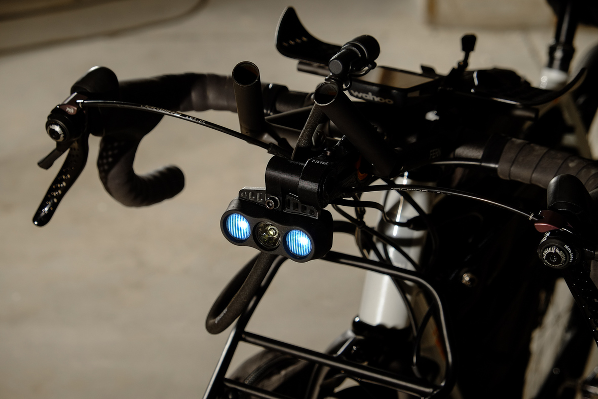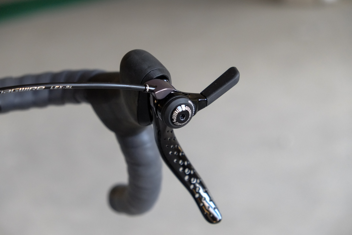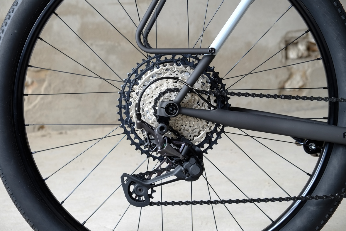 Wide range 1x12sp shifting is provided by our friends at Gevenalle, shifters mounted to TRP Hylex Hydraulic brakes. Left shifter for One-Up dropper seatpost actuation! Superlight wheelset with Stan's no tubes Crest Rims, Conti Speedkings for speed on and off the roads. Power supply and lights by SON. Comfy contact points bei ESI and Tune.