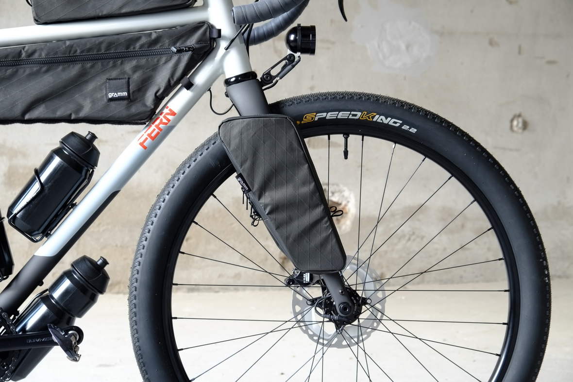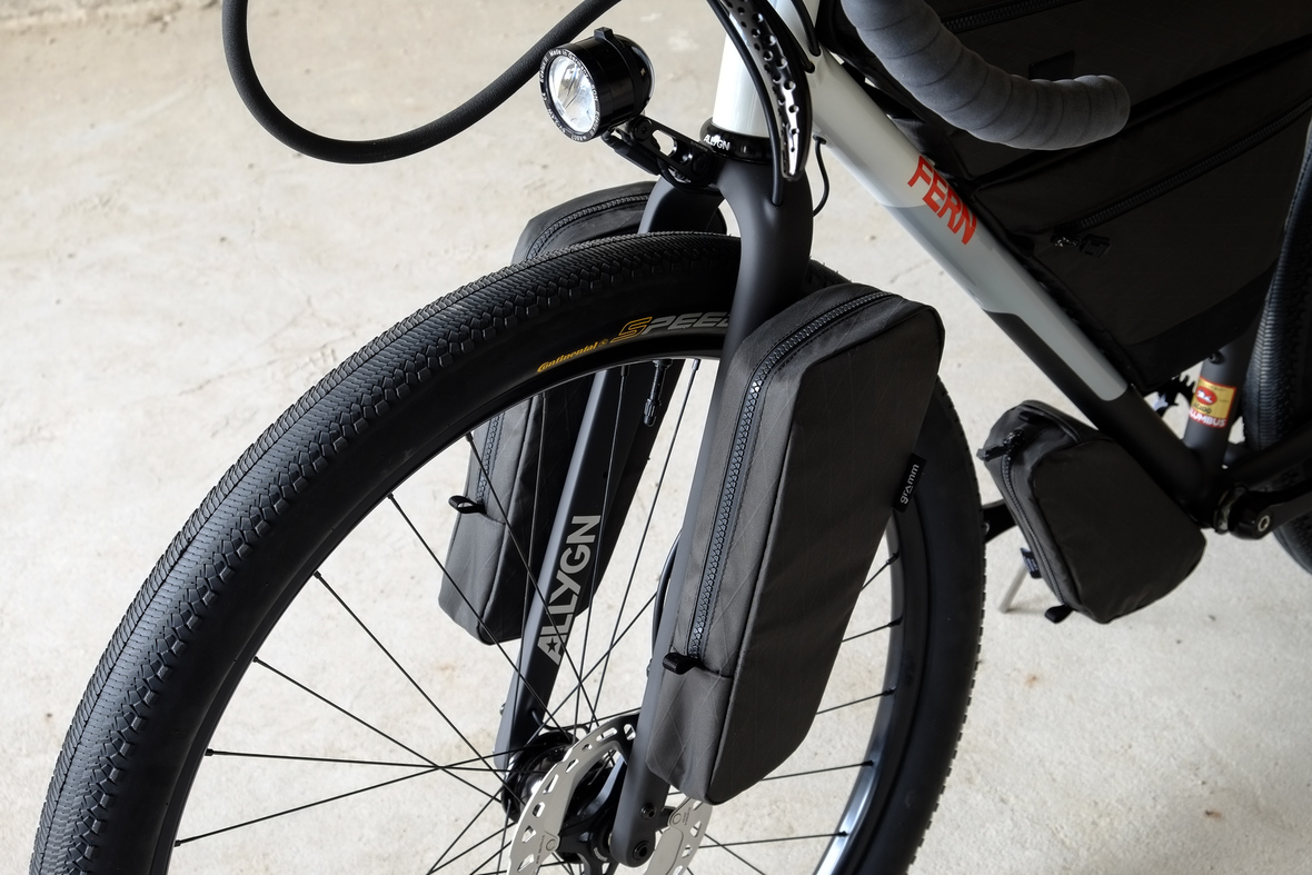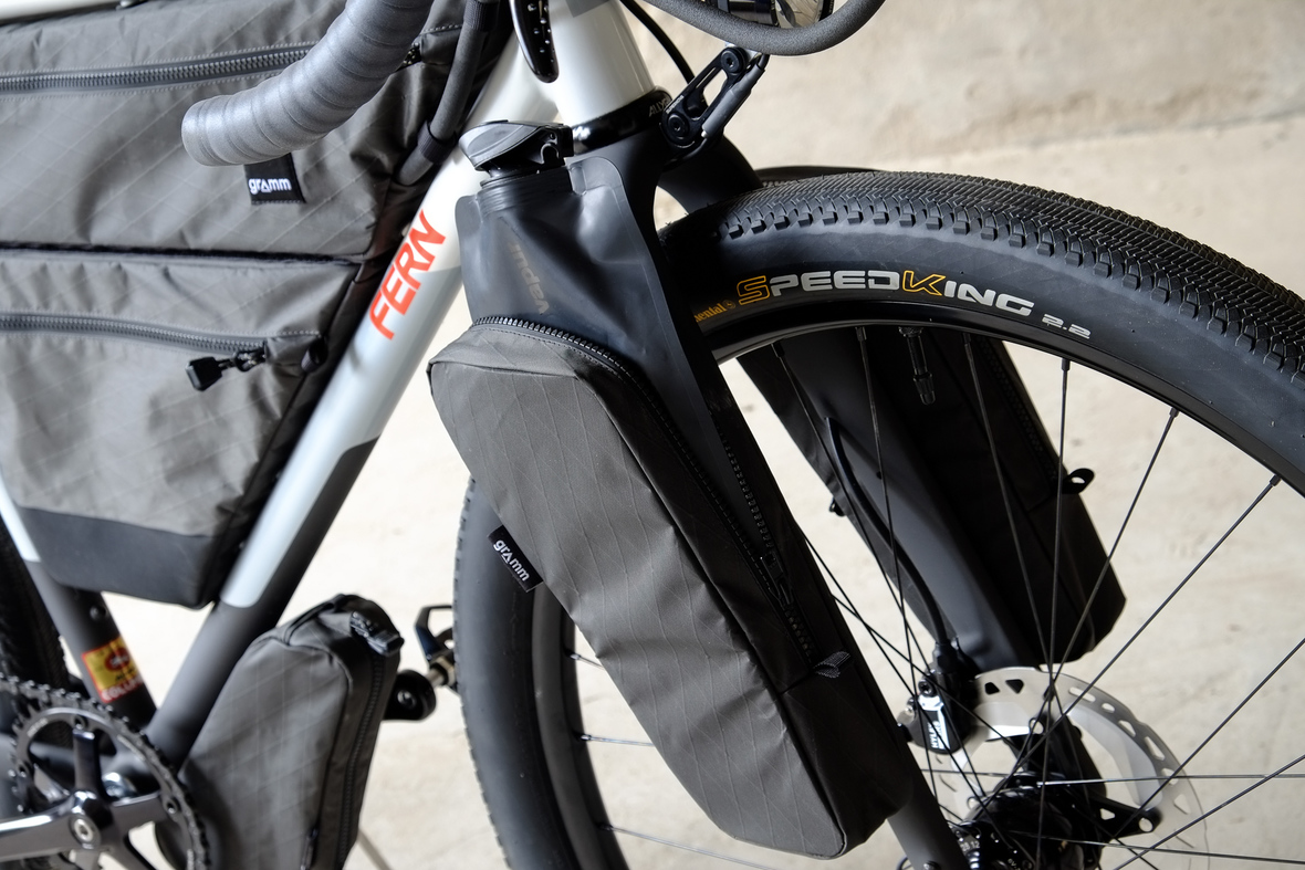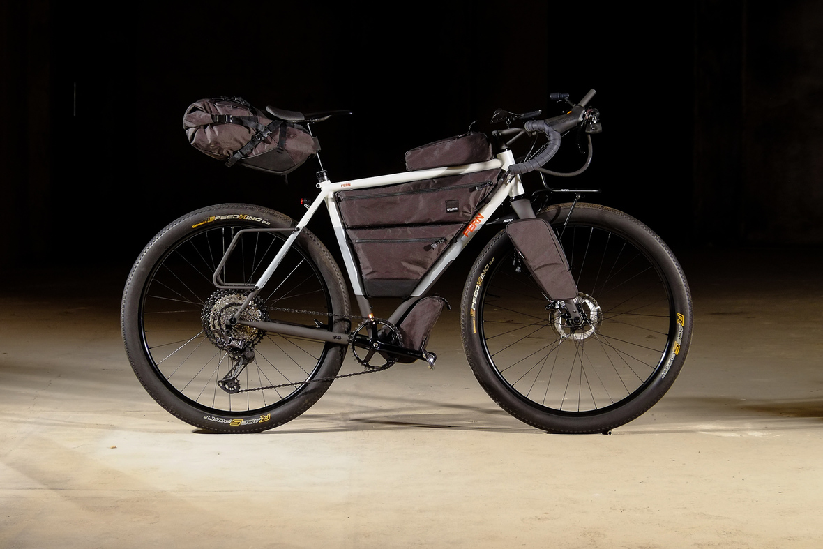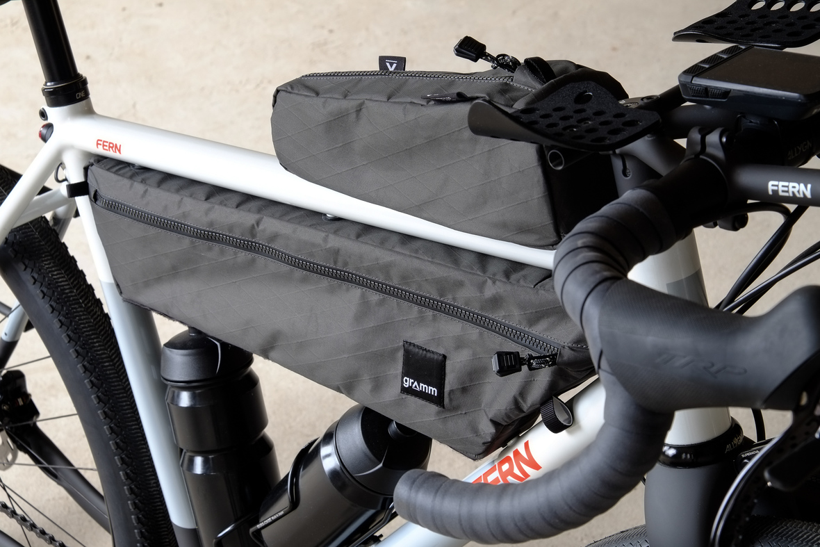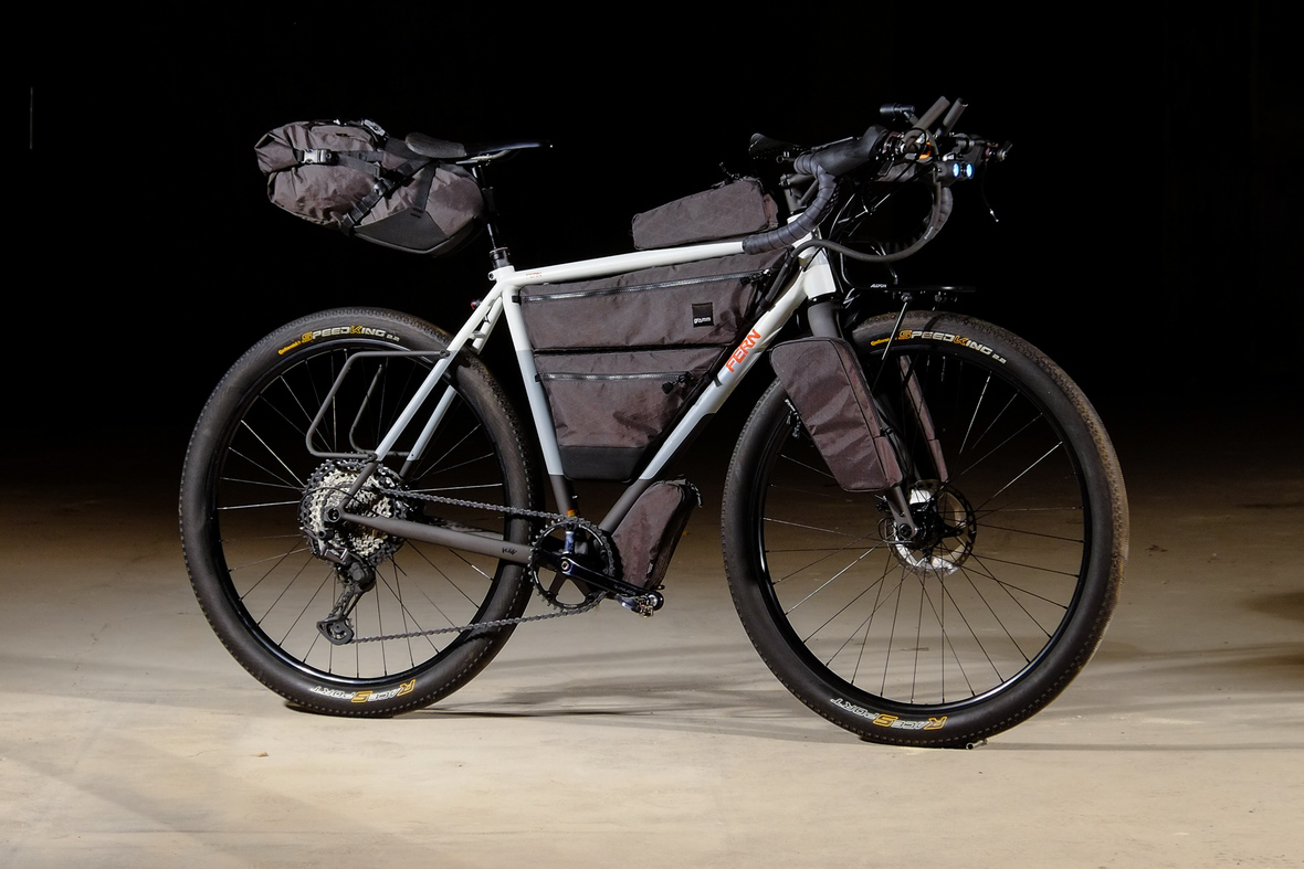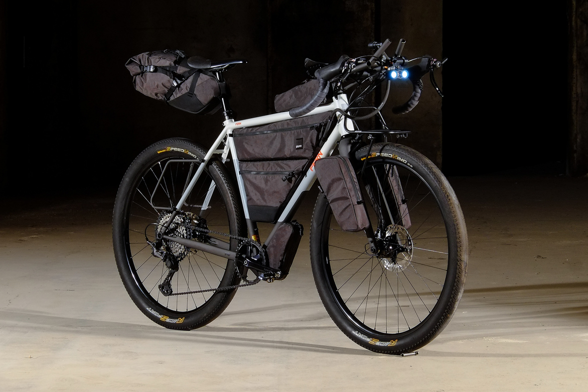 The bike also features the complete package of custom Gramm Tourpacking bags perfectly matching the design and lines of this bike. Bolt on Dual Framebag, custom designed Dropper Seat Bag, bolt on Top Tube Bag, special under downtube bag, and the brand new Gramm Anything Bags!