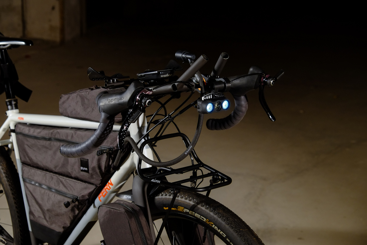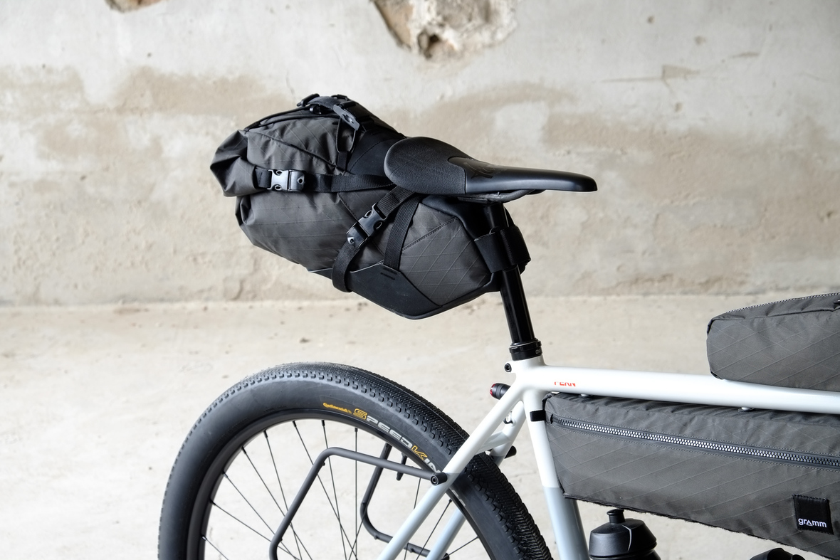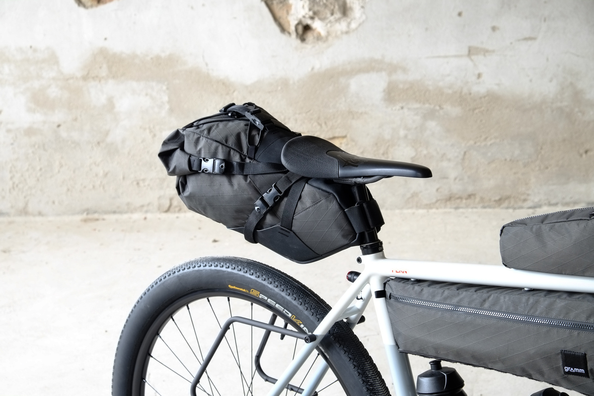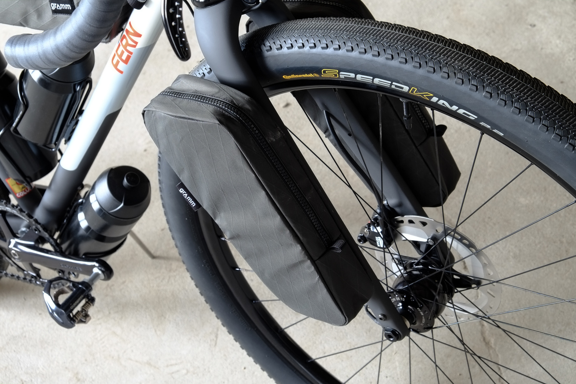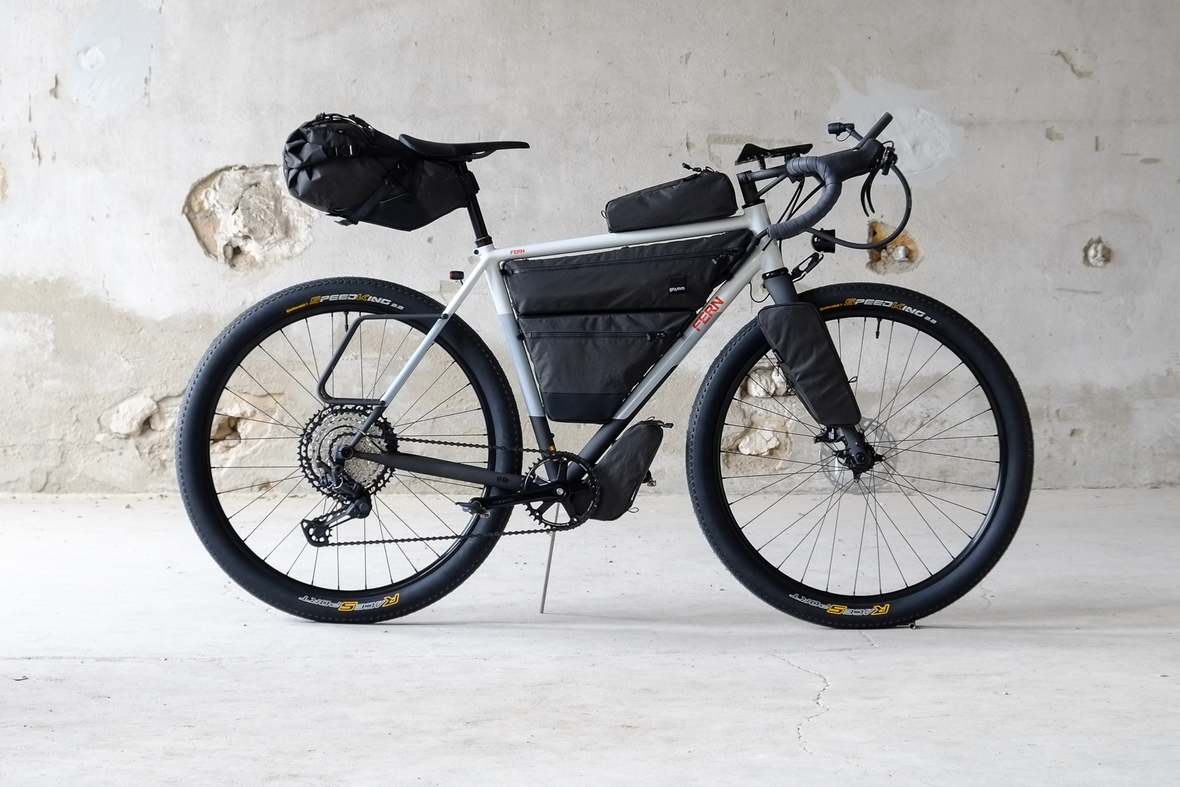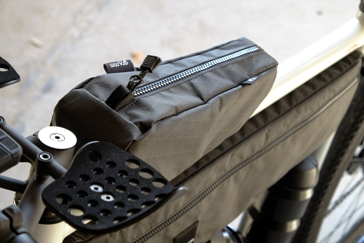The bike also features the complete package of custom Gramm Tourpacking bags perfectly matching the design and lines of this bike. Bolt on Dual Framebag, custom designed Dropper Seat Bag, bolt on Top Tube Bag, special under downtube bag, and the brand new Gramm Anything Bags!