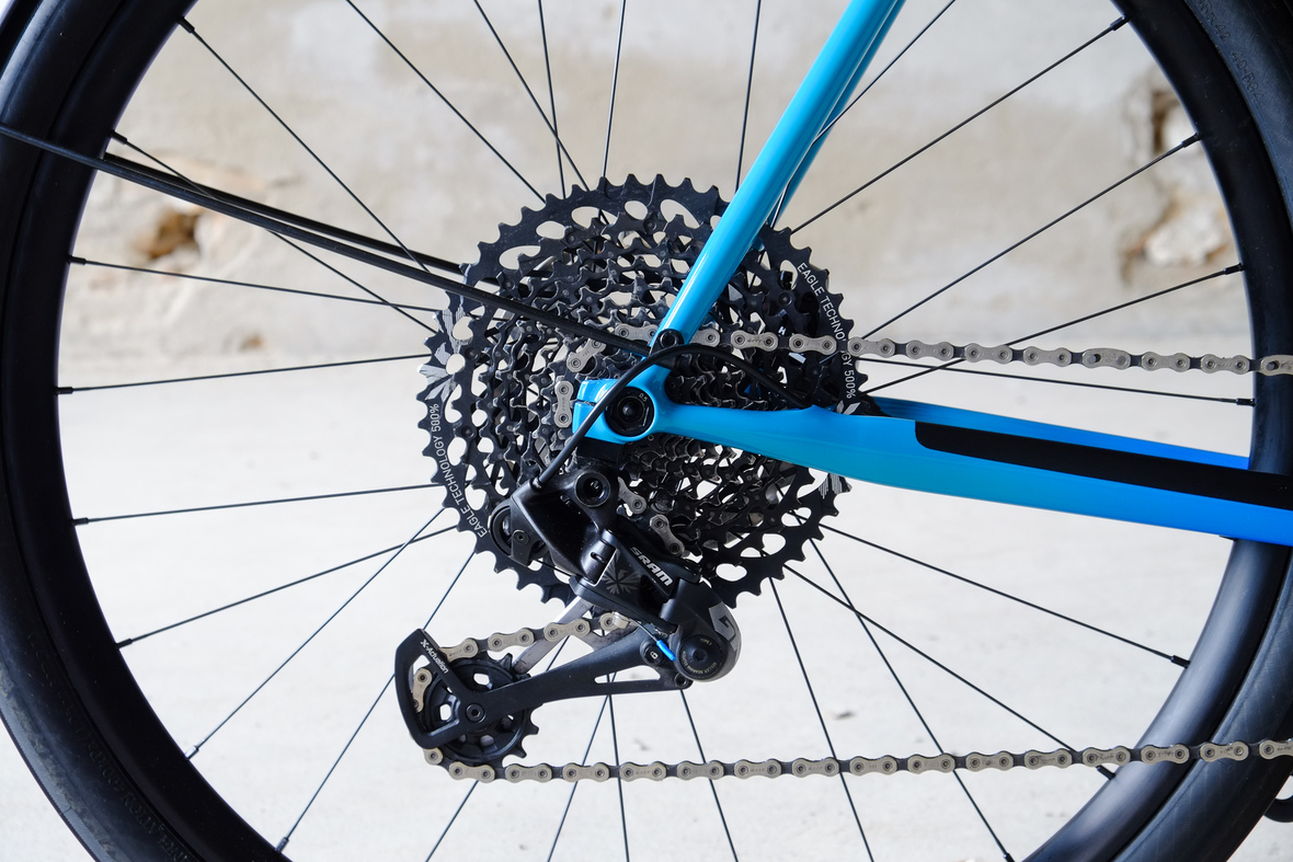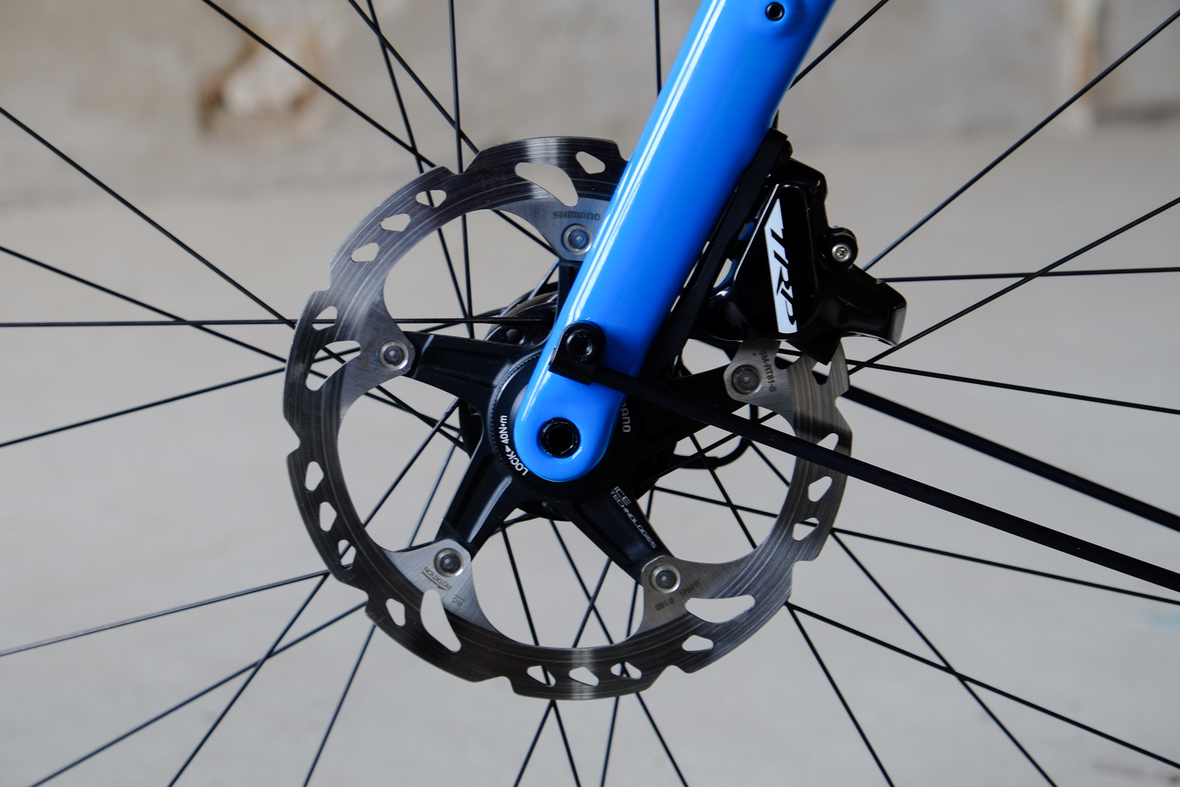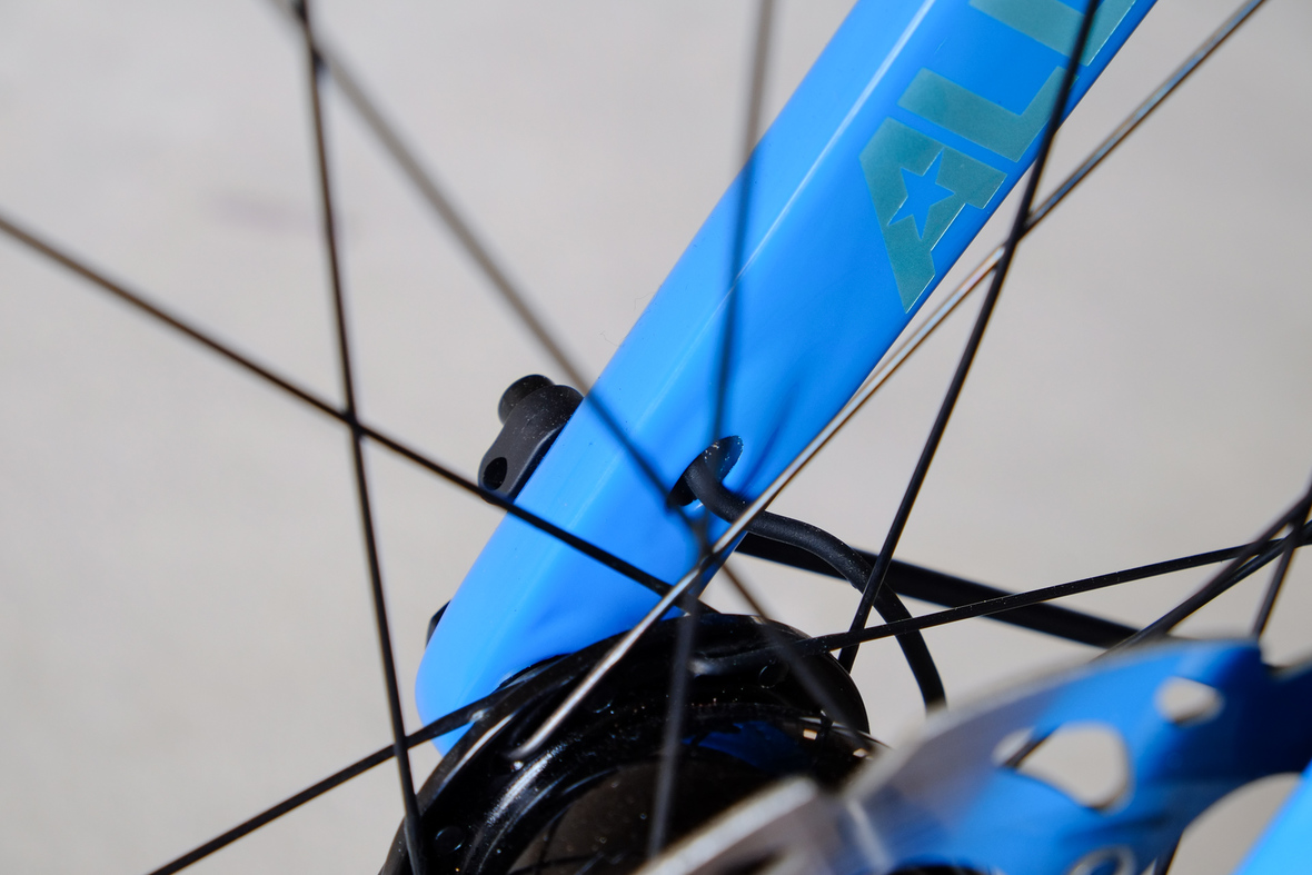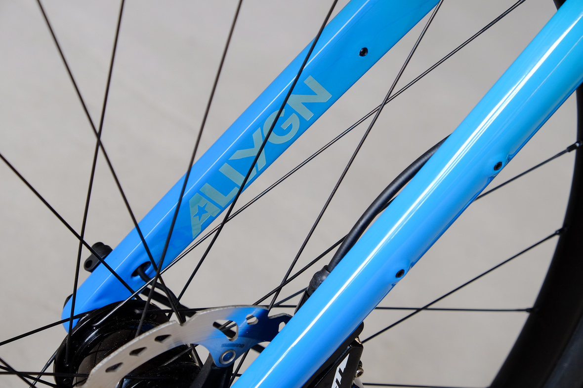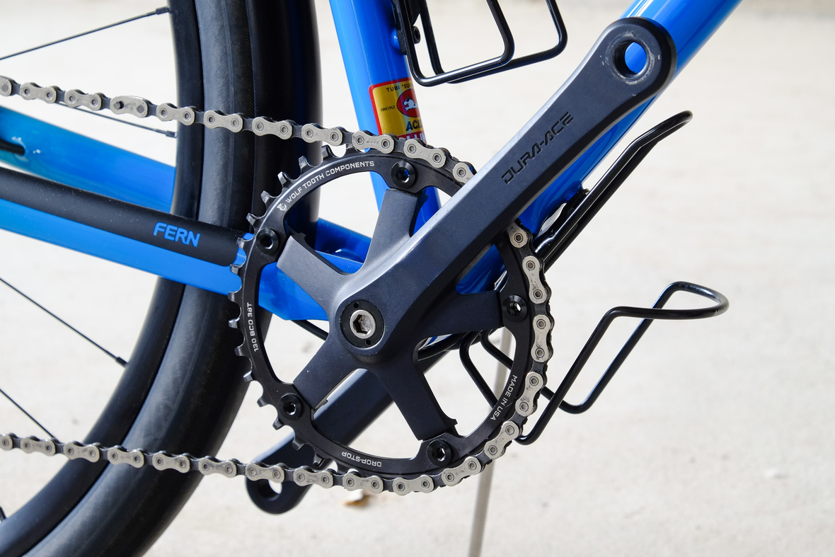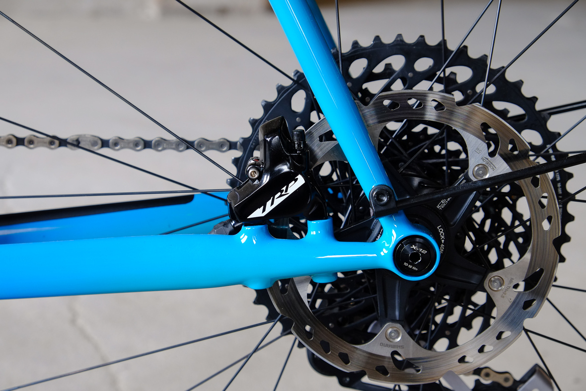 This is Daniel's finalized 650B Disc Chico, which he already successfully raced in a prototype state in the 2019 PBP edition. The bike is equipped with a prototype Allyn Components M.U.D. fork and a Allygn Diamond Front Rack. The fillet brazed frame is made only from the finest Columbus tubing and featuring our new 160mm flat direct mount standard on a Syntace X-12 through axle system. Fully internal cable routing. Hydraulic brake and shift action by Gevenalle, 1x12 Sram Eagle drivetrain spun fast with our trademark super low q-factor vintage Dura Ace crankset . Rolling ultra smooth on Hunt Wheels equipped with Rene Herse Baby Shoe Pass tires, mud protection by Velororange. Power supplied by SON deluxe hub dynamo and safety rear view mirror by our friends at Gilles Berthoud. Awesome Gramm Tourpacking bags, percfectly colour matching Velociao's vibrant paintjob.