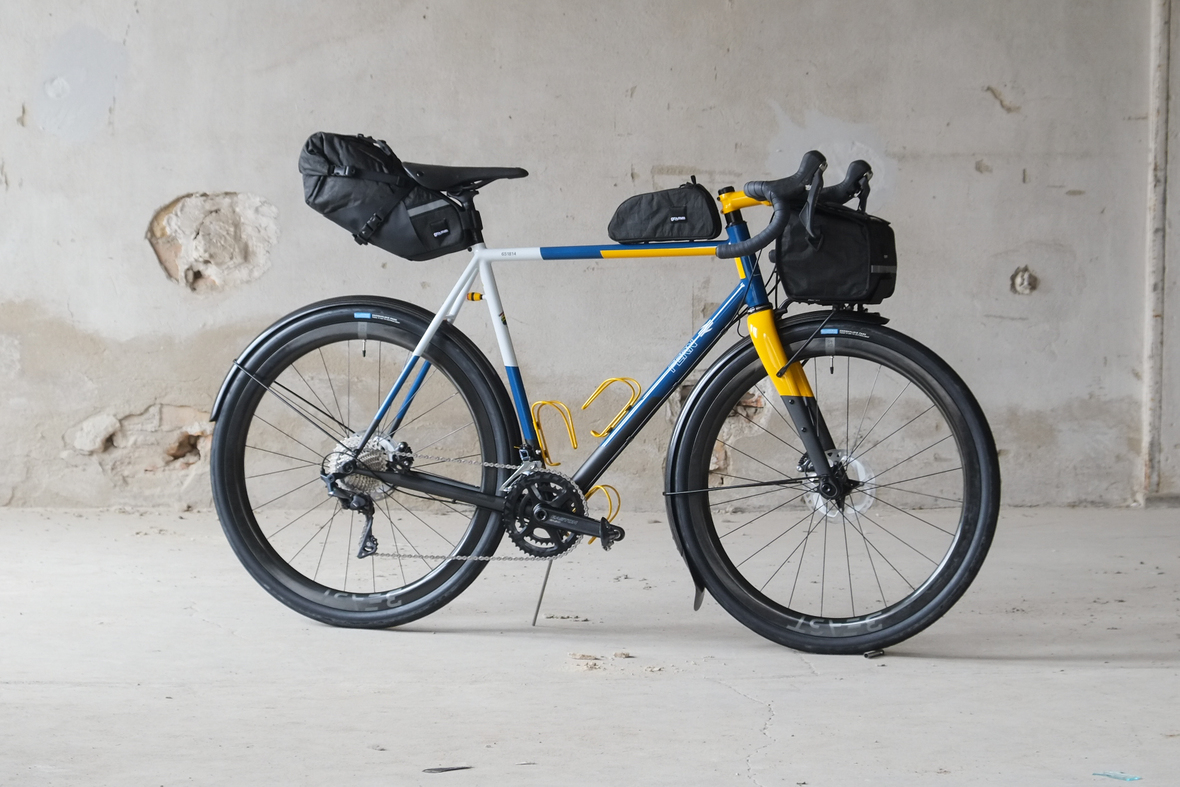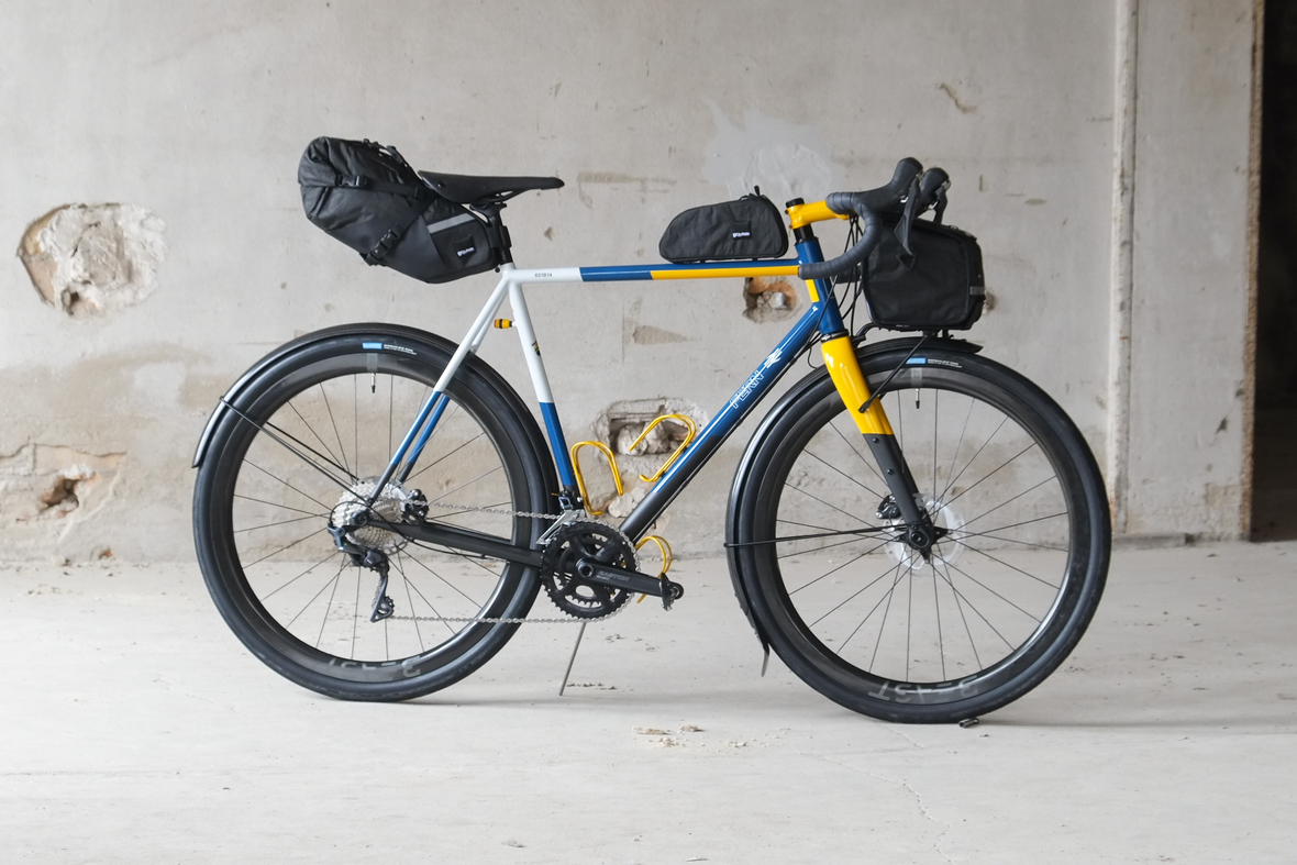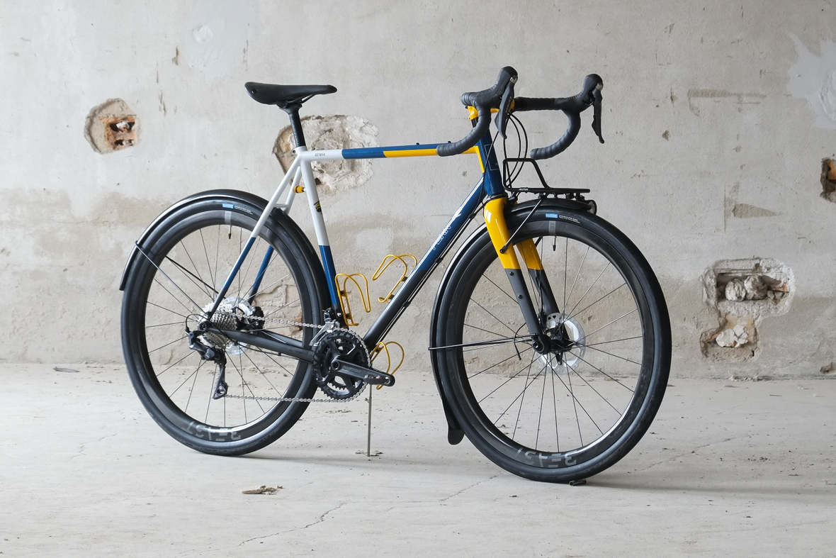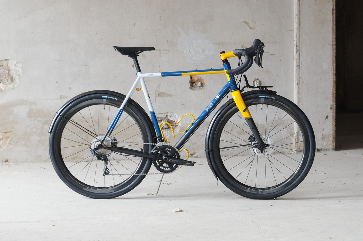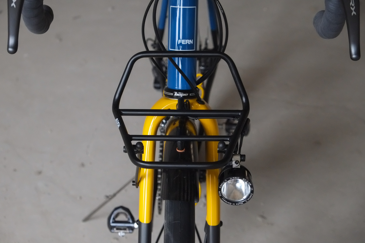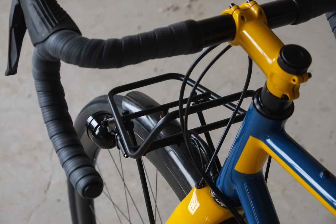Simon is an extreme long distance cyclist and when he first came into our workshop he finished the Berlin-Wien-Berlin 1500K Randonneur ride just the day before. Simon was still pretty much destroyed and we had to meet again the next day in order to make a decent bike fitting with him. Simon is from the UK and since a child he was a big fan of trains and so he came with the idea of making a bike in the style of the British Railways Express trains. We all loved the idea of that color scheme and so we teamed up with Tine and from Gramm Tourpacking and Robert from Velociao.com in order to design our own interpretation of a Fern Express Rando Bike, quoting typical details of those iconic locomotives. The final bike came out fantastic and I think we pretty much nailed that topic! The bike is build up with only the finest components available, such as the amazing Veloduo Carbon fenders with Asssaver fender flaps which will be available for EU customers exklusive at our Fern online shop soon! Allygn Diamond Front Rack and Gramm Diamond handlebar bag is a must have, also readily available in our online shops now. Other fine components are made by our friends at Beast Components, SON hubs and lights, custom made and painted Busch & Müller seatpost taillight, custom painted Chris King Cages, ESI, Brooks and Easton Cycling. I hope you will ride many many Brevet rides on this amazing machine mate,...Choo Choo, the Simon Express Train is coming!!