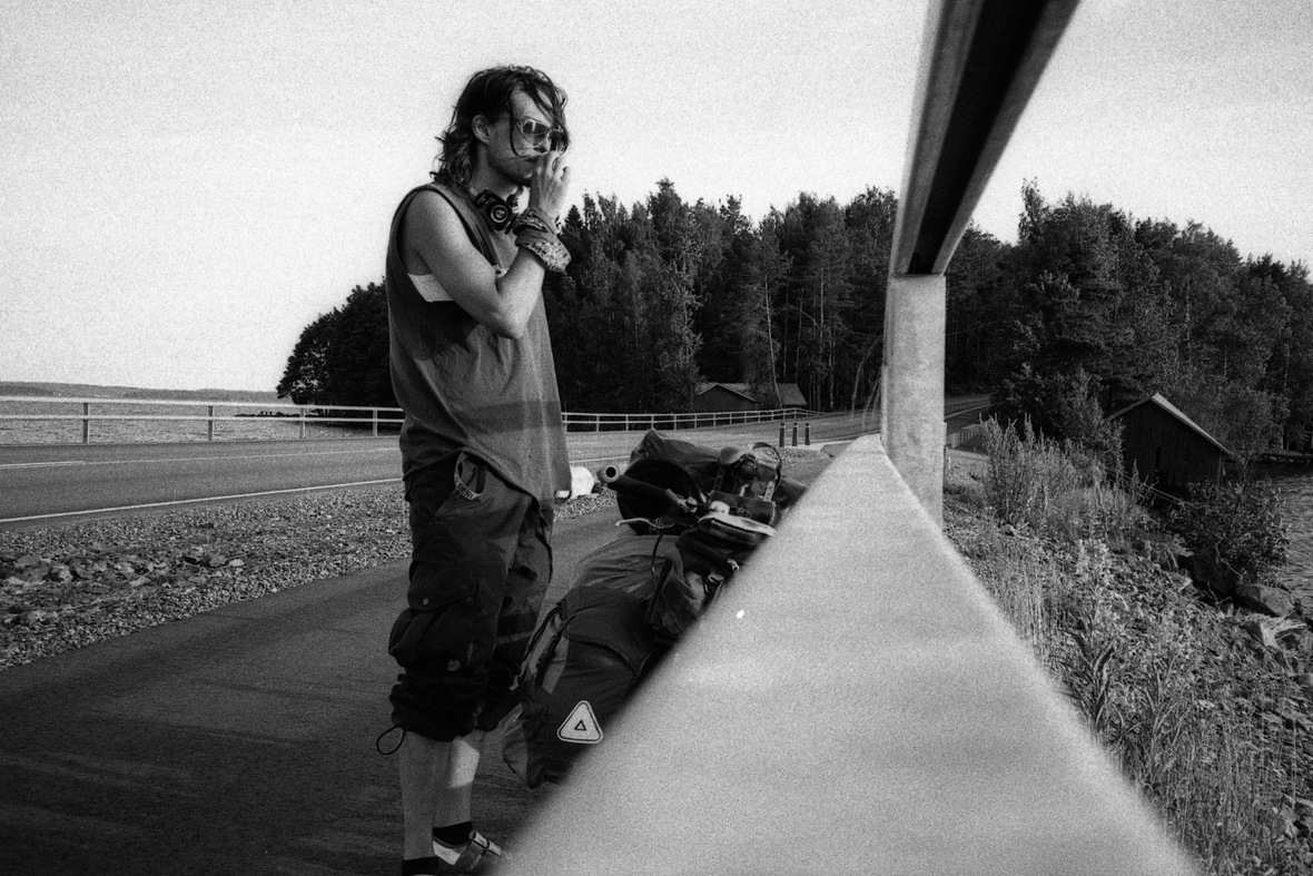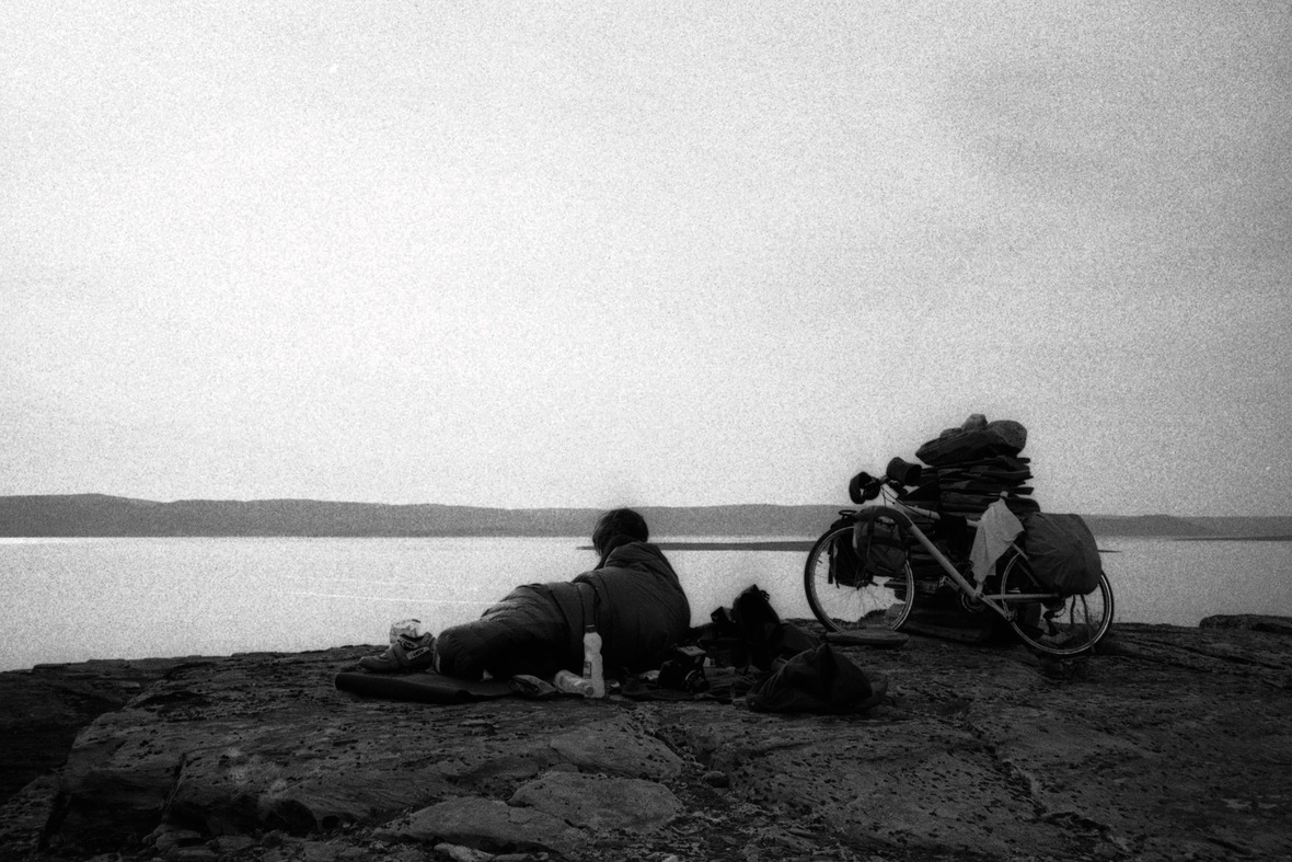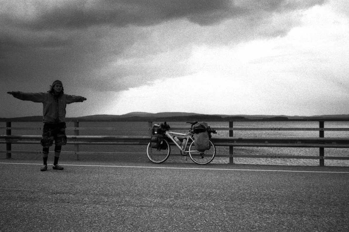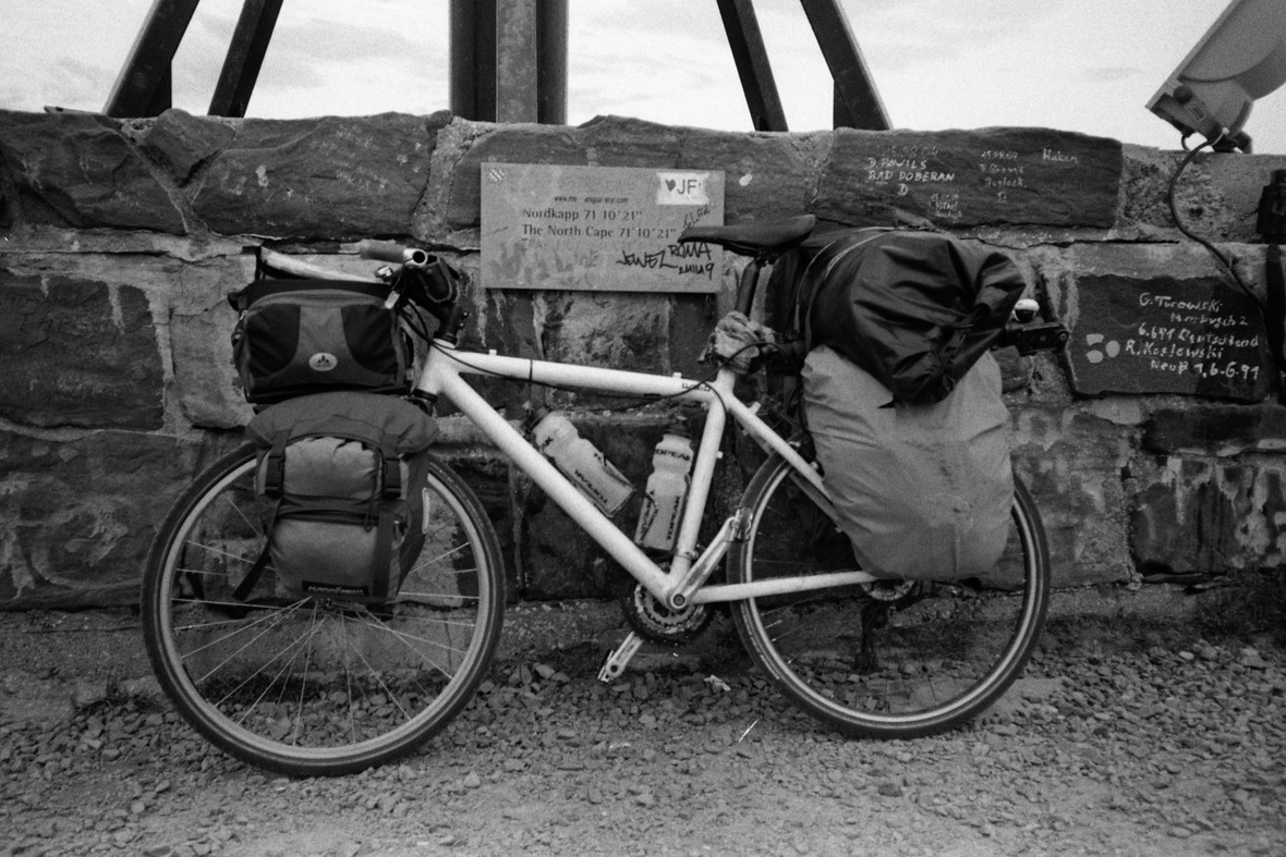 Im Jahr 2009 habe ich mich relativ kurzentschlossen auf den Weg zum Nordkap gemacht. Ich hatte die Nase voll von Arbeit und allem und so habe ich mir eine Fährpassage von Rostock nach Helsinki gebucht und los gings. Es folgte eine unglaubliche Reise durch das schöne Südfinnland, rauf in die einsamen Gegenden Lapplands, vorbei am riesigen Inari See, hinauf in die arktische Tundra. Nach knapp 2000km Tour erreiche ich bei fantastischem Wetter das Nordkap uns stoße mit einem Bier mit mir selber an! Unterwegs habe ich viele nette, verrückte, zumeist sehr trinkfreudige Menschen getroffen, die den kurzen Sommer ausgiebigst feiern und die endlosen polaren Sommernächte in vollen Zügen genießen. Wer will Ihnen das schon verübeln, die langen dunklen Nächte kommen ja bald wieder zurück. Die Highlights der Tour waren definitiv die Tage bei Janne und seinen wilden Freunden, die mich erst um ein Haar verprügelt hätten, aber deren schlechte Laune ich mit einer Flasche Whiskey besänftigen konnte und die mich dann 10 Tage lang wie einen ihrer besten Kumpels bei sich aufgenommen haben. Ich habe die letzten europäischen Goldgräber besucht, die noch wie vor 100 Jahren mit ihren Rauschebärten und Gummistiefelen im Ivalojoki sitzen und mit Pfannen das Gold aus dem Flußsand waschen. Ich habe Kultala, eine hundert Jahre alte Goldgräber-Geisterstadt gesucht und gefunden, und mir sind sind jede Menge Elche und Rentiere vors Fahrrad gelaufen. Am Nordkap bin ich dann auf eines der legendären Hurtigruten Schiffe gestiegen und bin drei langweilige aber schöne Tage lang mit lauter dicken, alten, beigen, reichen, deutschen Touristen auf die Lofoten gefahren, um den Urlaub gediegen ausklingen zu lassen….
