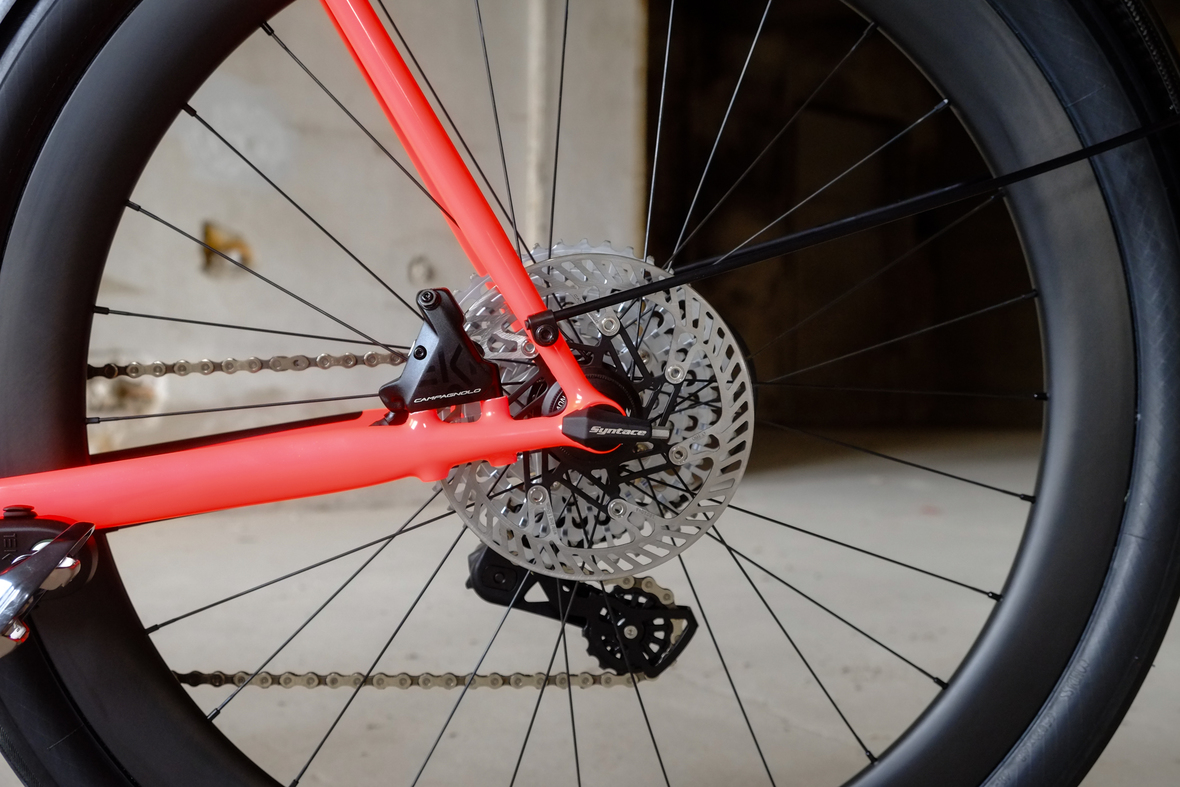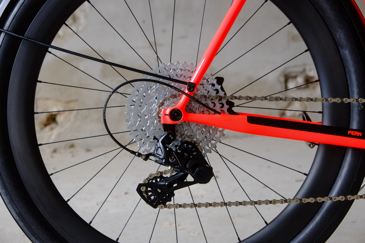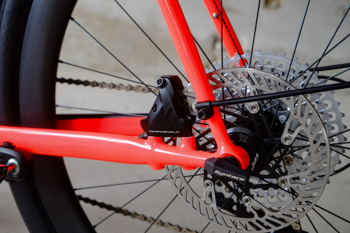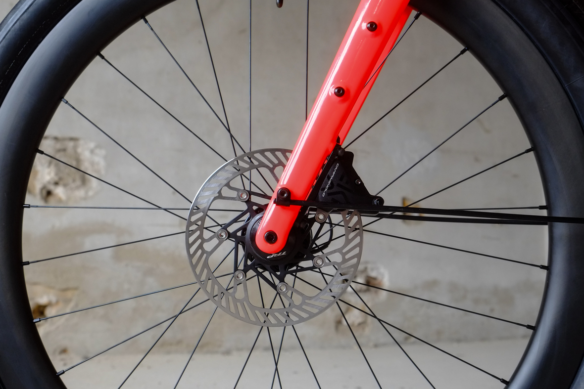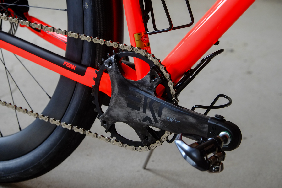 This bike is is equipped with the fantastic 1 x 13sp Campagnolo Ekar Groupset, which is the perfect groupset, bringing together italien racing bike performance with modern offroad compatible gearing and excellent disc brakes.