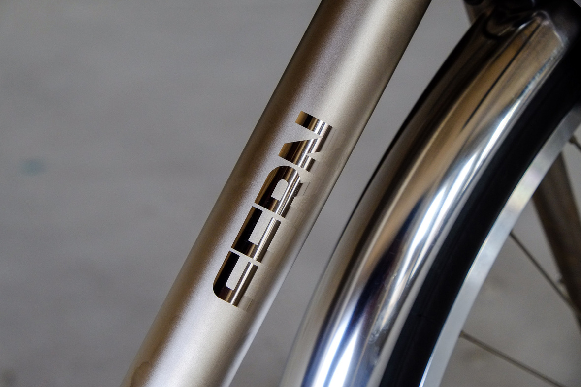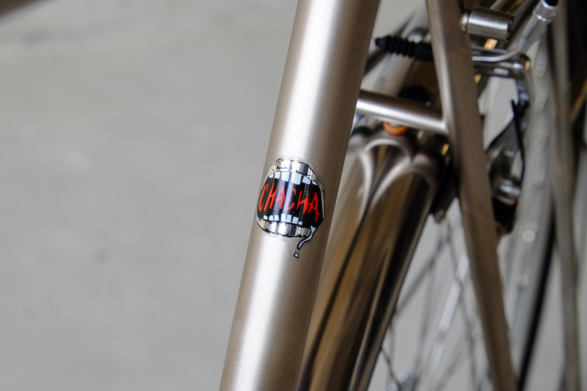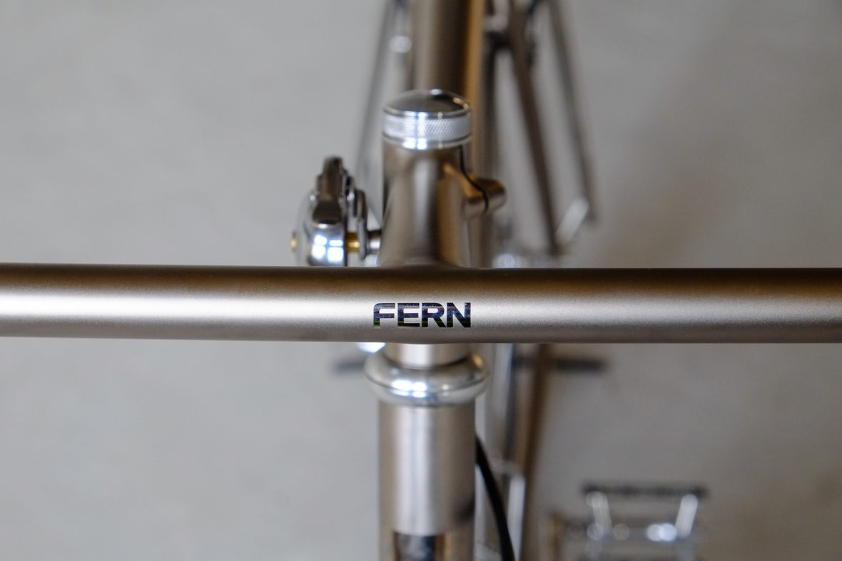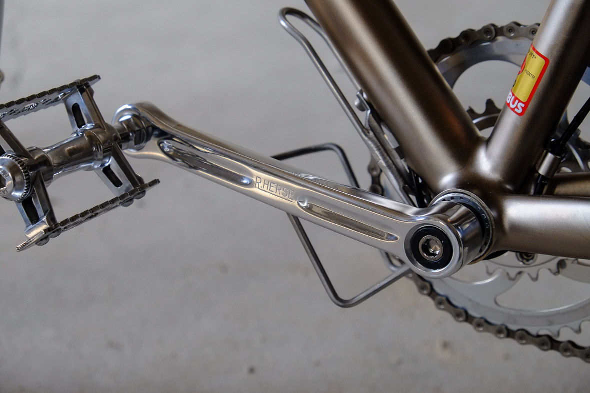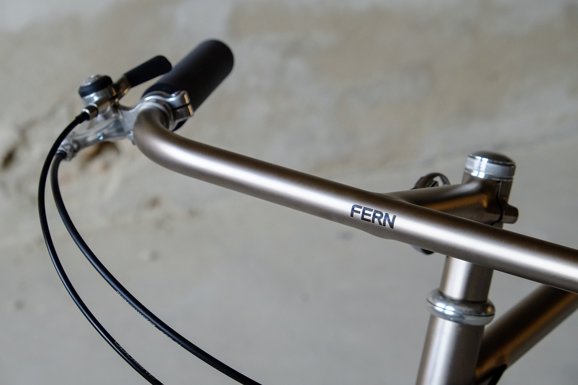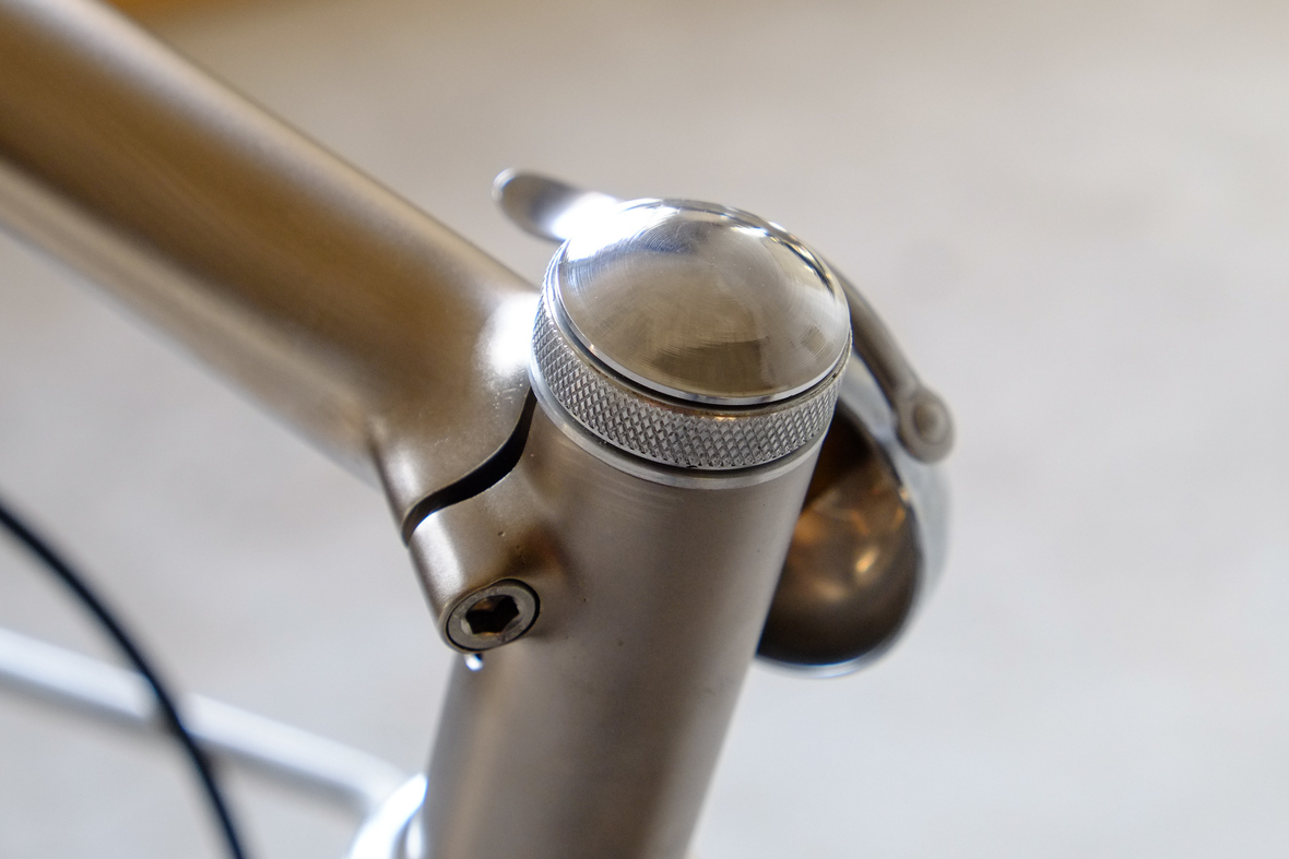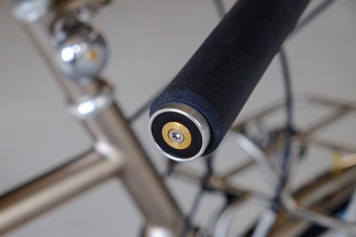 Wolfgang came quite a while ago into our workshop and he was looking for a trekking bicycle. After showing him pictures of classic Rene Herse and Alex Singer porteur style bicycles he was on fire with the idea of building a modern interpretation of this classic bicycle concept. Wolfgang put big trust into us and gave us complete freedom to do whatever we thought was right to put his dream on to two wheels. So we designed a special geometry for this wonderful nickel coated frame and fork which is made from the best Columbus tubing. We did not like the shapes of existing handlebars, so we decided to create our own handelbar stem combo, combining classy optics with perfect ergonomics. Many thanks to my man and master framebuilder Wheeldan for tube bending support! Custom made silverbrazed stainless racks for front and rear.