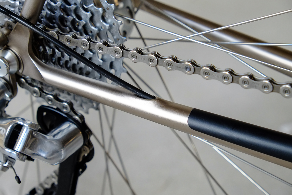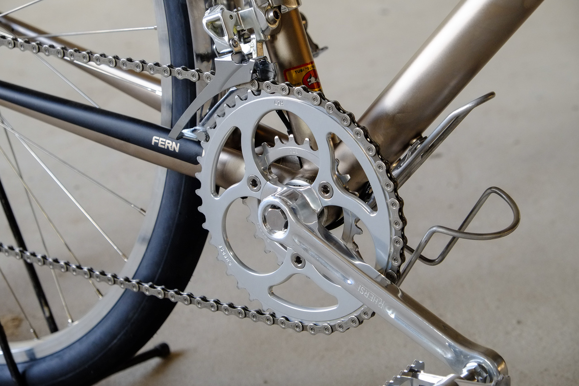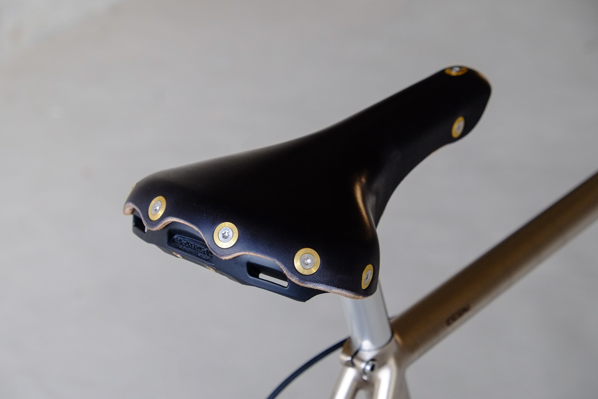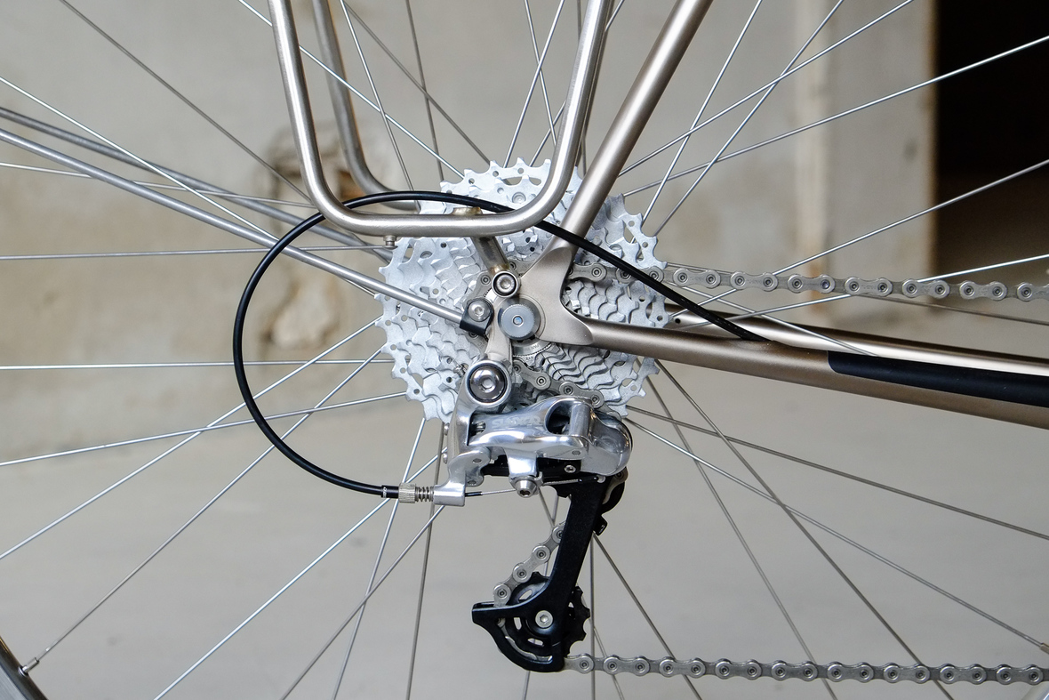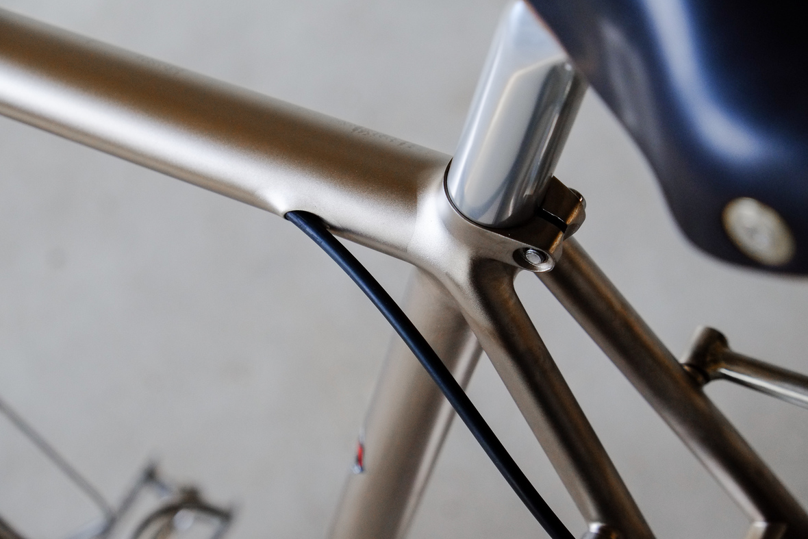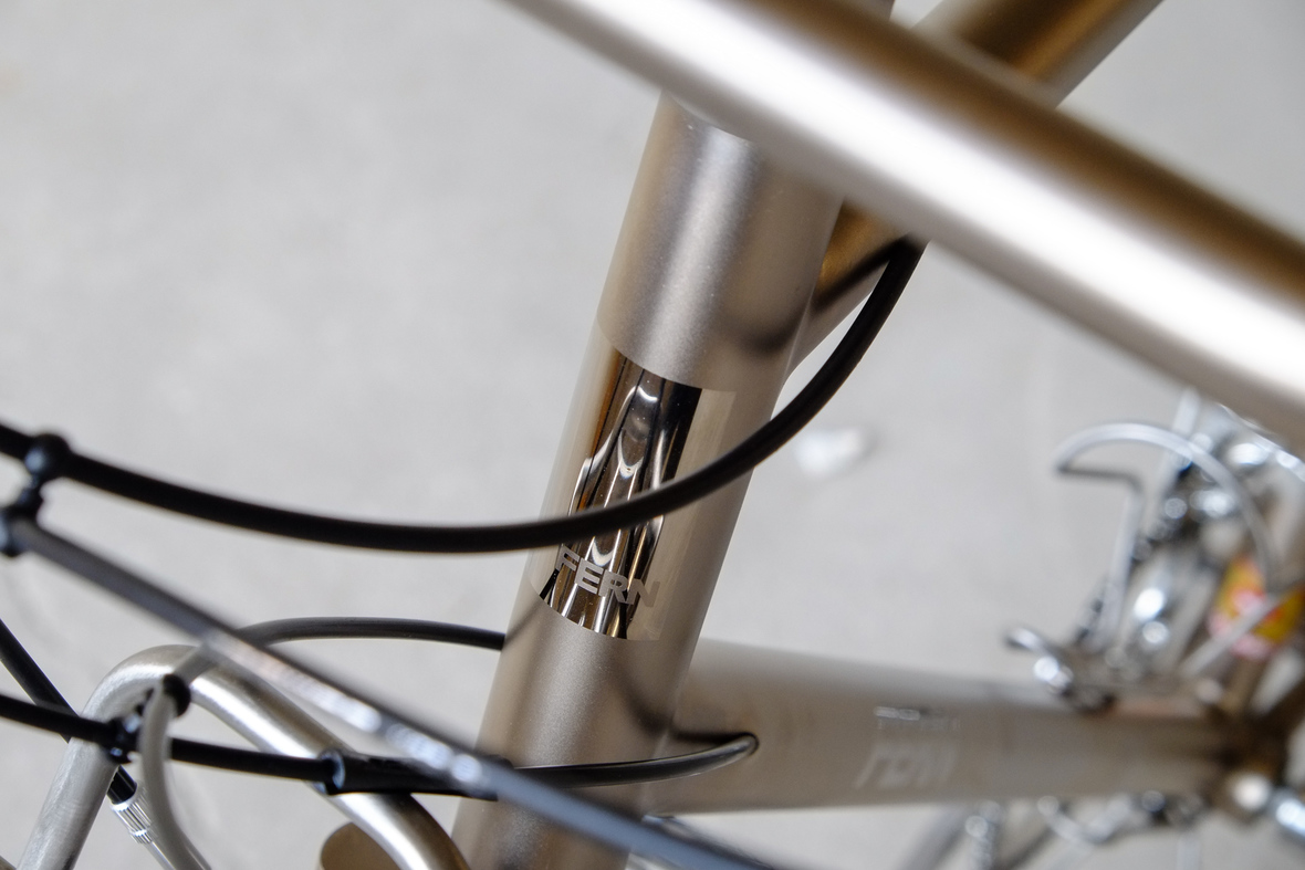 Wolfgang came quite a while ago into our workshop and he was looking for a trekking bicycle. After showing him pictures of classic Rene Herse and Alex Singer porteur style bicycles he was on fire with the idea of building a modern interpretation of this classic bicycle concept. Wolfgang put big trust into us and gave us complete freedom to do whatever we thought was right to put his dream on to two wheels. So we designed a special geometry for this wonderful nickel coated frame and fork which is made from the best Columbus tubing. We did not like the shapes of existing handlebars, so we decided to create our own handelbar stem combo, combining classy optics with perfect ergonomics. Many thanks to my man and master framebuilder Wheeldan for tube bending support! Custom made silverbrazed stainless racks for front and rear.
