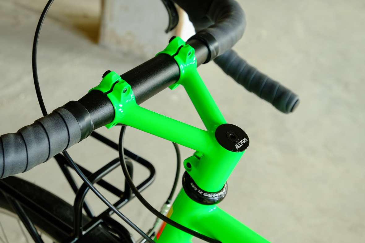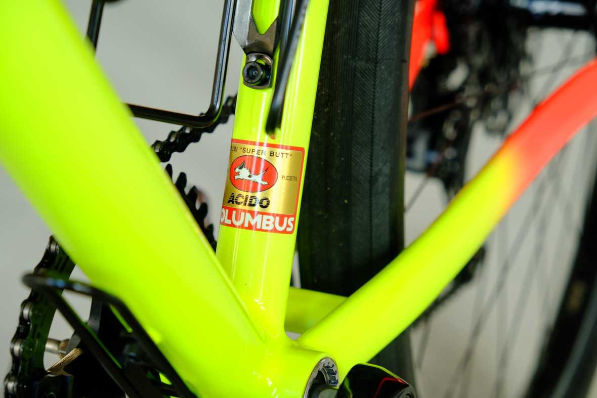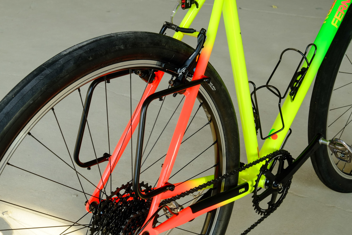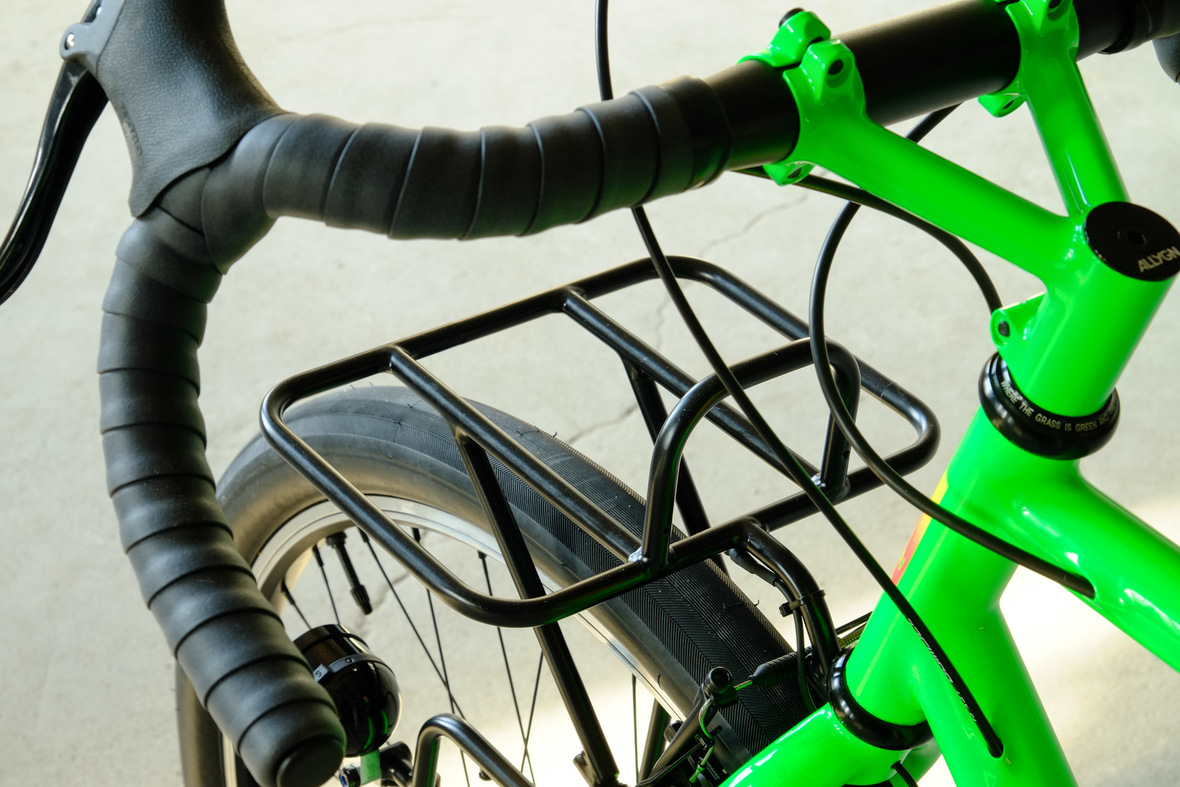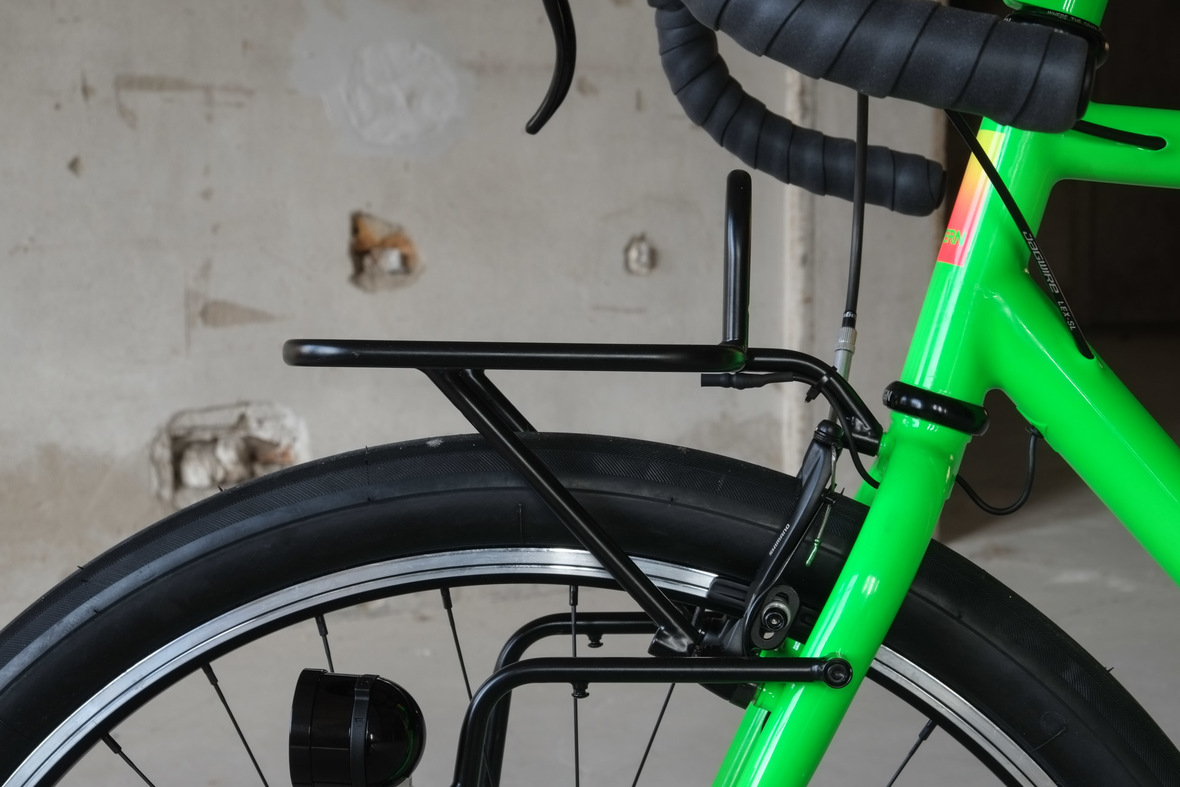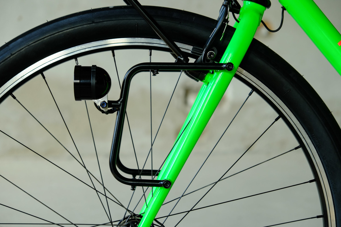 Sunshine,...Sunshine Reggae,...! We build this neon rastafarian Chuck 650B bike for Thorsten. This bike definitely puts a big smile on your face each time you gonna ride this beauty. A frame made from the finest custom made Columbus tubing and featuring our iconic Chuck slingshot stem and complete rack setup, all handmade by Fern. 1x11 Shimano gearing combined with Gevenalles for smooth and durable shifting perfomance, even in the roughest conditions. Supple and superfast rolling on Rene Herse Switchbackhill 650Bx48mm tires. Energy supply via SON 28 hubdynamo, bright as sunshine lighting with SON Edelux 2 headlight and Supernova taillight. Incredible paint job as usual by our man at Velociao , perfect matching bags made by my love Tine at Gramm Tourpacking . Have good times rolling Thorsten, Irie man! ;)