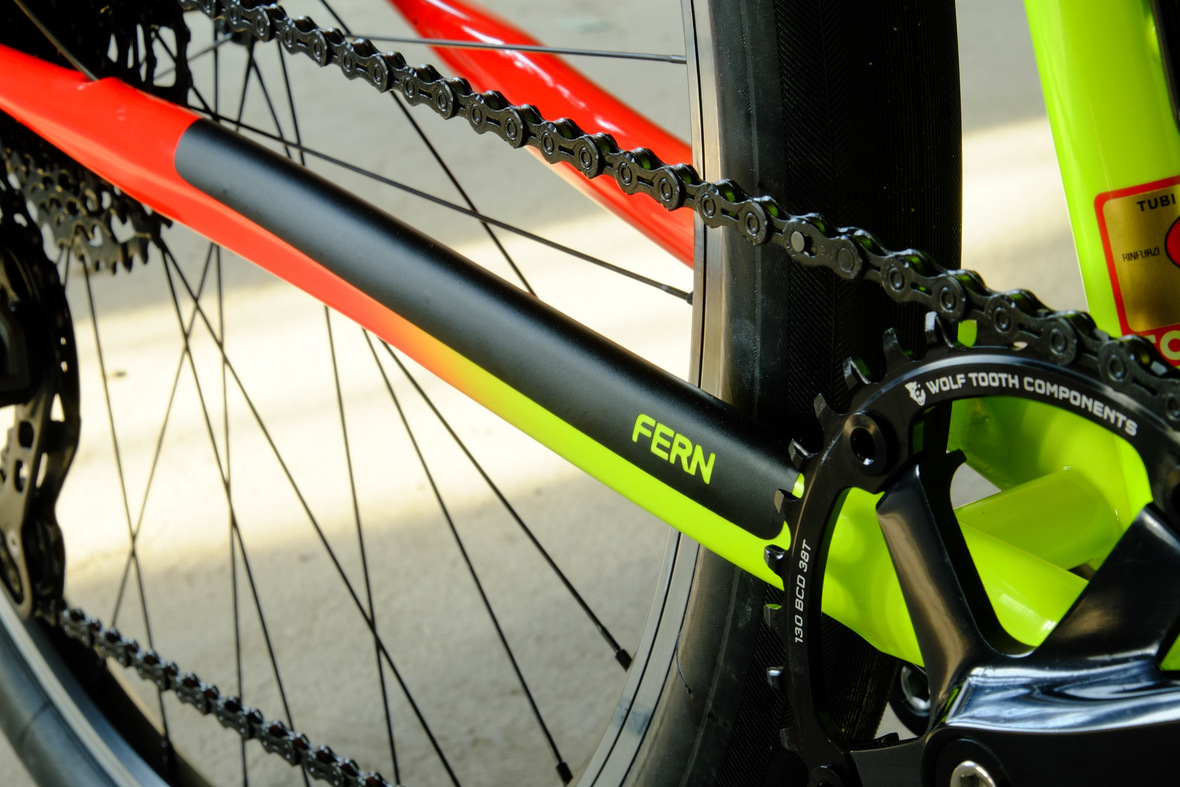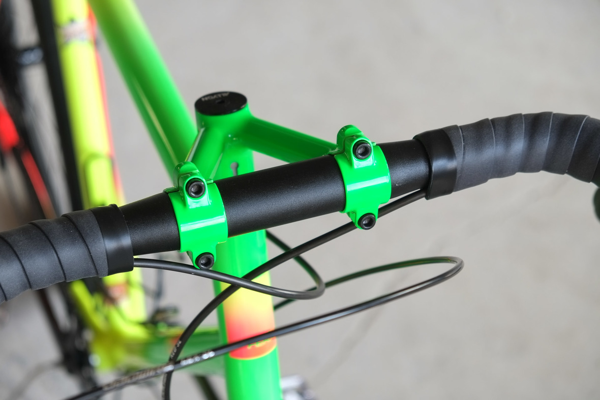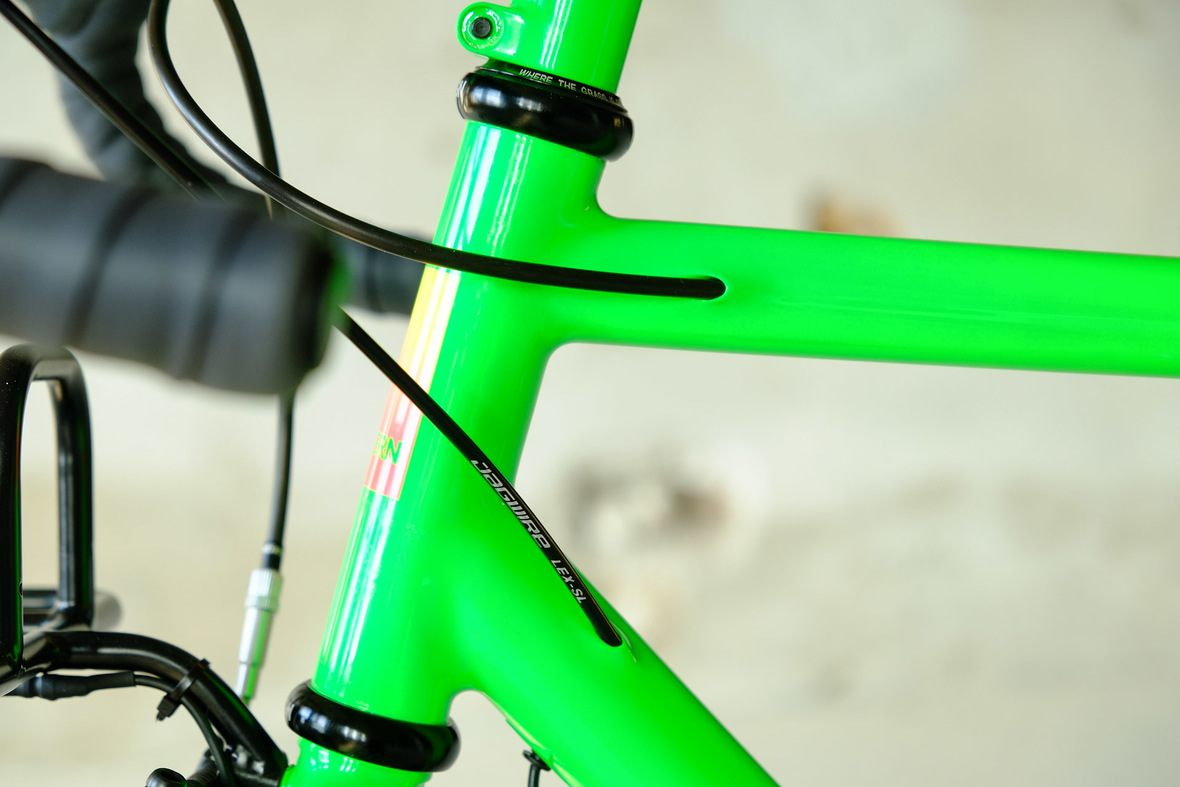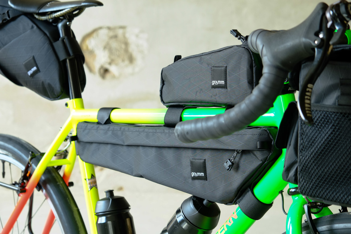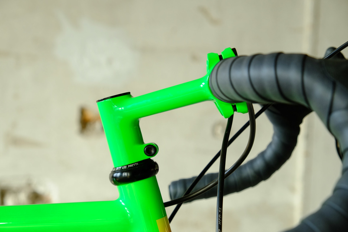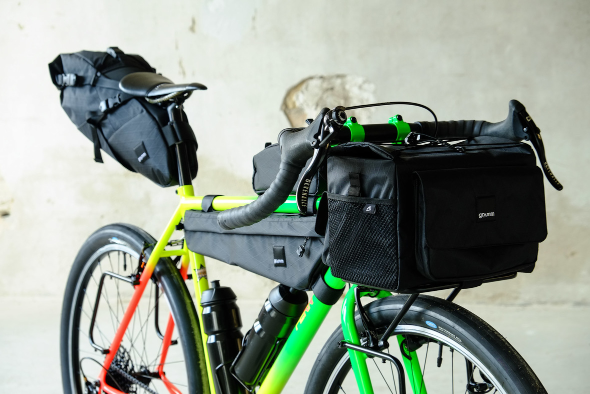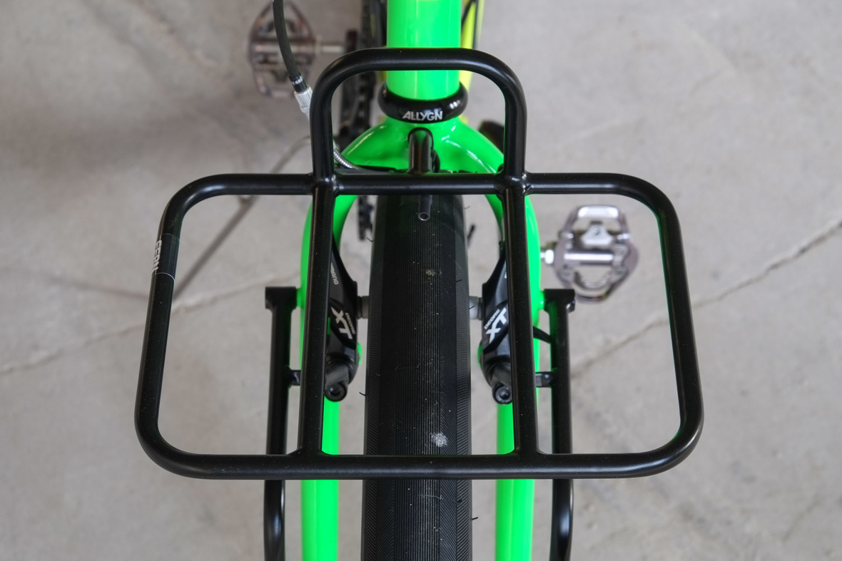 Sunshine,...Sunshine Reggae,...! We build this neon rastafarian Chuck 650B bike for Thorsten. This bike definitely puts a big smile on your face each time you gonna ride this beauty. A frame made from the finest custom made Columbus tubing and featuring our iconic Chuck slingshot stem and complete rack setup, all handmade by Fern. 1x11 Shimano gearing combined with Gevenalles for smooth and durable shifting perfomance, even in the roughest conditions. Supple and superfast rolling on Rene Herse Switchbackhill 650Bx48mm tires. Energy supply via SON 28 hubdynamo, bright as sunshine lighting with SON Edelux 2 headlight and Supernova taillight. Incredible paint job as usual by our man at Velociao , perfect matching bags made by my love Tine at Gramm Tourpacking . Have good times rolling Thorsten, Irie man! ;)