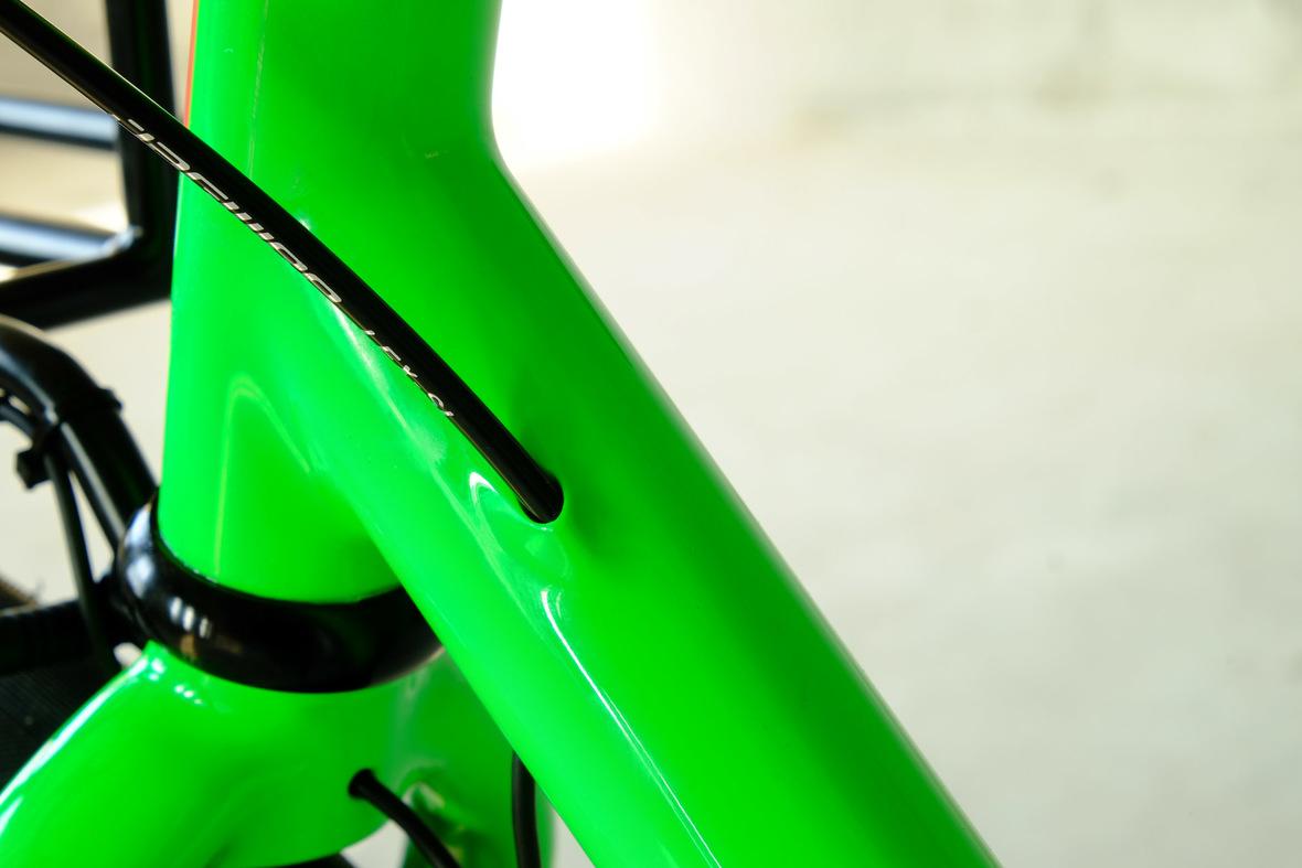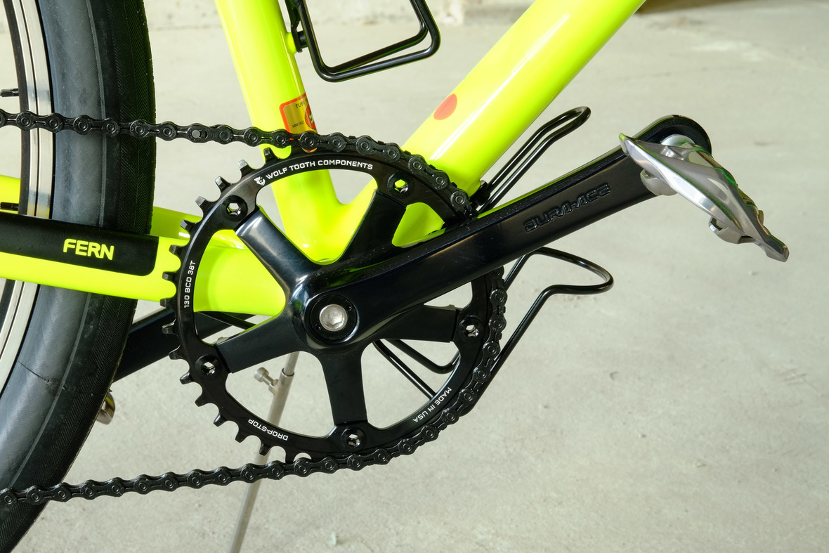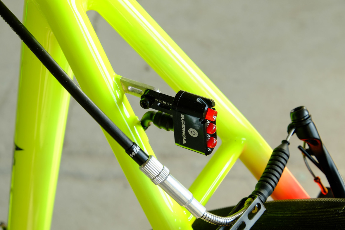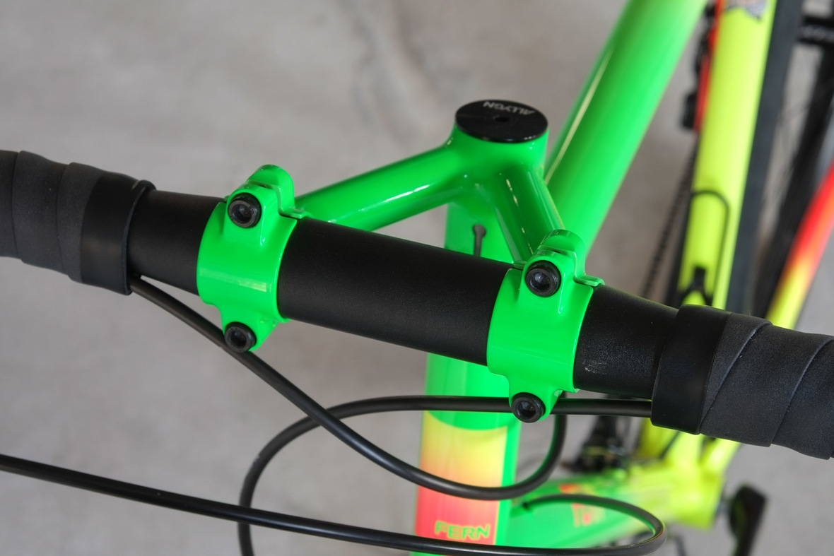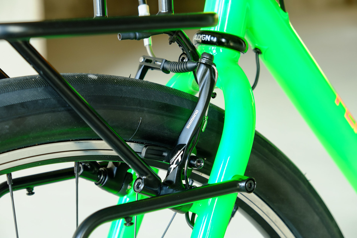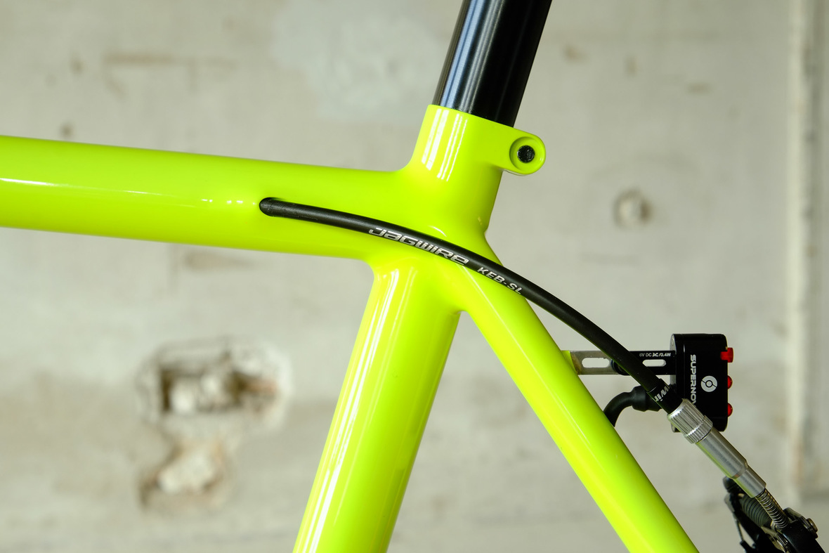 Sunshine,...Sunshine Reggae,...! We build this neon rastafarian Chuck 650B bike for Thorsten. This bike definitely puts a big smile on your face each time you gonna ride this beauty. A frame made from the finest custom made Columbus tubing and featuring our iconic Chuck slingshot stem and complete rack setup, all handmade by Fern. 1x11 Shimano gearing combined with Gevenalles for smooth and durable shifting perfomance, even in the roughest conditions. Supple and superfast rolling on Rene Herse Switchbackhill 650Bx48mm tires. Energy supply via SON 28 hubdynamo, bright as sunshine lighting with SON Edelux 2 headlight and Supernova taillight. Incredible paint job as usual by our man at Velociao , perfect matching bags made by my love Tine at Gramm Tourpacking . Have good times rolling Thorsten, Irie man! ;)