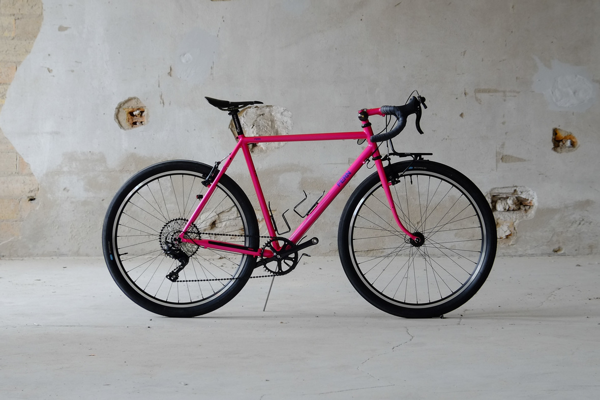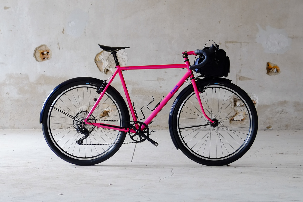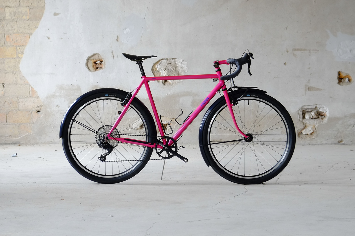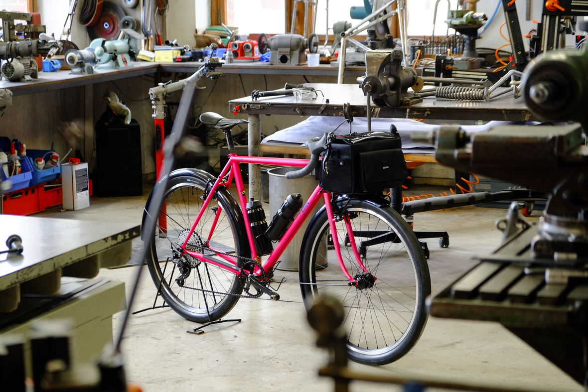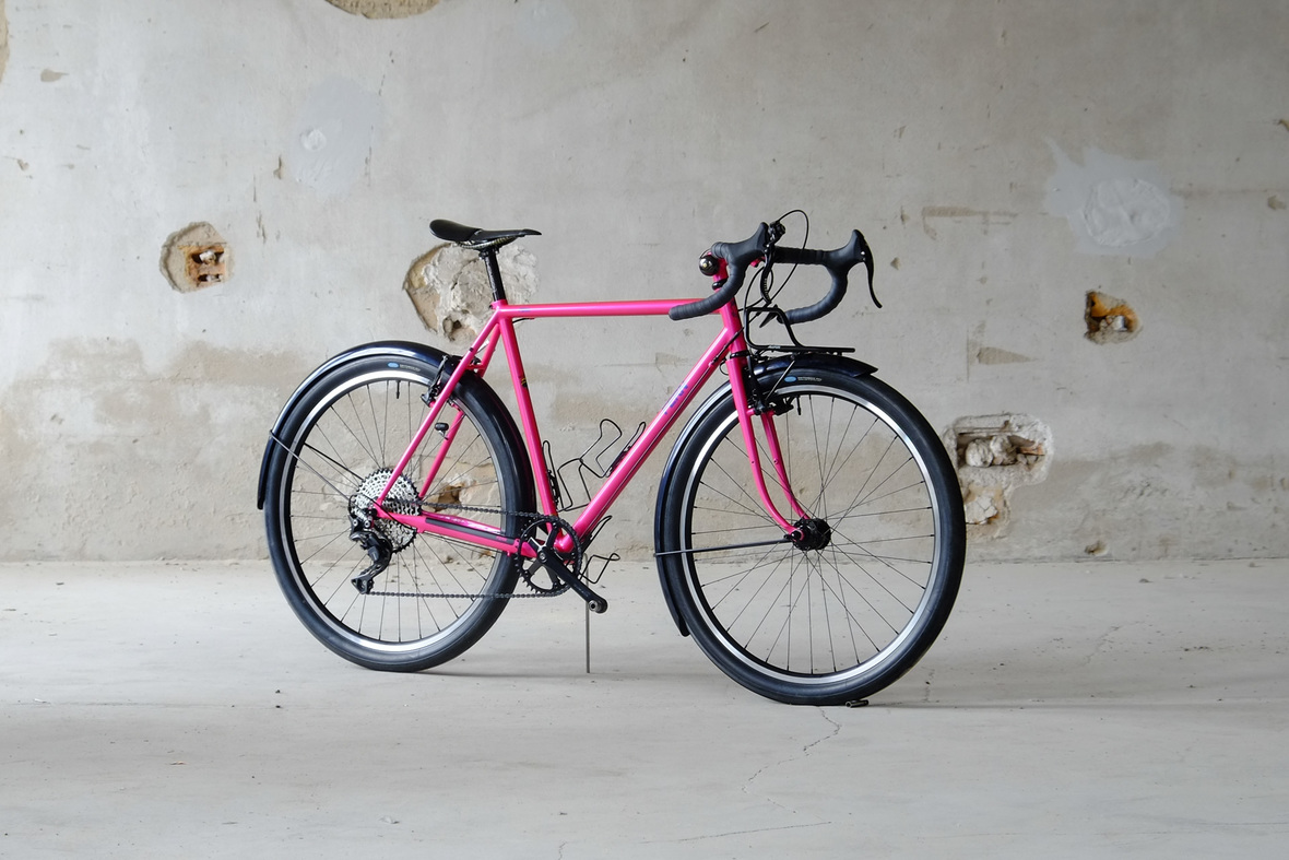 This is a very special bike we made for my buddy Rene who is an avid member of the Berlin brevet riding gang. He came to us with the idea of an light weight multipurpos machine which can be used equally well off and on the road, and as good for long distance riding as well as for your quick weekend spins through Brandenburg´s sandpits. Also he wanted the bike to be fully rinkoable to take it easily on and off trains.