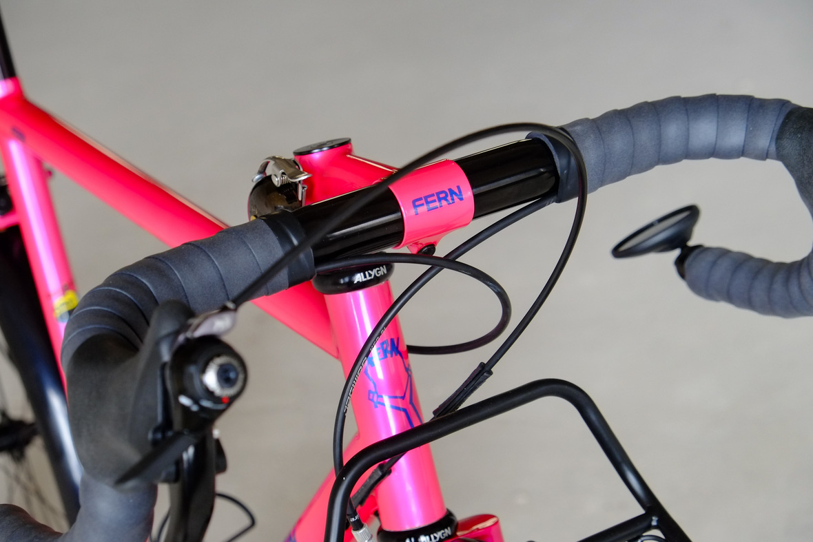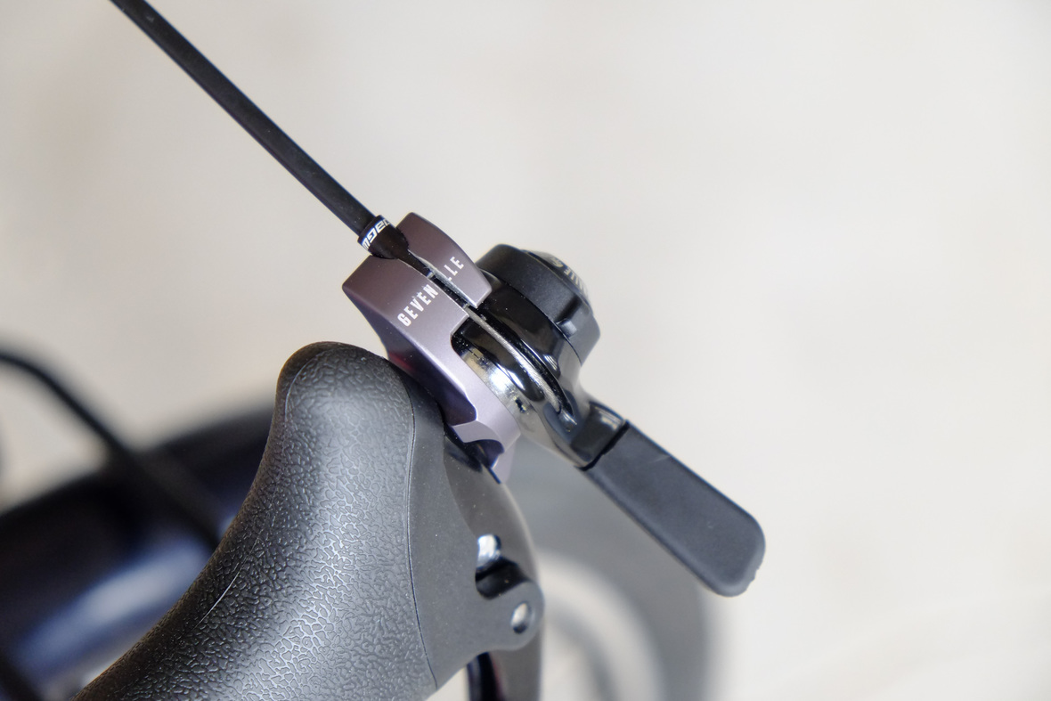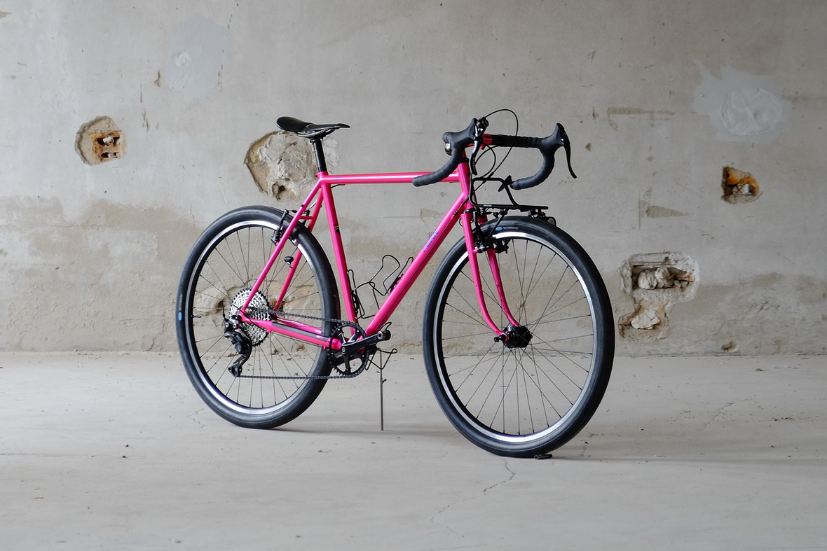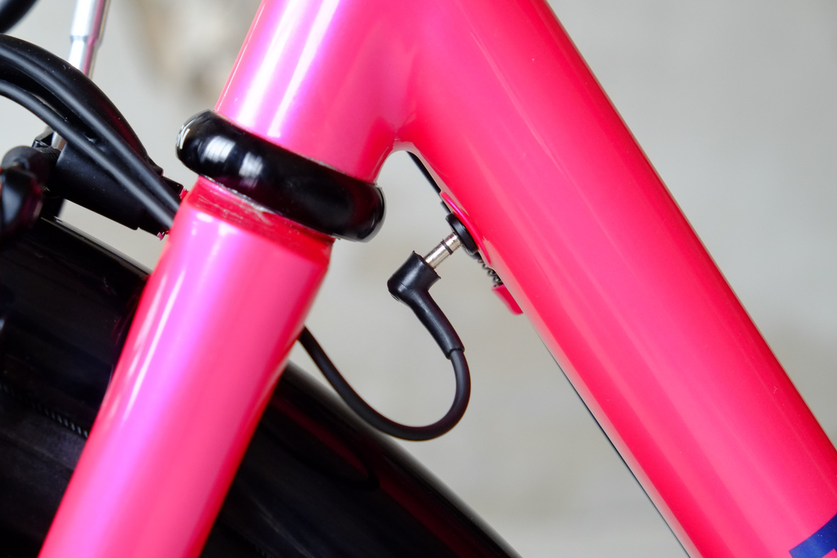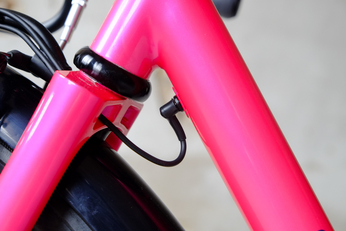 All cables are routed outside and sit in split cablestops so they could be easily removed. We even sloted the Gevenalle shifter mount so the complete shifter can be taken off. To separate the fork from the frame we build in a 3,5mm chinch jack which can easily be plugged of the frame. MKS EZY pedals are mandatory.