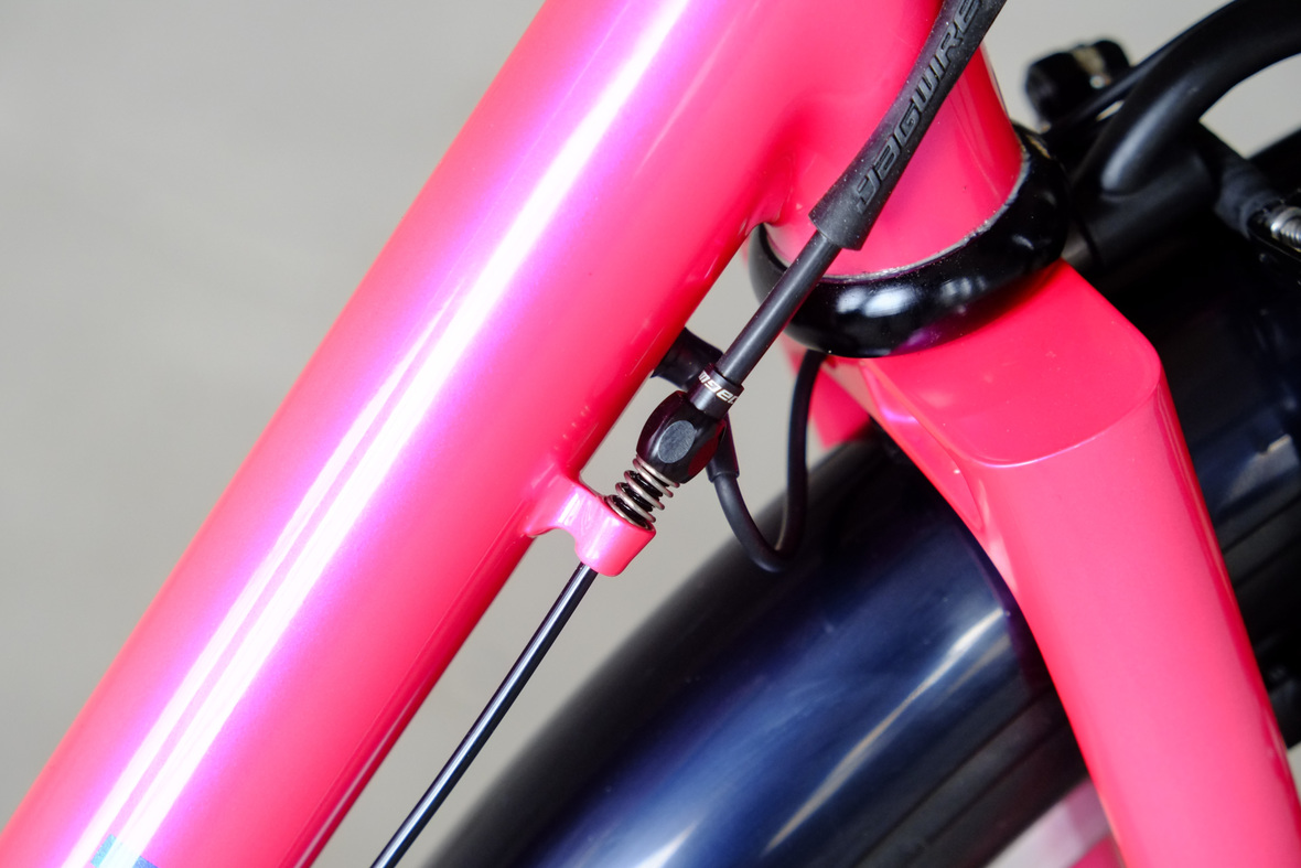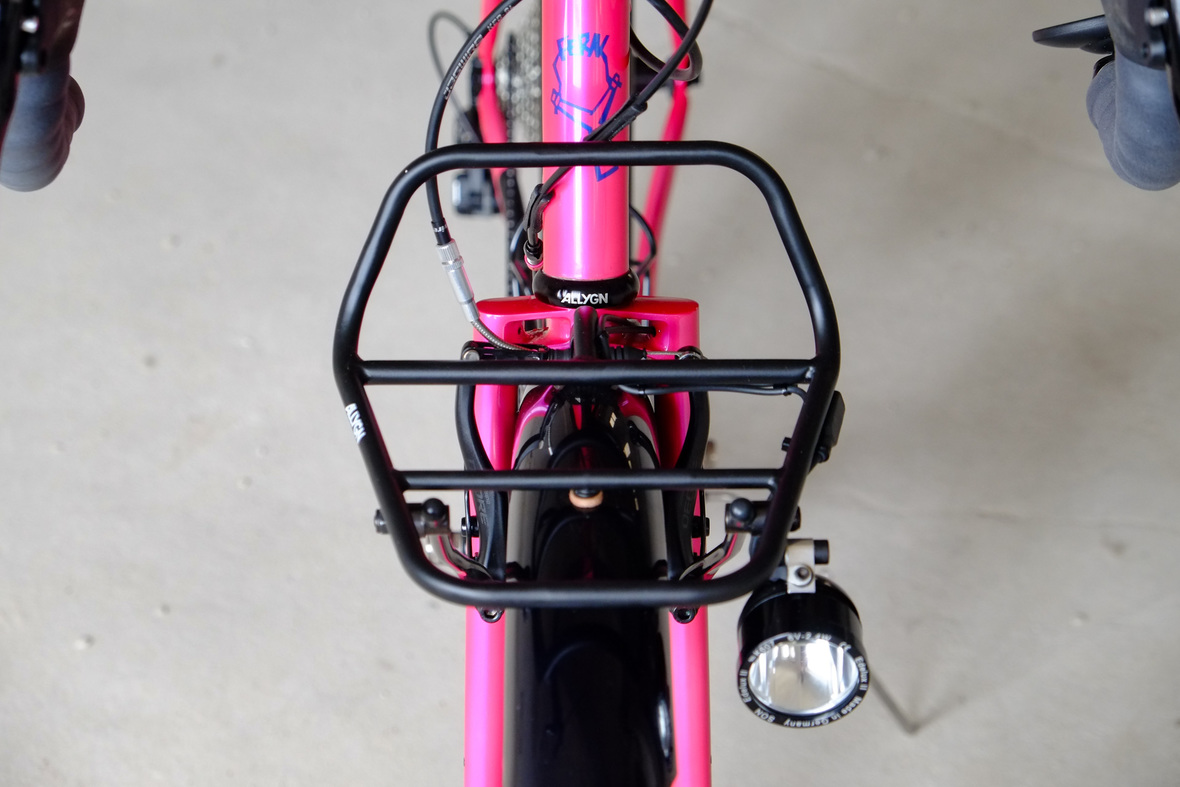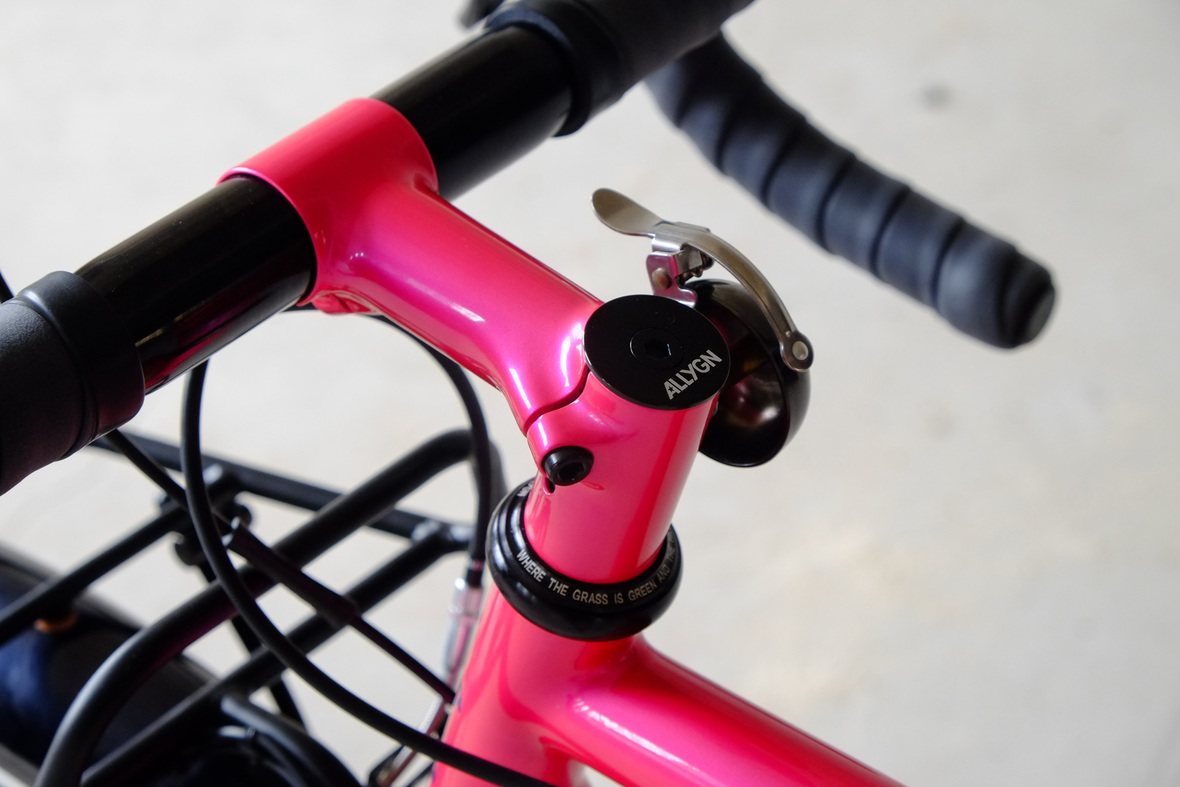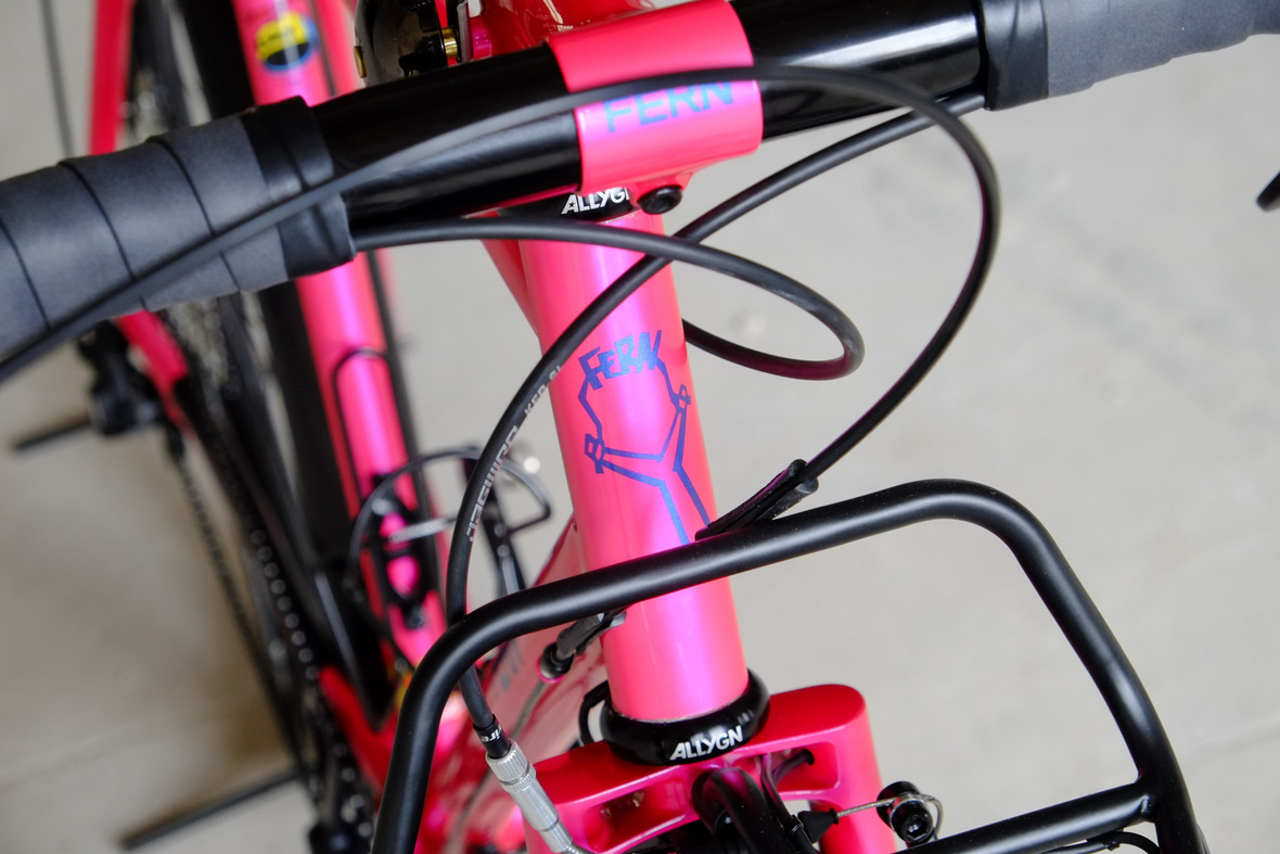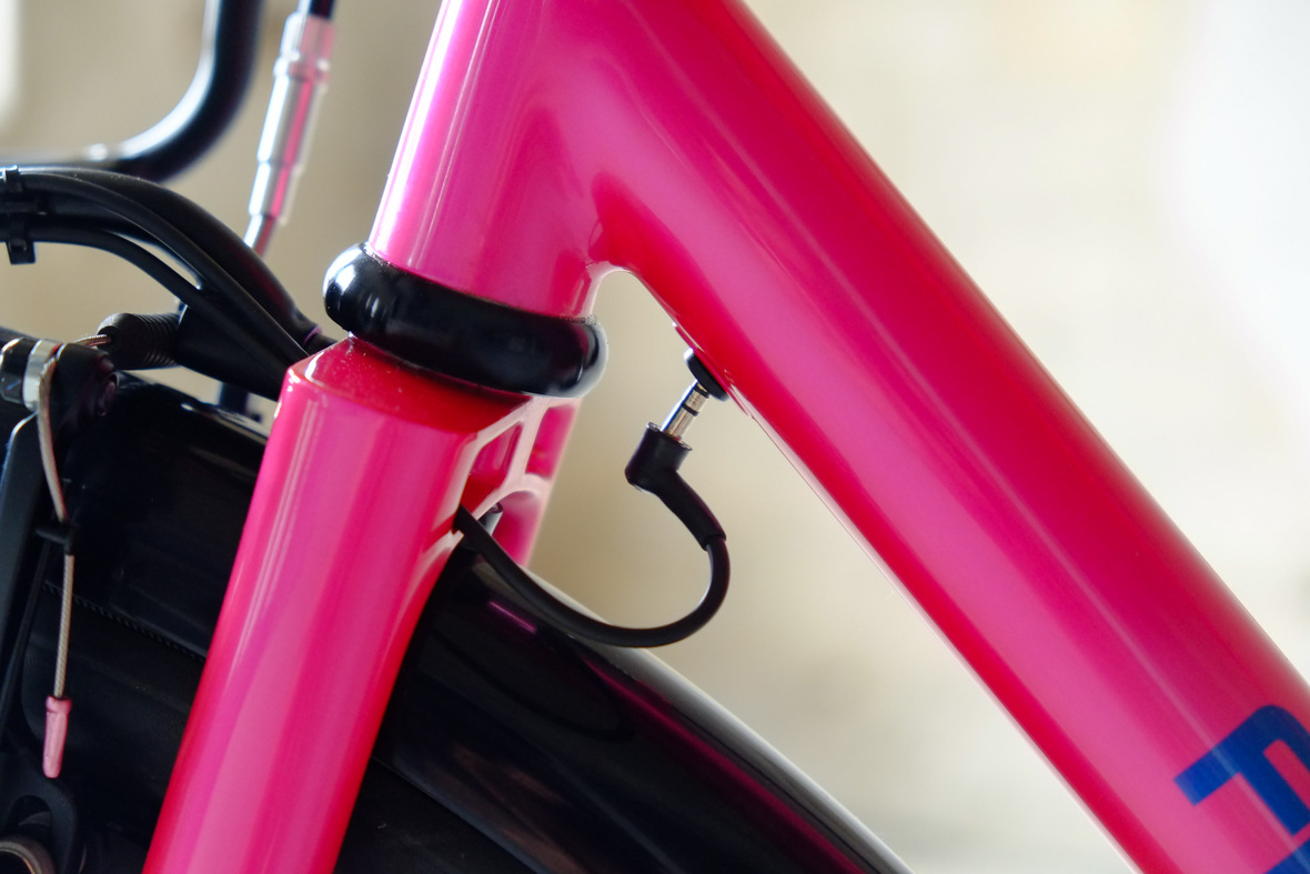 All cables are routed outside and sit in split cablestops so they could be easily removed. We even sloted the Gevenalle shifter mount so the complete shifter can be taken off. To separate the fork from the frame we build in a 3,5mm chinch jack which can easily be plugged of the frame. MKS EZY pedals are mandatory.