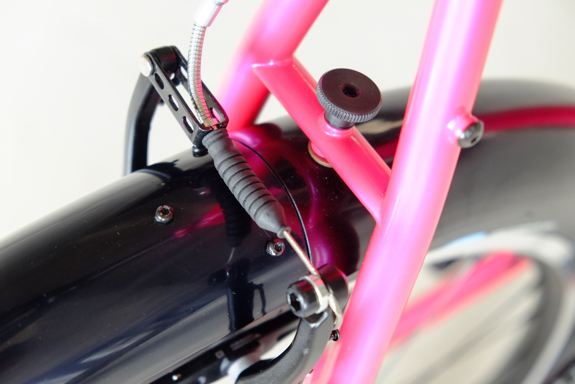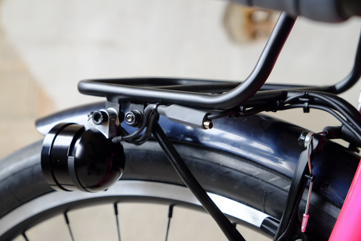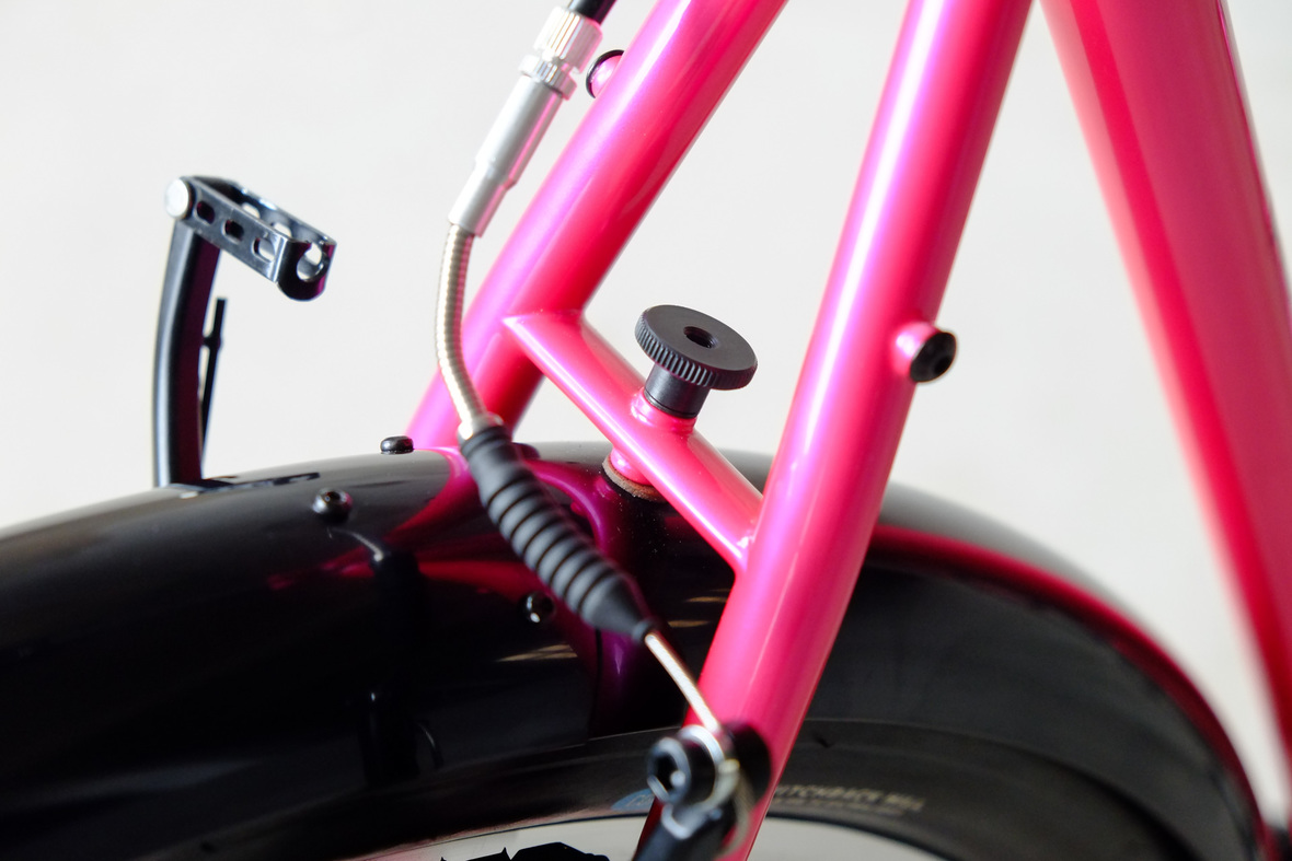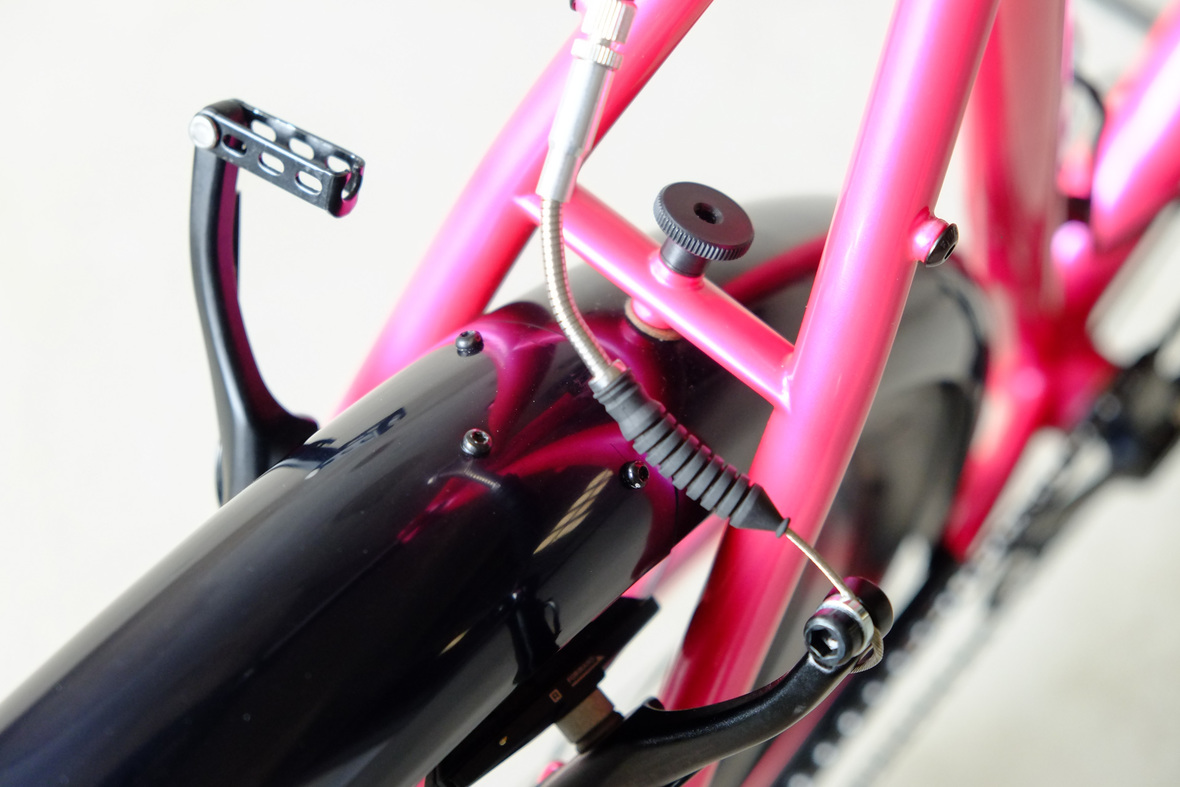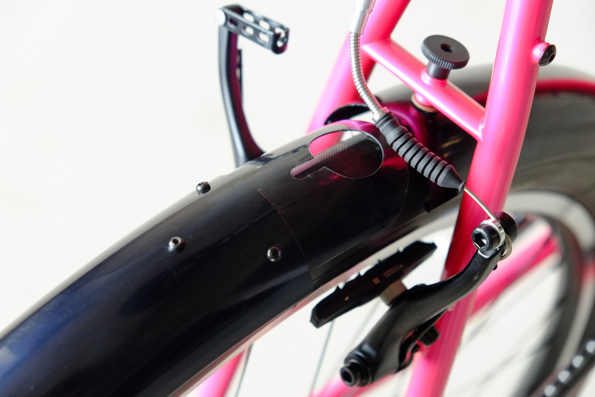 For making the Chico bike into a Rinko bike we modified the rear custom black anodized Honjo Fender so it can be split and taken off the rear.