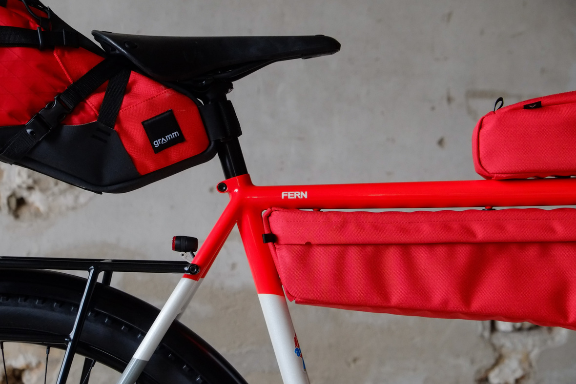Probably the best feature on this bike is the perfectly matching bags made by my love at Gramm Tourpacking and the Velociao paint design on this bike making it really stand out from every other bike out there!
