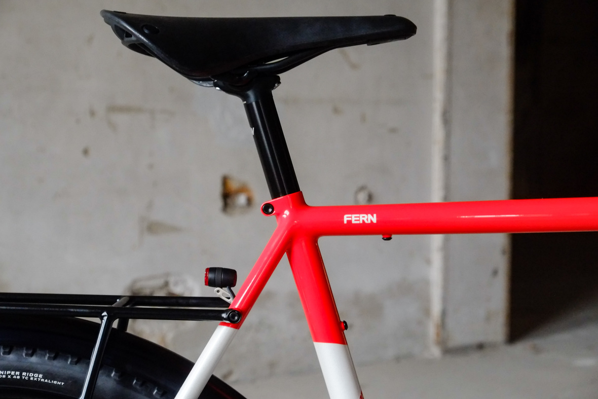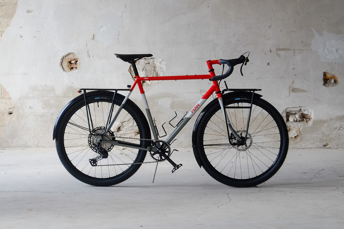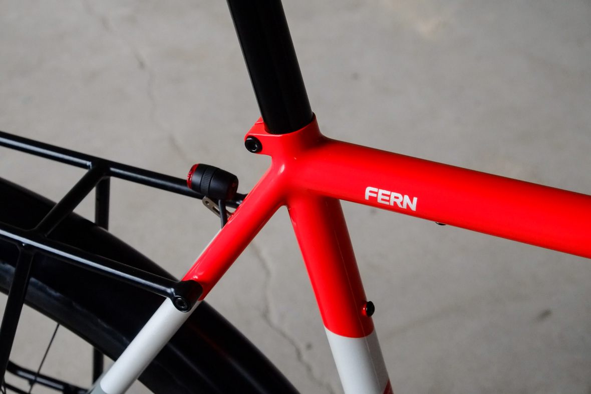 The bike is made from super thinwall Columbus life tubing and features our own unique Fern flat direct mount standard. A full set of racks front and back for extended luggage carrying options when used for touring. Easy to remove rear rack with additional taillight connection when used for faster riding.