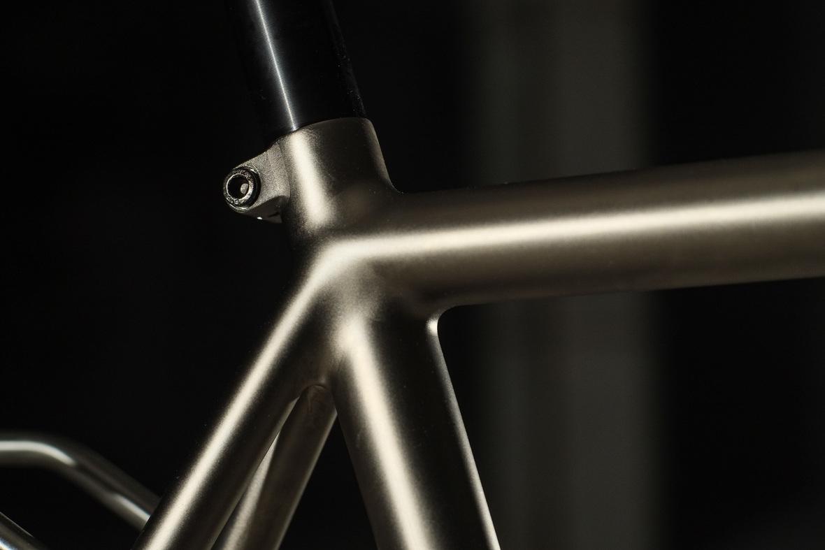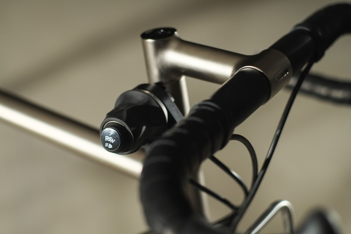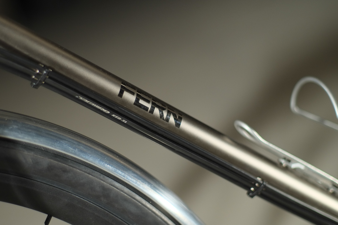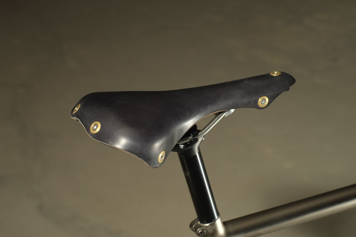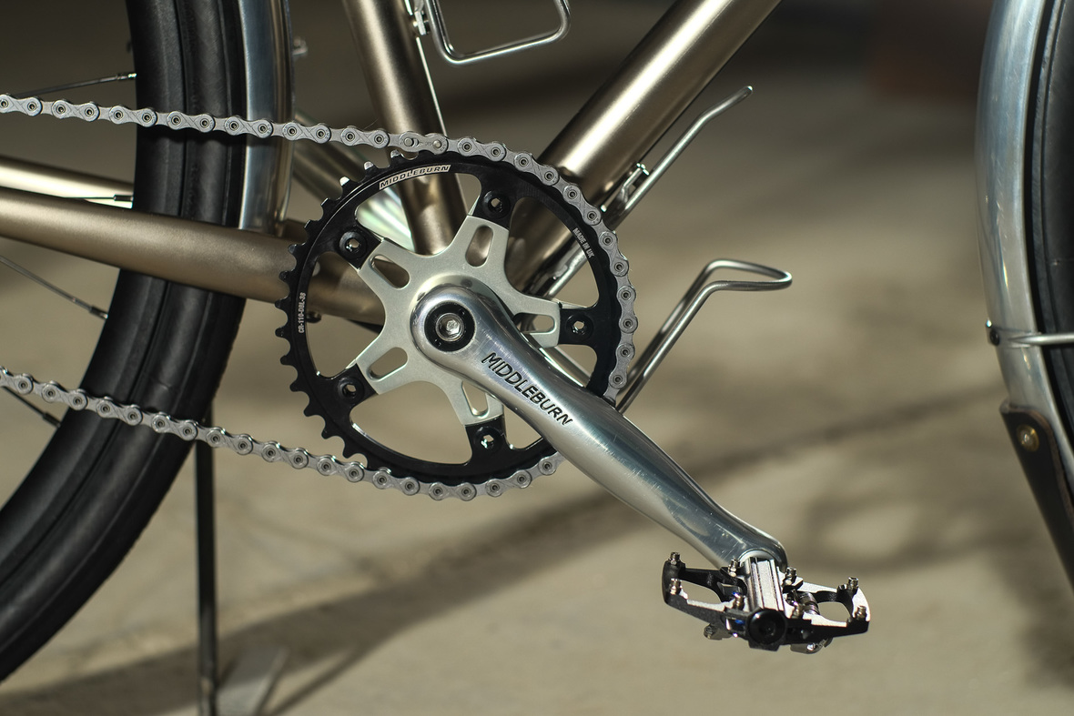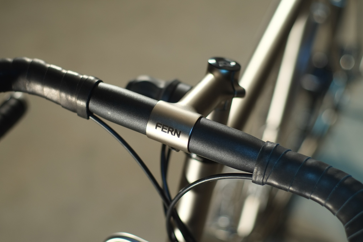 The bike is nickel coated and comes with handmade racks in stainless steel. Custom shifter support for the Rohloff rear hub, custom Fern stainless throughaxle dropouts, Juintech cable operated hydraulic disc brakes, Compass tires, etc, etc,…